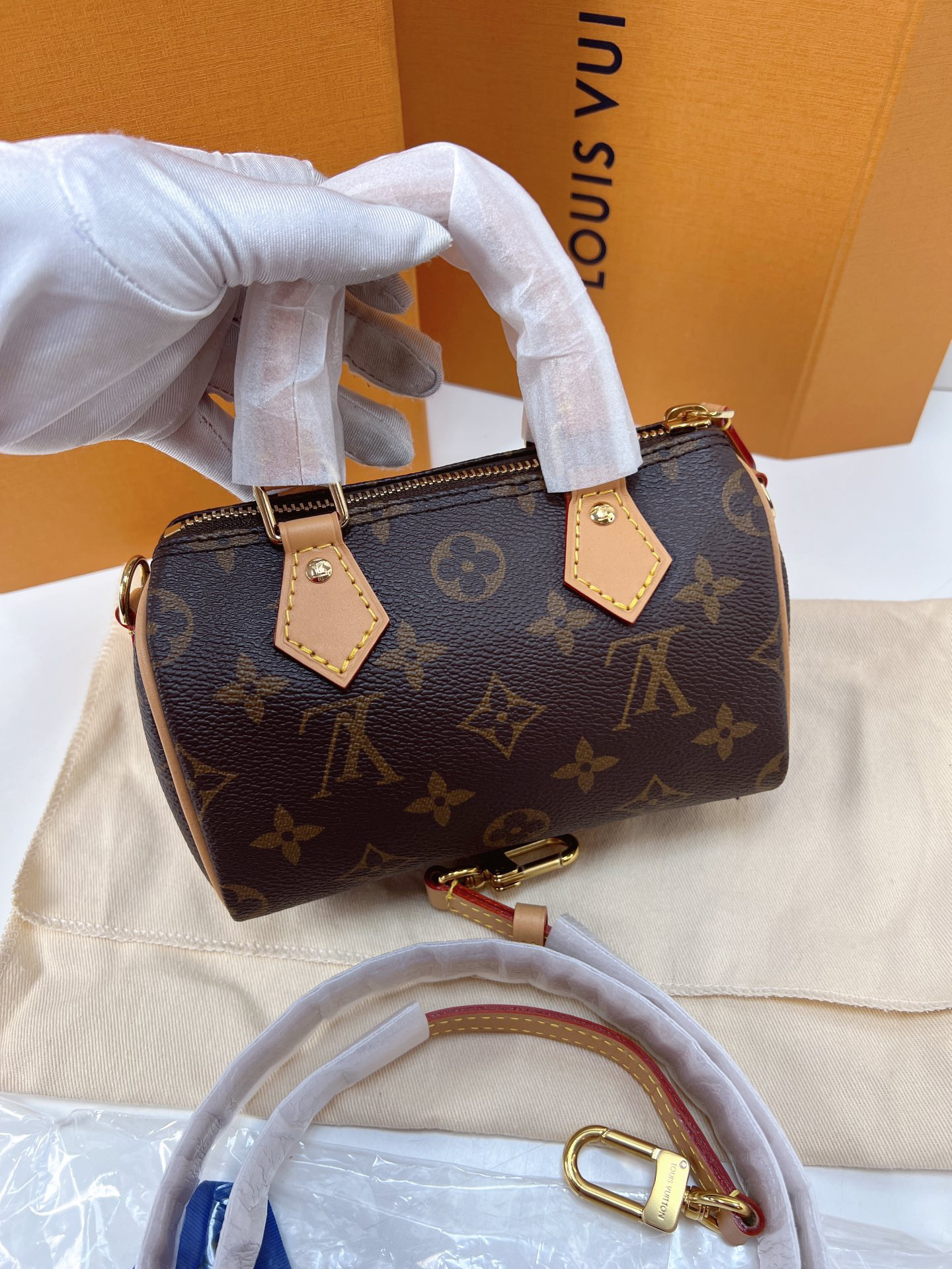 本篇笔记关联了Louis Vuitton Nano Speedy 迷你 老花帆布涂层牛皮饰边可拆卸肩带枕头包手提单肩斜挎包 深棕色等商品,为用户提供真实的使用体验和购买参考。