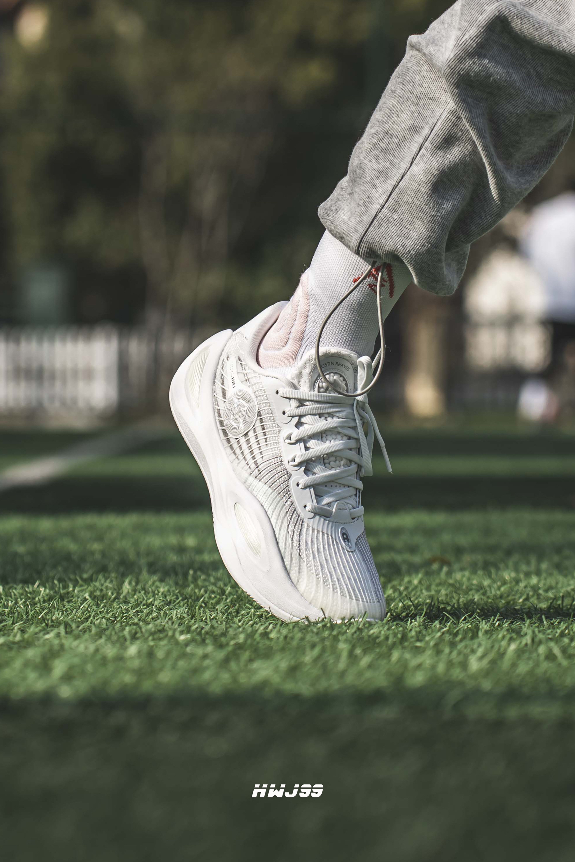 不得不说这款里夫斯一代的设计确实有点“破茧”的味道,纯白的鞋身非常抢眼! 上脚的颜值很在线,鞋子的包裹感也是很强的。上脚过好几款不同配色的里夫斯一代,个人觉得选择大半码或者一码会更适合。很喜欢鞋舌爆米花设计,不仅包裹感舒适,而且鞋舌也是不存在左右偏移的现象的。个人觉得这是一款可实战也可日常穿搭的鞋子。