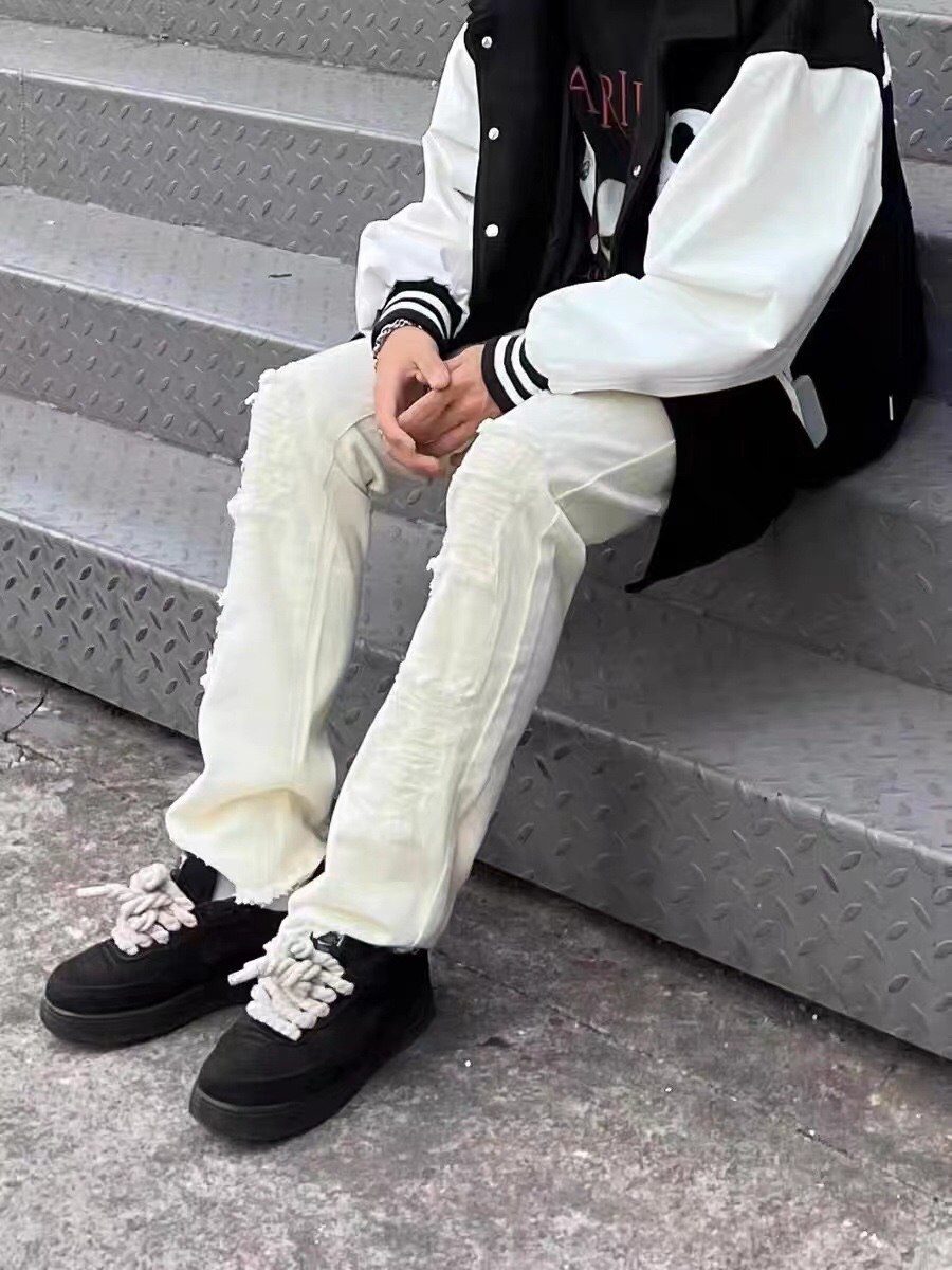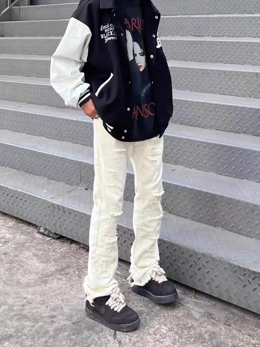 黑白拼接的棒球夹克搭配一条白色破洞牛仔裤,又高街又充满少年感的一套真的轻松get了!想要穿得时髦真的很简单!