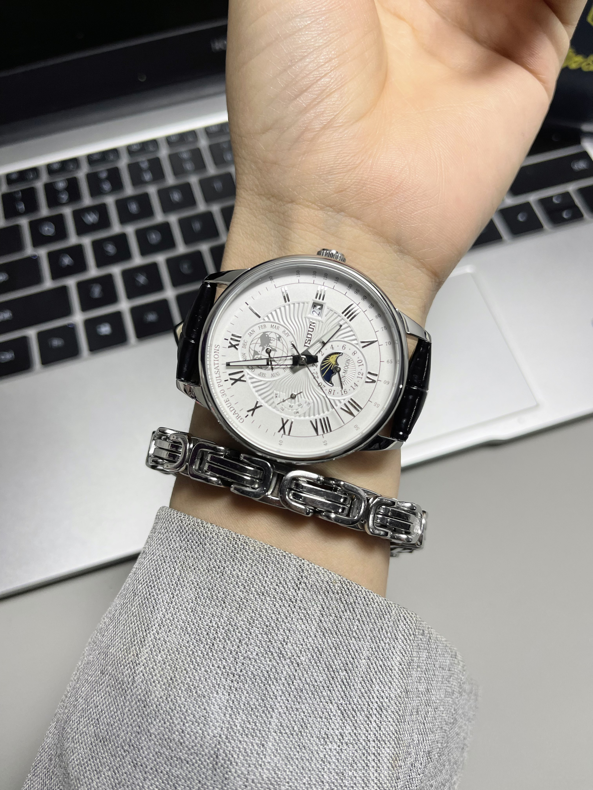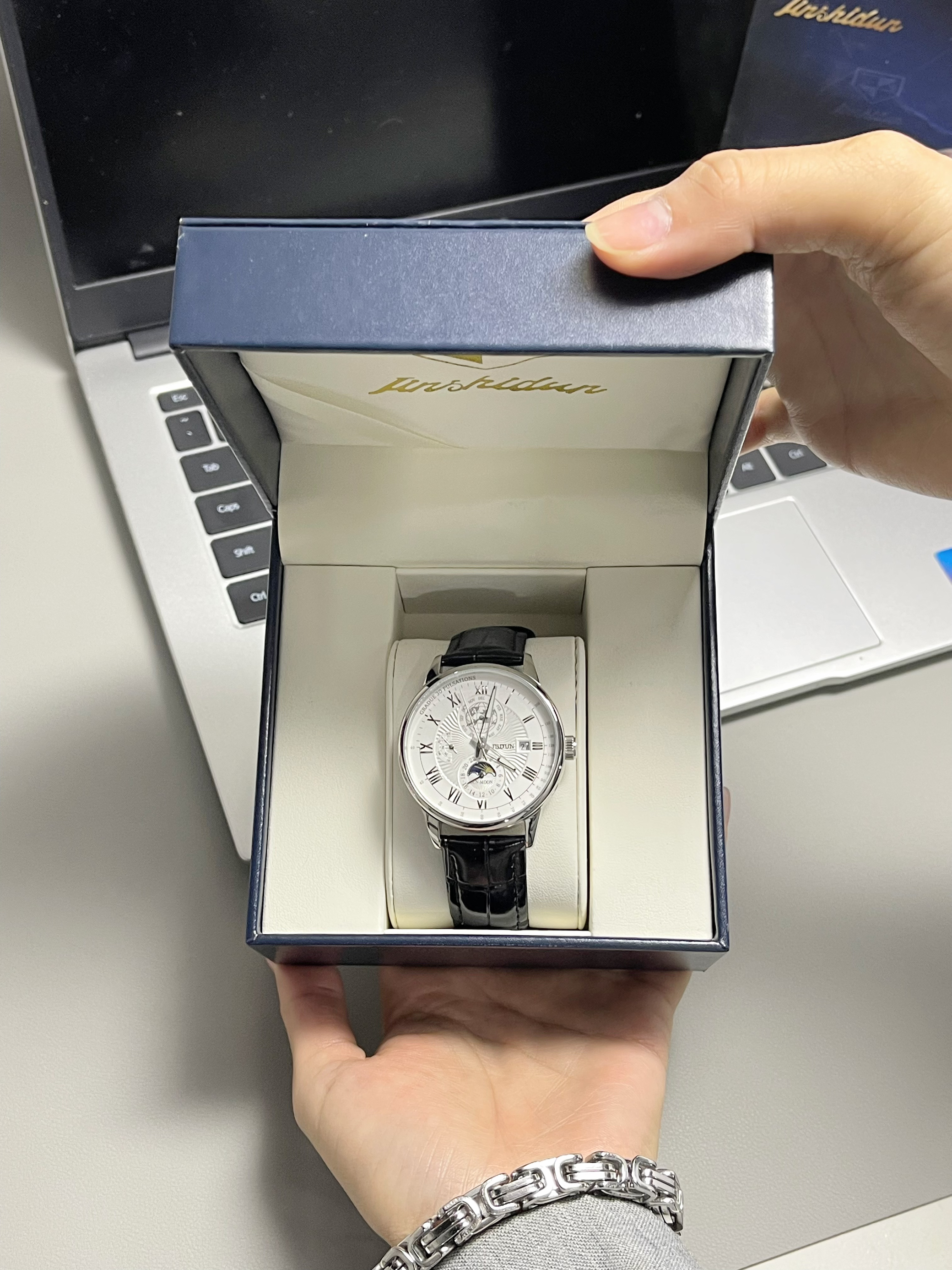 本篇笔记关联了JSDUN/金仕盾 防水真皮表带腕表机械表全自动多功能男表十大 黑带银白男等商品,为用户提供真实的使用体验和购买参考。