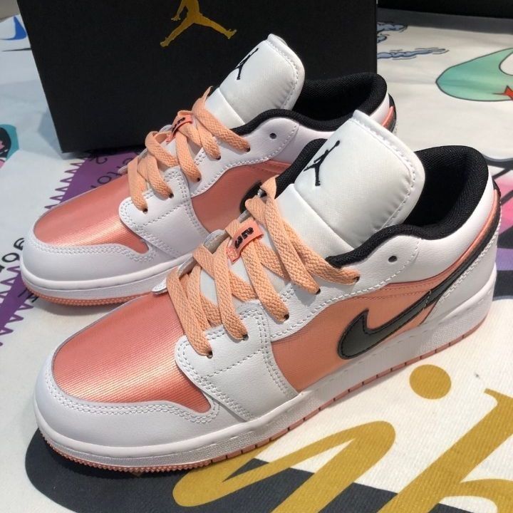蜜桃粉为主要色调的满眼都是春天的感觉🌼 穿上踏青赏花是个明智的选择 颜值在线 适合女生穿的丝绸般的织物鞋面 黑色钩子给人神奇的不一样的感觉✌ AJ低帮板鞋,很好搭配 ,四季可穿,可以配小裙子 ,鲨鱼裤,紧身裤,牛仔裤百搭神器简直不要太好看😘 个人感觉:穿上后很舒服 适合休闲穿运动穿逛街穿