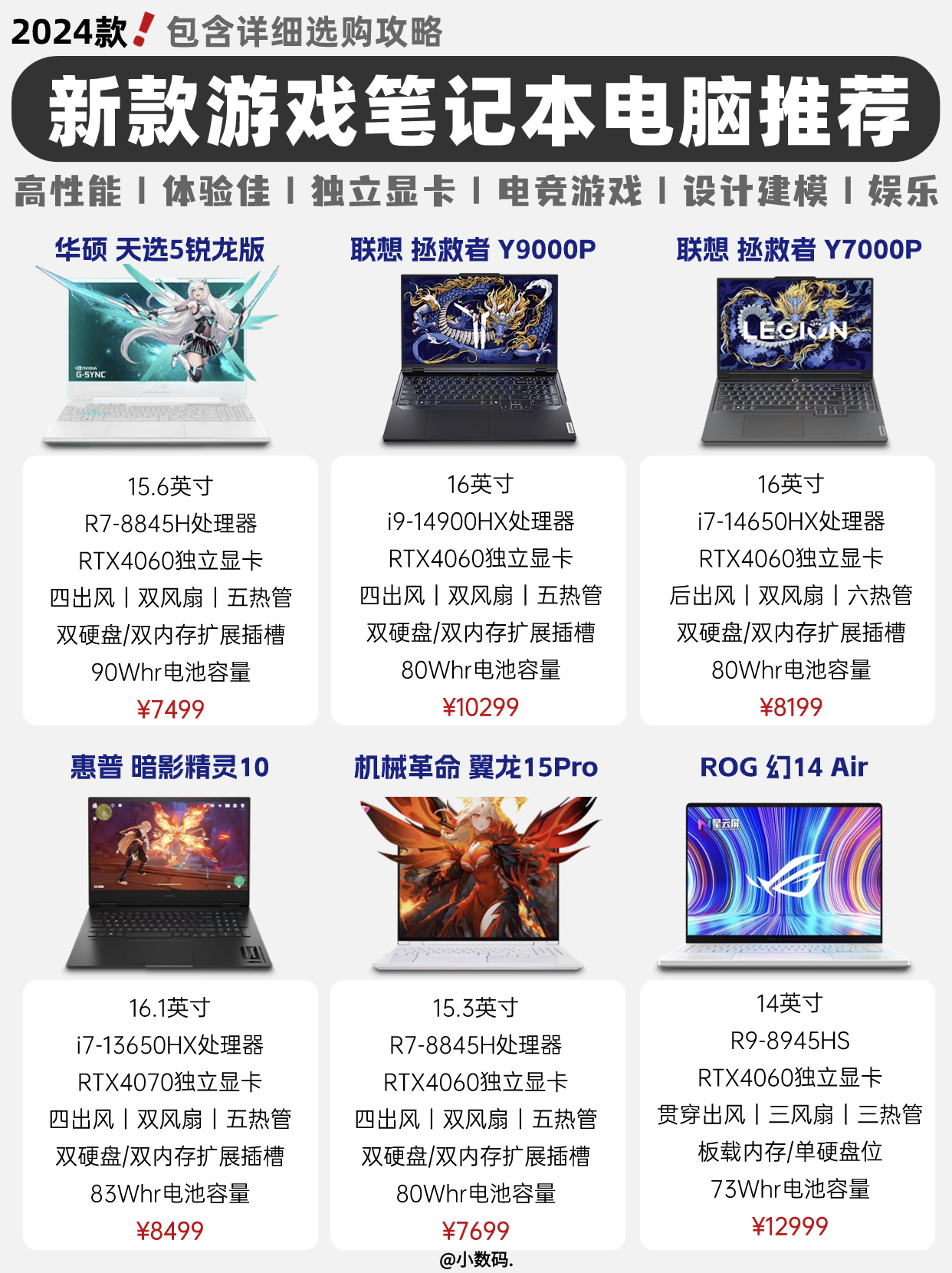 📝本文章由小数码.原创,如有搬运会进行维权!请支持原创❗️ - 最近发现很多小伙伴喜欢白色游戏本,所以这里给大家罗列了12款白色配色的游戏本,快来和我一起看看吧~💻 - ➡️内容导航: 🔘看懂游戏本参数(图二~图三) 🔘游戏本详细参数对比(图四~图七) - ✅本期罗列的型号: 1⃣️联想 拯救者Y9000P 2⃣️联想 拯救者R9000P 3⃣️华硕 天选5 Pro 4⃣️惠普 暗影精灵10 Sl...