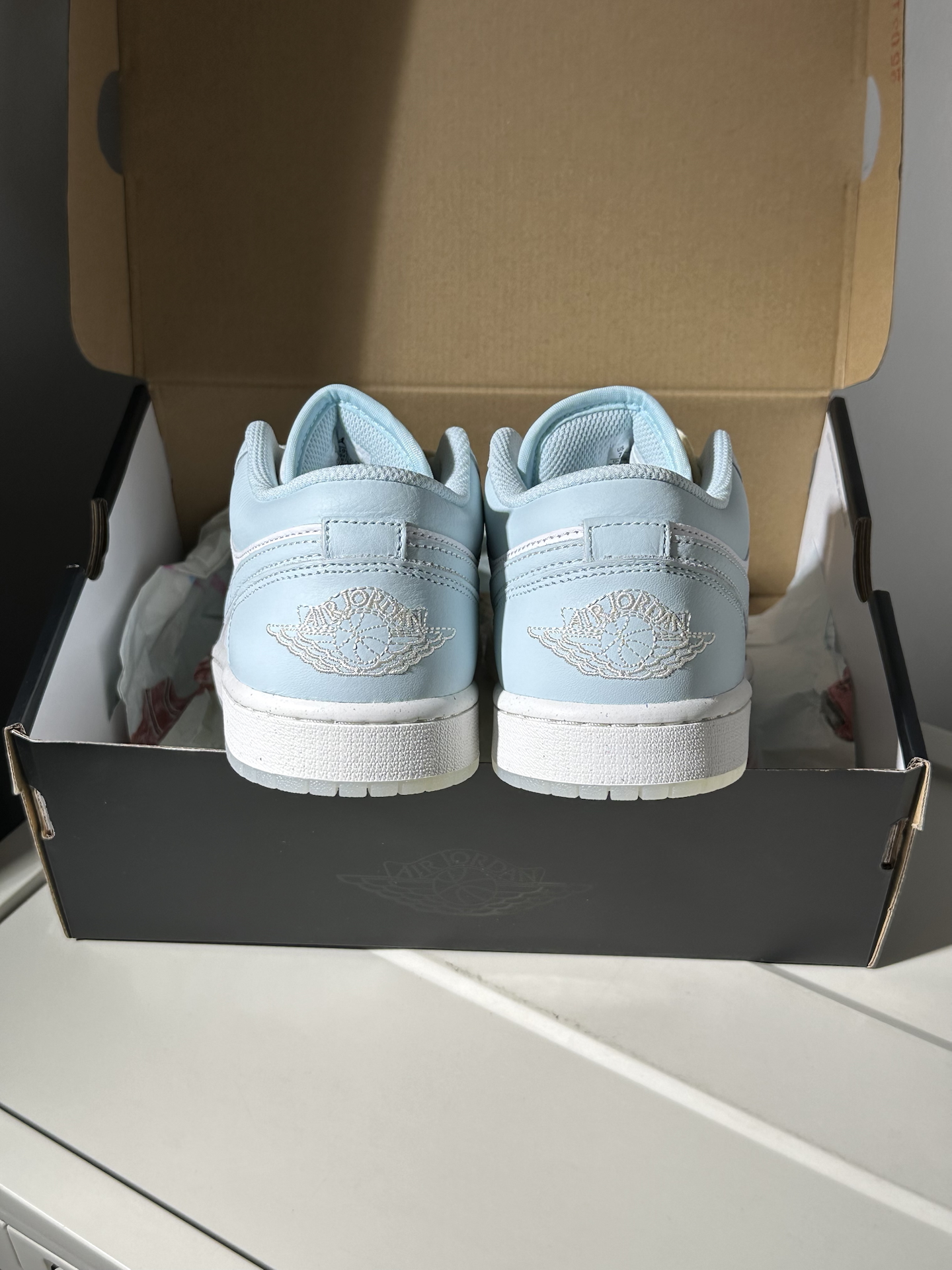 Air Jordan 1 Low AJ1 白灰 材质拼接 ☝️ 海绵鞋舌和内衬,拼接解构风格,感觉挺舒适的。 脚底板有点硬,鞋底防滑性不错,鞋子包裹性也很好。 比较透气,适合四季穿,北方冬天就太冷了。这双鞋子配色饱和度比较低,非常好搭配衣服,侧身一点点浅橘色点缀,非常不错
