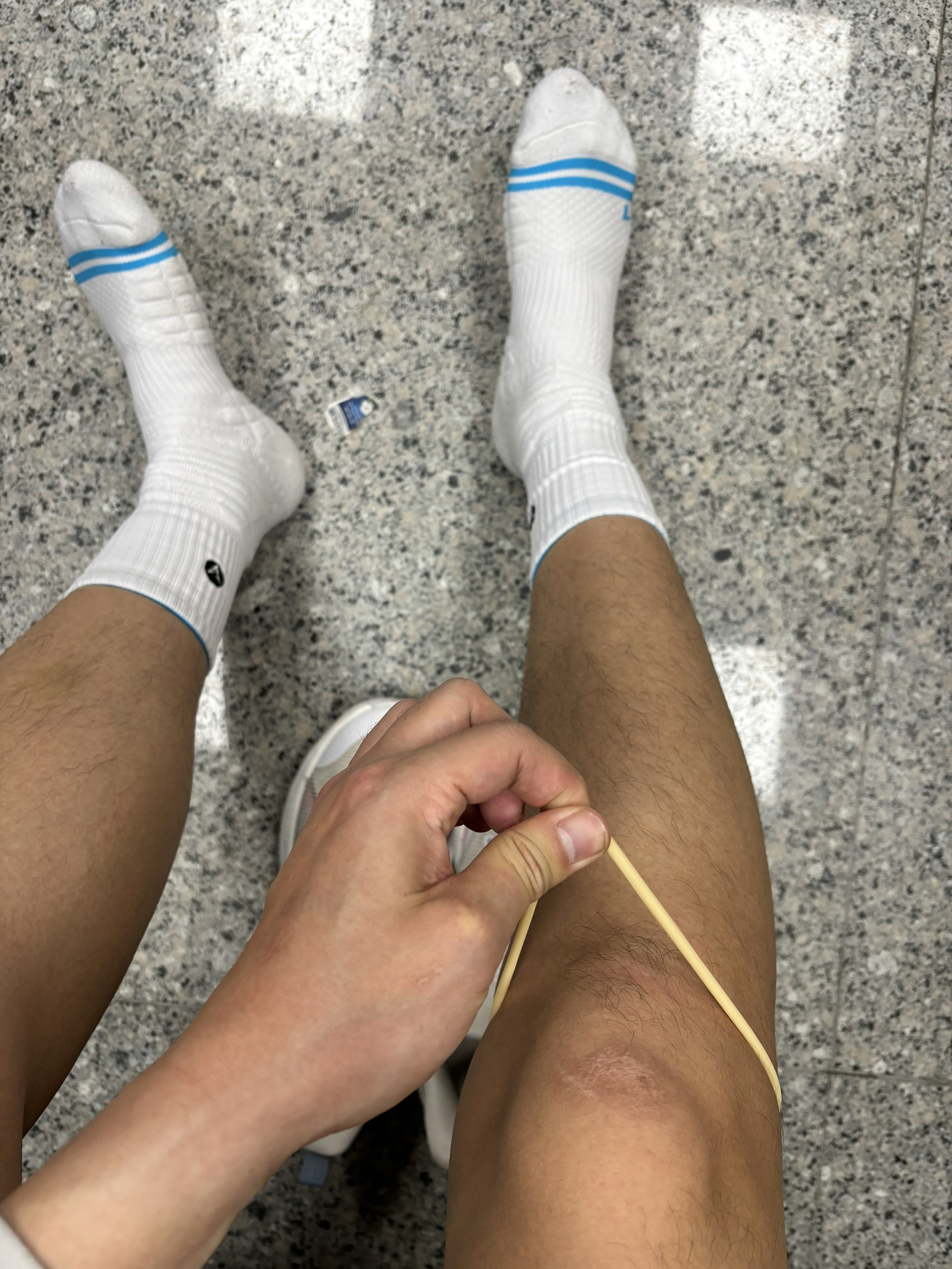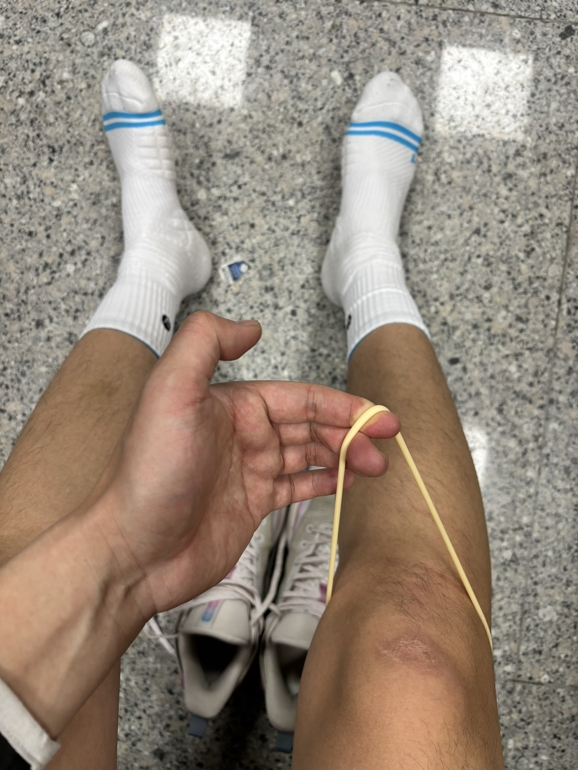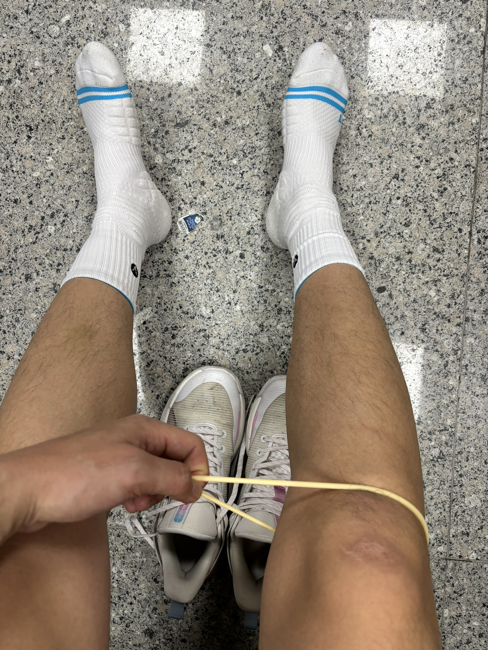 今天比赛还是得带上它 髌骨环,也可以选髌骨带这个更方便一点 很有弹性方便携带哦 尺码是均码 腿粗都可以 主要起到固定膝盖髌骨的作用