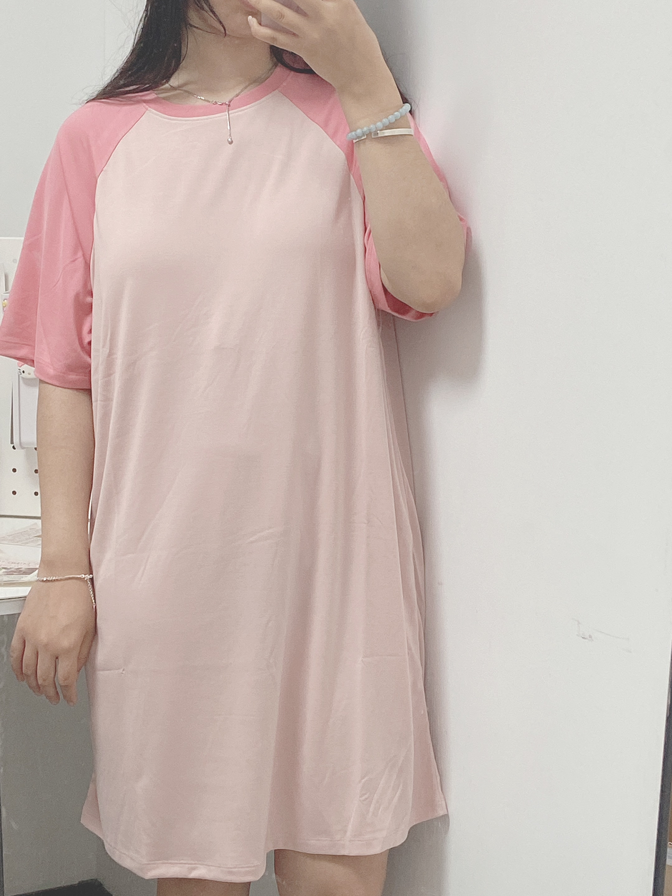 这睡衣好粉嫩嘿嘿!适合女孩子呢,自带胸垫的穿起来尊嘟好方便,衬肤色的,显得好可爱啊!穿起来也是好舒服的!