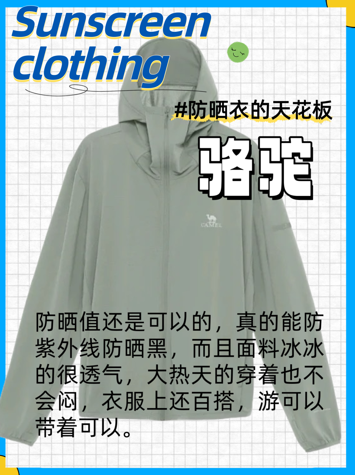 本篇笔记关联了JEEP/吉普 冰丝透气连帽可脱卸帽檐轻薄防晒服皮肤衣 男女同款 P742MWJ025 男女款/星辰灰、【杨幂同款】蕉下 冰丝凉感遮阳透气防紫外线修身连帽披肩长袖防晒衣 女装 6923278502516 BU2159 4879051966449 云碳黑/女款、Camel/骆驼 影遁UPF50+网眼透气冰感修身冷白皮凉感原纱冰丝薄款速干防紫外线连帽防晒衣 A13BA6B068 豆绿/男款等商品,为用户提供真实的使用体验和购买参考。