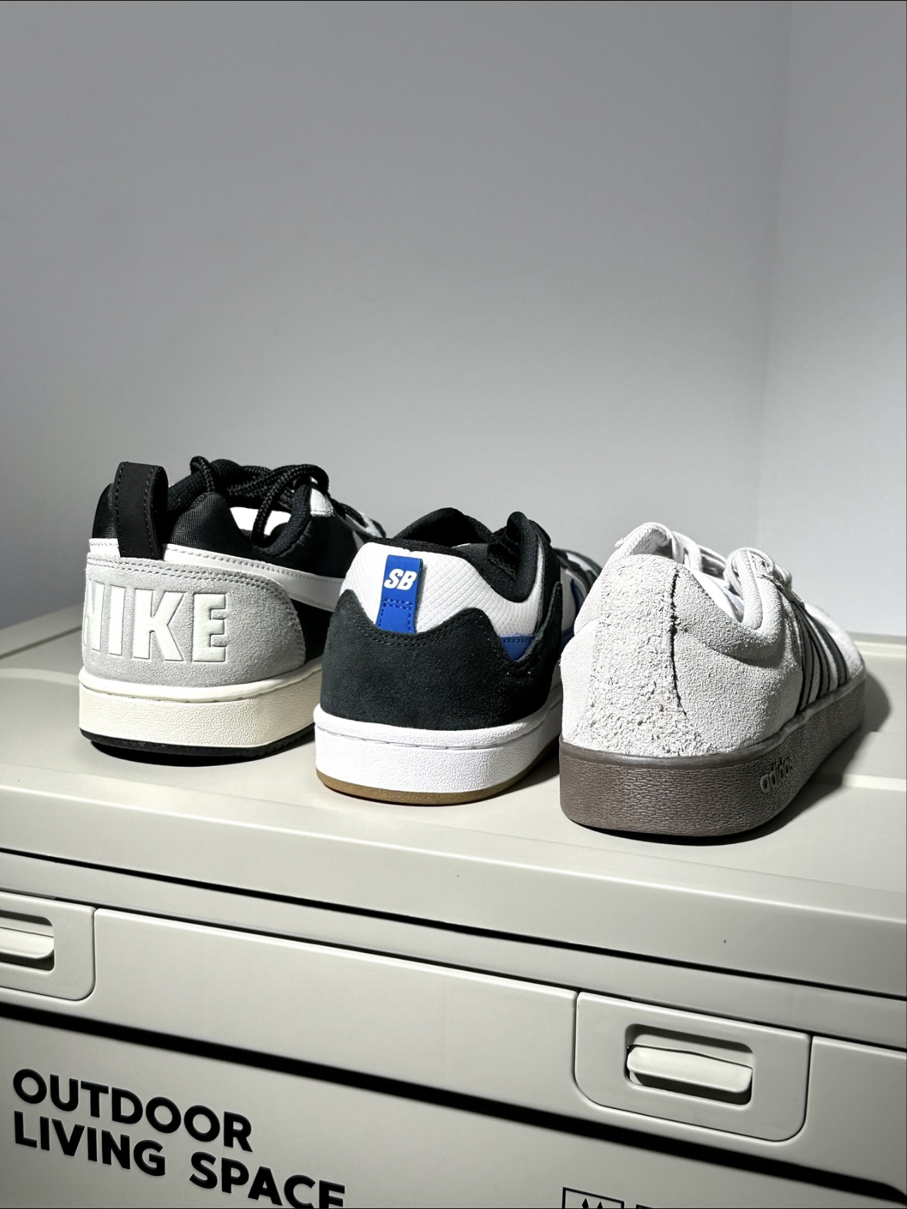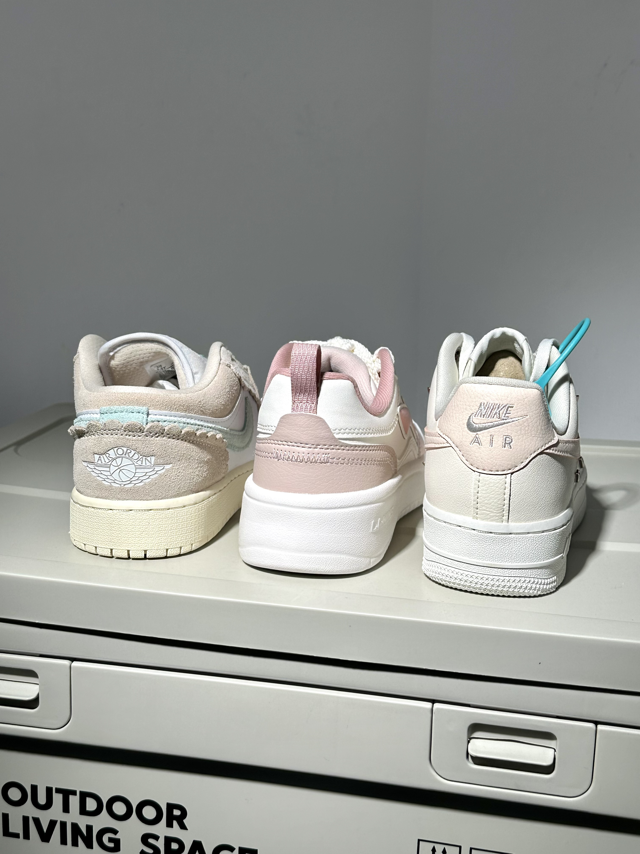 第一双是Dunk 板鞋鞋面采用紫白配色,穿着起来颜值是比较高的,搭配牛仔裤运动裤都能够驾驭 第二双是AJ1低帮板鞋鞋面采用牛仔蓝配色,脚感有点偏硬,鞋面采用皮革材质透气性一般不过上脚效果是比较好看的 第三双经典的AF1空军,喜欢穿空军的朋友真的可以试试这双浅灰配色,颜值方面在线搭配休闲裤运动裤都没有问题 第四双是耐克的V2K,好多明星达人都上脚过,穿着起来脚感软硬适中,鞋面是网格织物材质透气性在线...