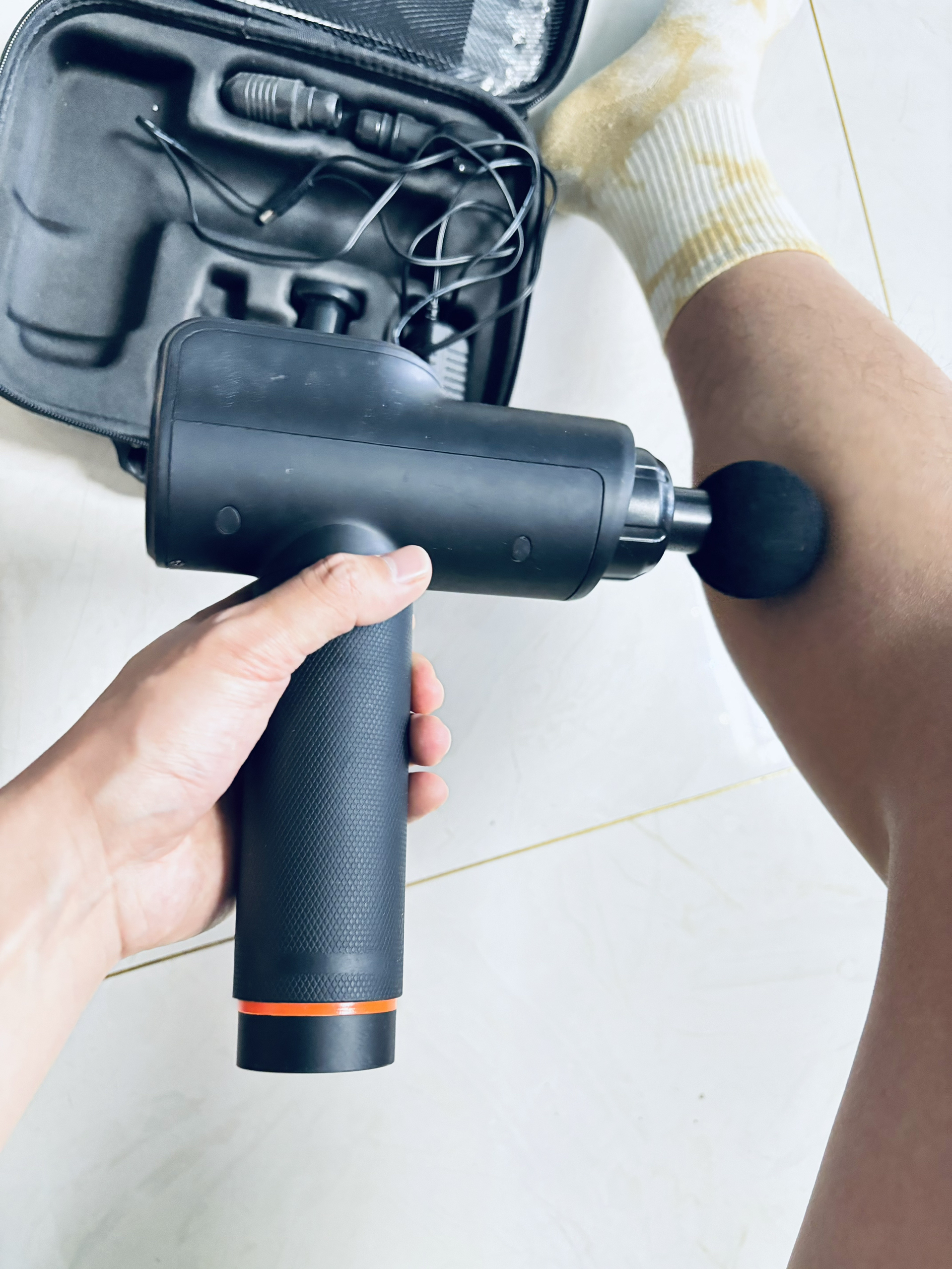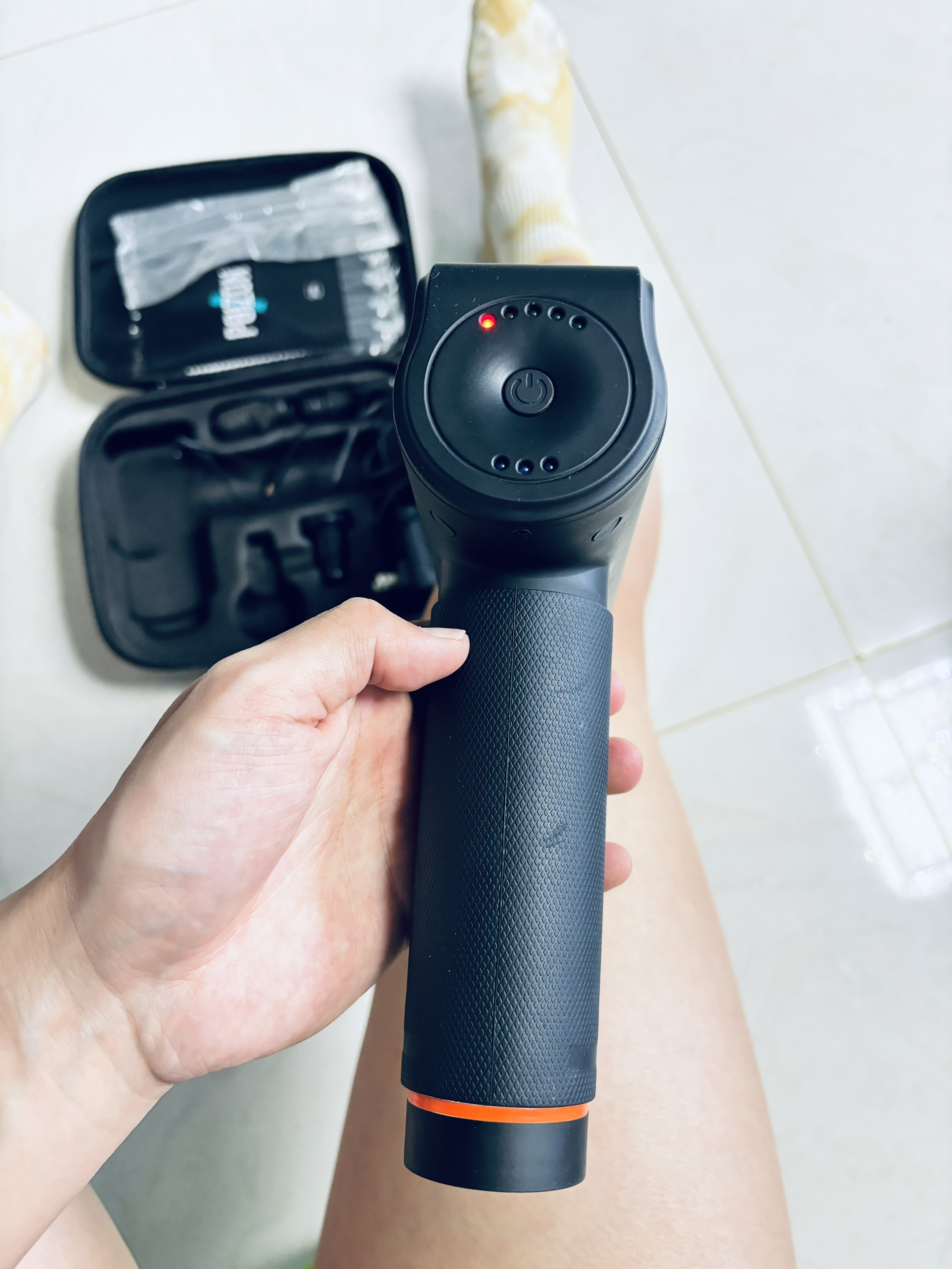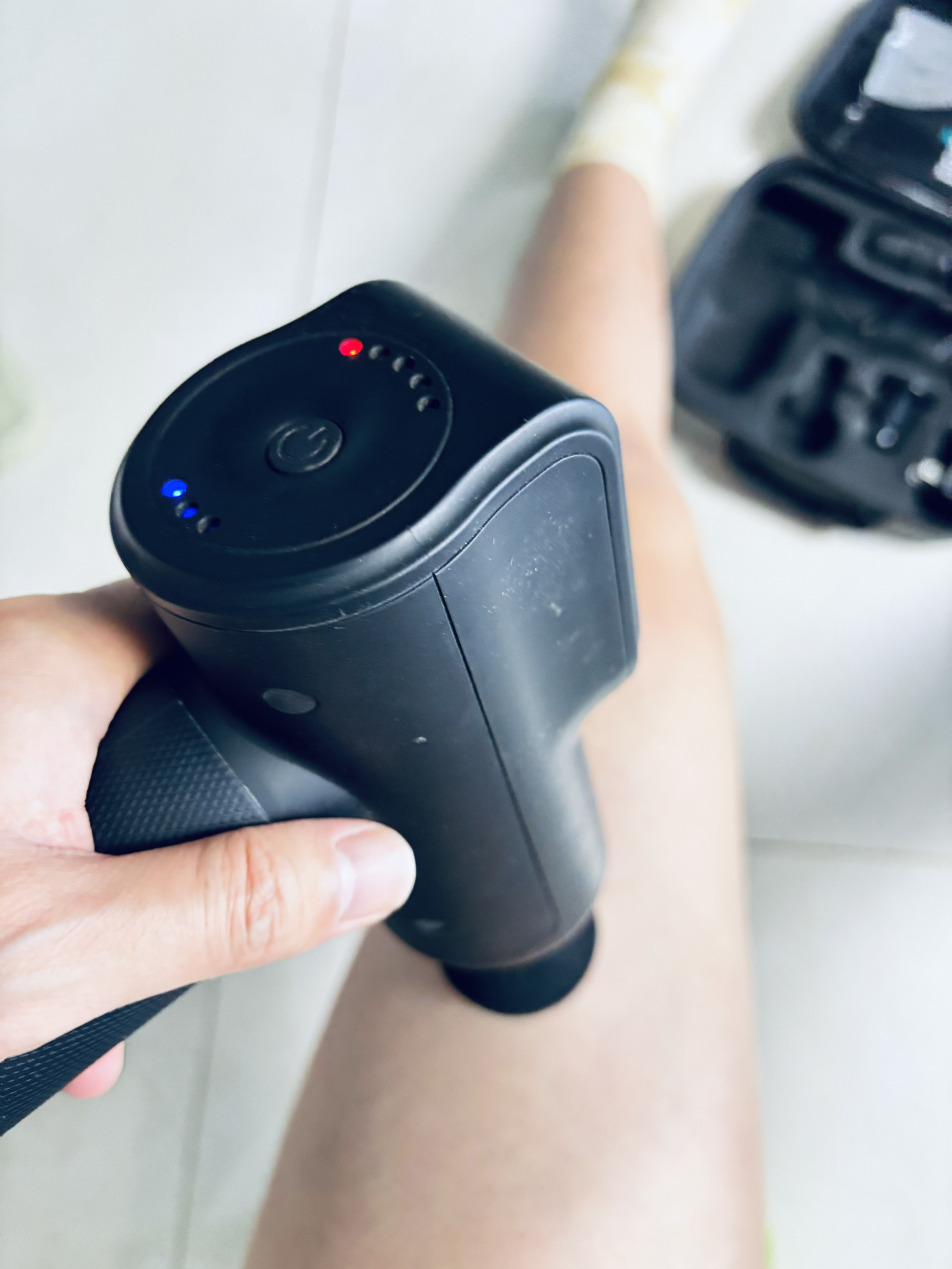 五个转换头很好用 小的适合小肌肉关节都很不错 大头适合大肌肉大腿 五档可以调节,我足足够用了 平时就一档到两档就可以了