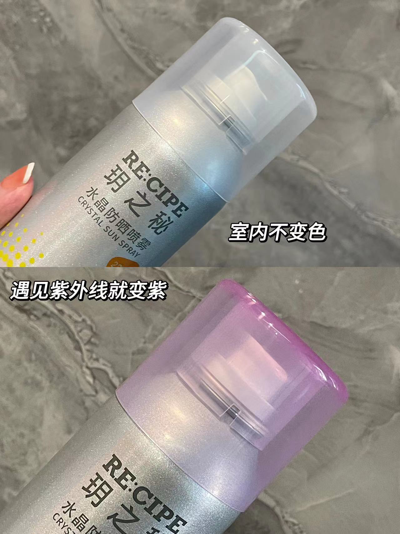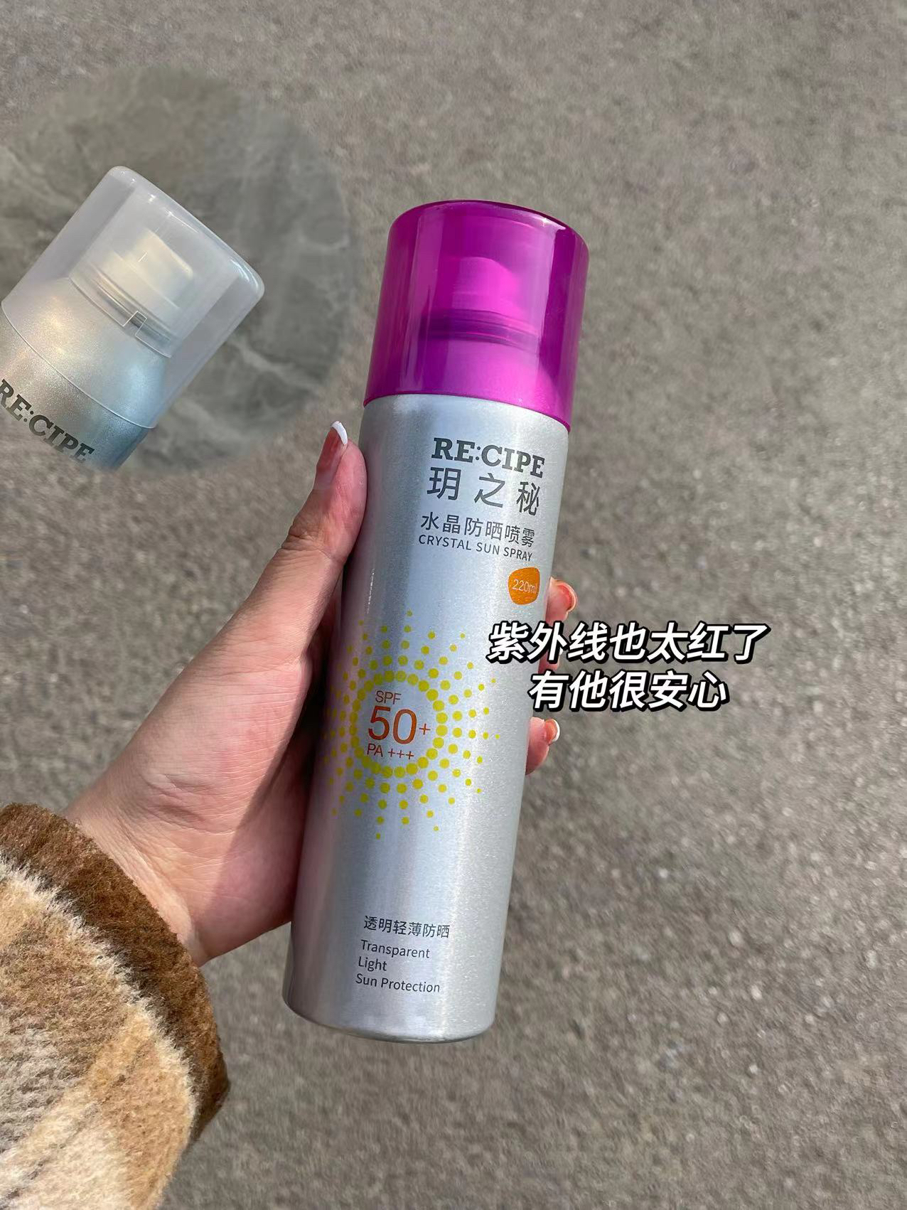 这种防晒喷雾也太省时间了,出门着急的时候随便喷几下就可以了 这款防晒喷雾质地很清爽,0.33mm的超细喷头,喷在身上冰冰凉凉的很舒服,而且上身不黏腻,夏天用也超级舒服 这个盖子还是遇到紫外线就会变颜色的,紫外线越重,颜色就越重,有它真的很安心~