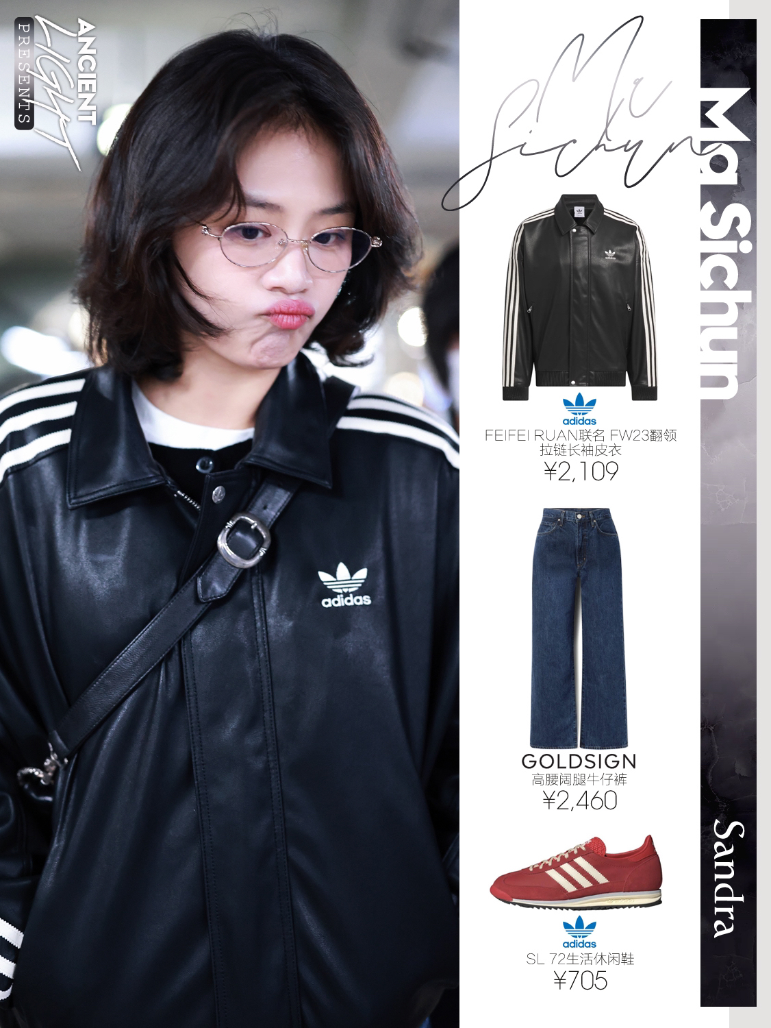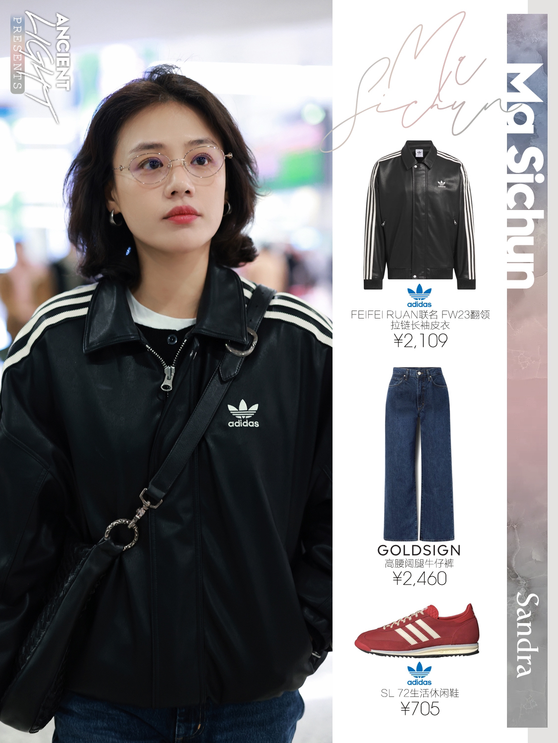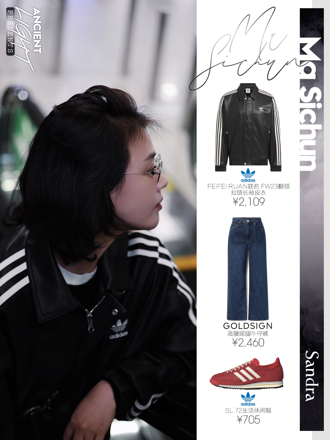 捕捉到一个笑容超治愈的春日小马,总是给人一种元气满满的状态,私服都显得很真实自在,简简单单开心就好。 上装|adidas originals x FEIFEI RUAN联名 FW23翻领拉链长袖皮衣 货号IX4244 牛仔裤|GOLDSIGN高腰阔腿牛仔裤 货号JVM1669110031359 鞋履|adidas originals SL 72生活休闲鞋 货号IE3475