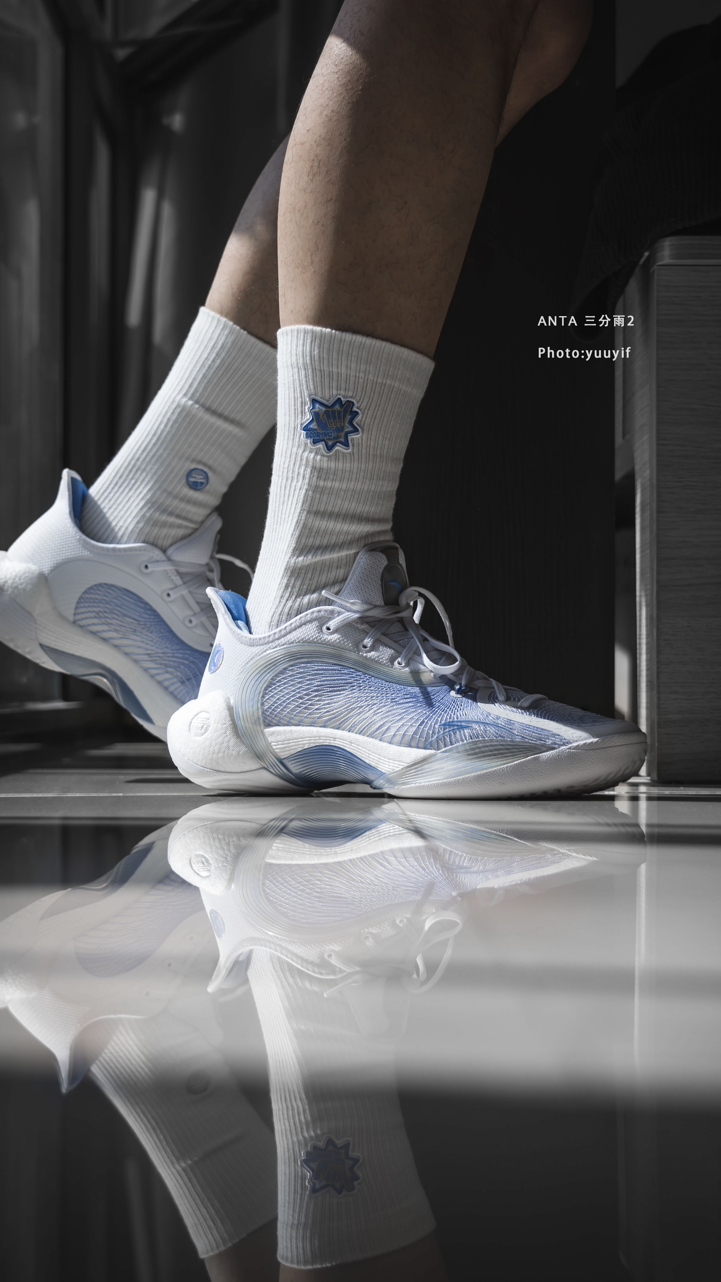 刚刚收到的王思雨同款装备三分雨2代,赶紧安排一组上脚给大家看下,颜值真的很高,这个墨水蓝的鞋面纹理真的很好看,配色非常高级。 2代的外观延续了1代的环绕式TPU设计,不过后跟部分做了个前伸,刚性保护性拉满。后跟做的偏球形,上包非常多,可以看到全是氮科技发泡材质,而且是覆盖全掌的,上脚的脚感非常澎湃。弦科技鞋面透气良好,适合夏日穿。