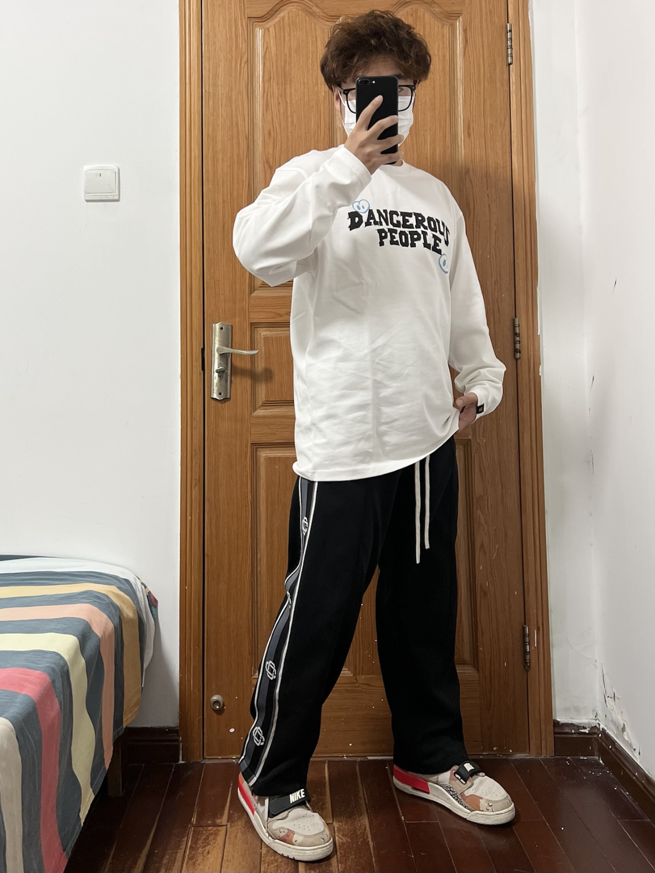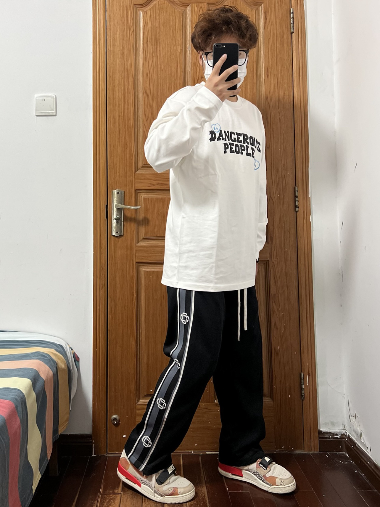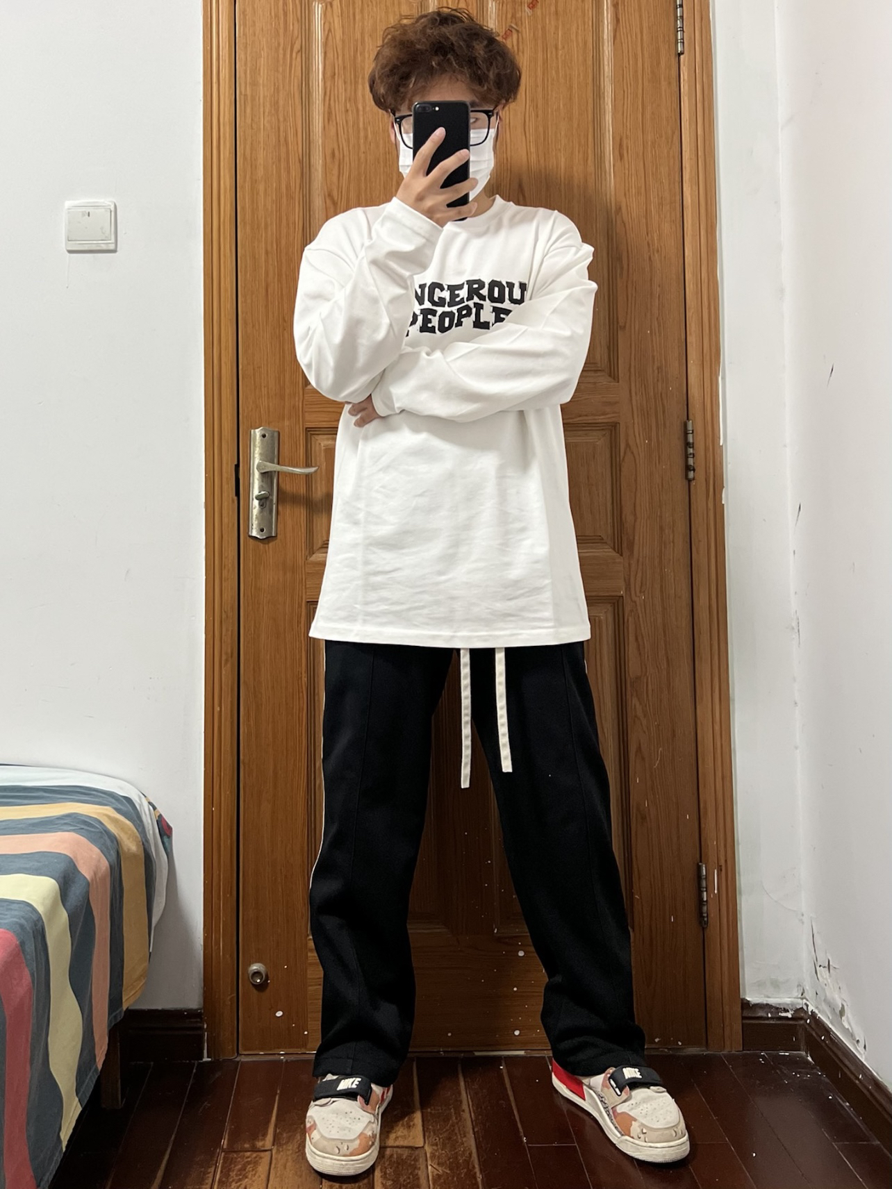 今日份穿搭分享🎉 DANGEROUSPEOPLE字母爱心印花长袖T恤 长袖T恤有没有❓ 越简单的长袖T恤才最好看 字母logo➕爱心💗看起来就很百搭 宽松宽松显瘦显瘦才是我想要的啊 搭配一条黑色长裤再上脚AJ312 整体穿搭效果就是这么OK百搭 👔 DANGEROUSPEOPLE 👖 黑色长裤 👟 AJ312 🙋♂️ 170/120斤 M 持续带来最真实的穿搭体验和球鞋开箱 喜欢的可以关注点...
