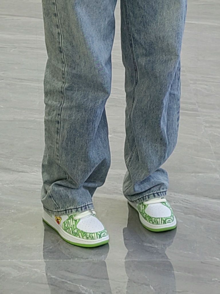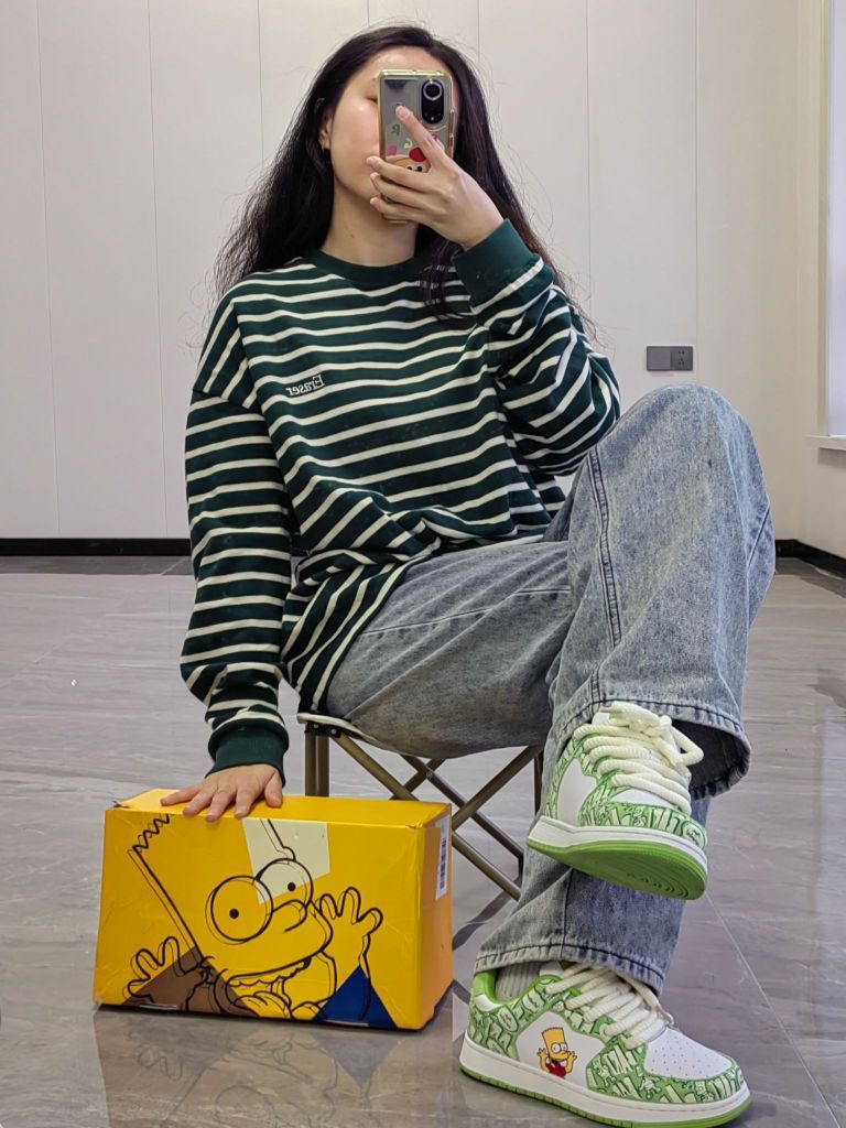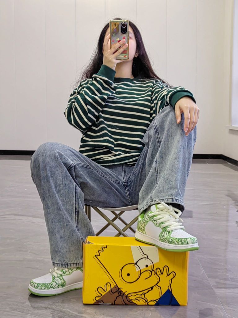 没想到有一天我会被T的穿搭迷住 向她取了一下经 无性别穿搭其实就是在穿搭上选择一些不会凸现身材的,让人第一眼会注意你穿着而不是身材的放大缩小法则 浅试一下,上衣是白绿条纹衫 阔腿蓝色牛仔裤,搭配辛普森绿色板鞋 鞋子是整套穿搭的点睛之笔 涂鸦会让整体较为枯燥增加一点乐趣 做到了上下呼应的同时,也把身体遮盖住 最好配一顶帽子(我的还在路上) 整体下来就是很酷了