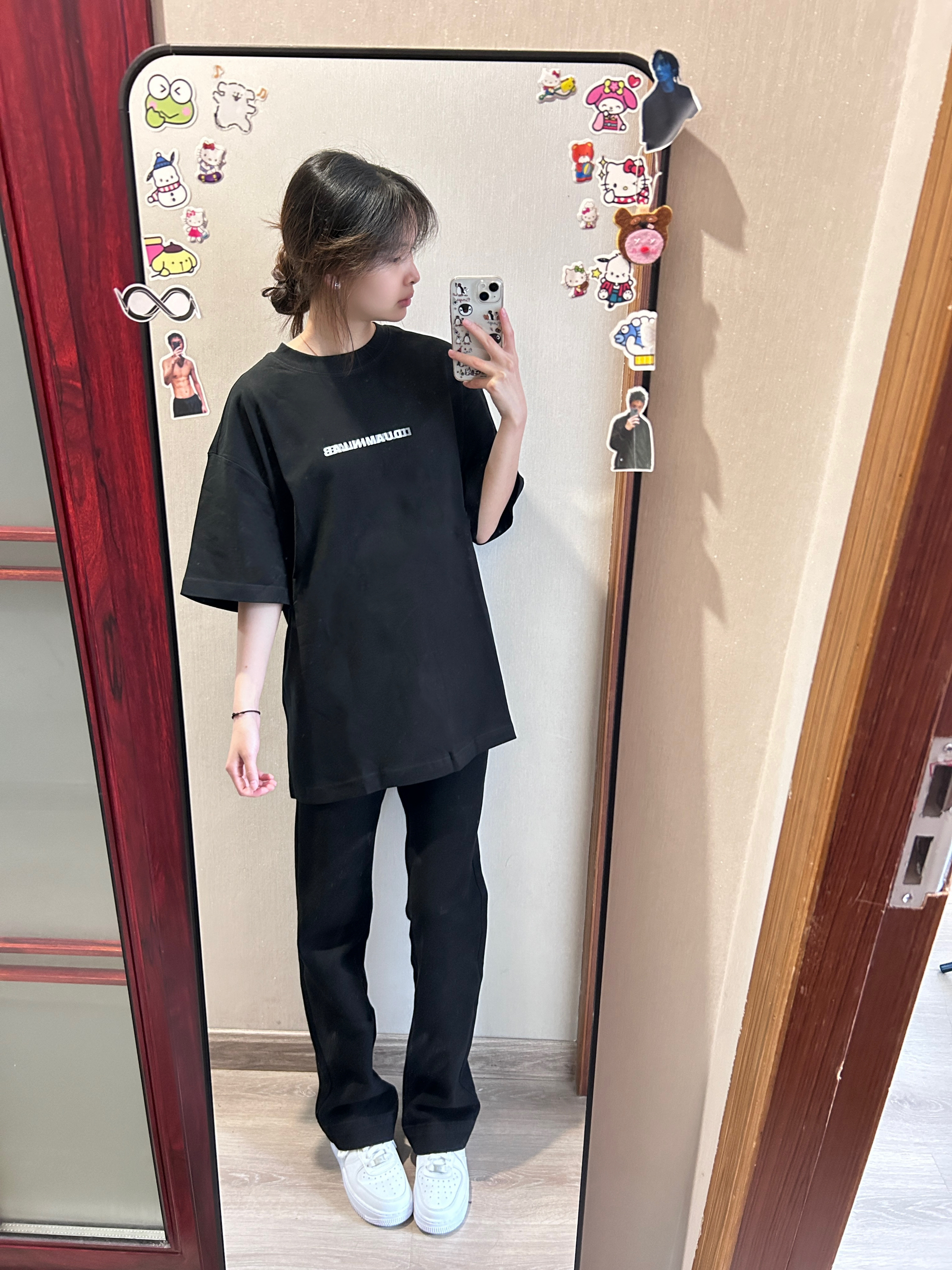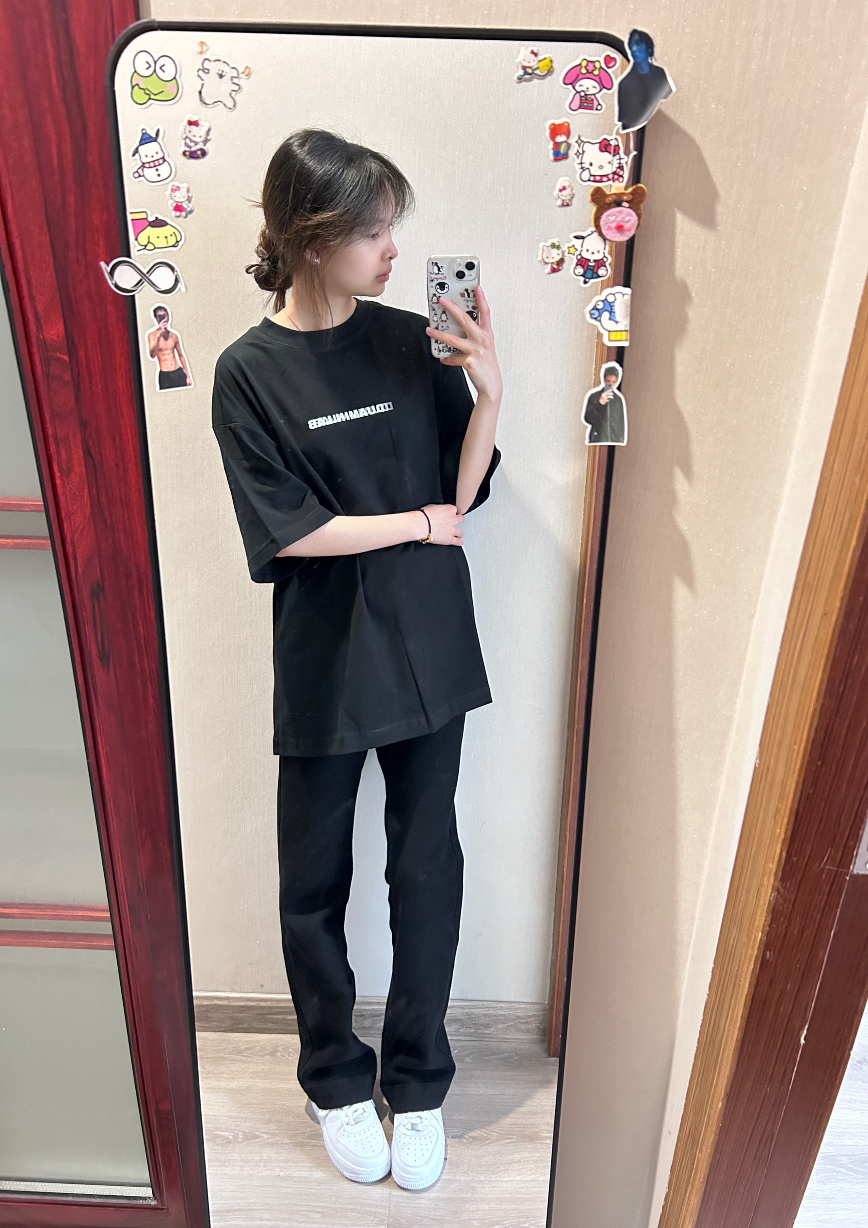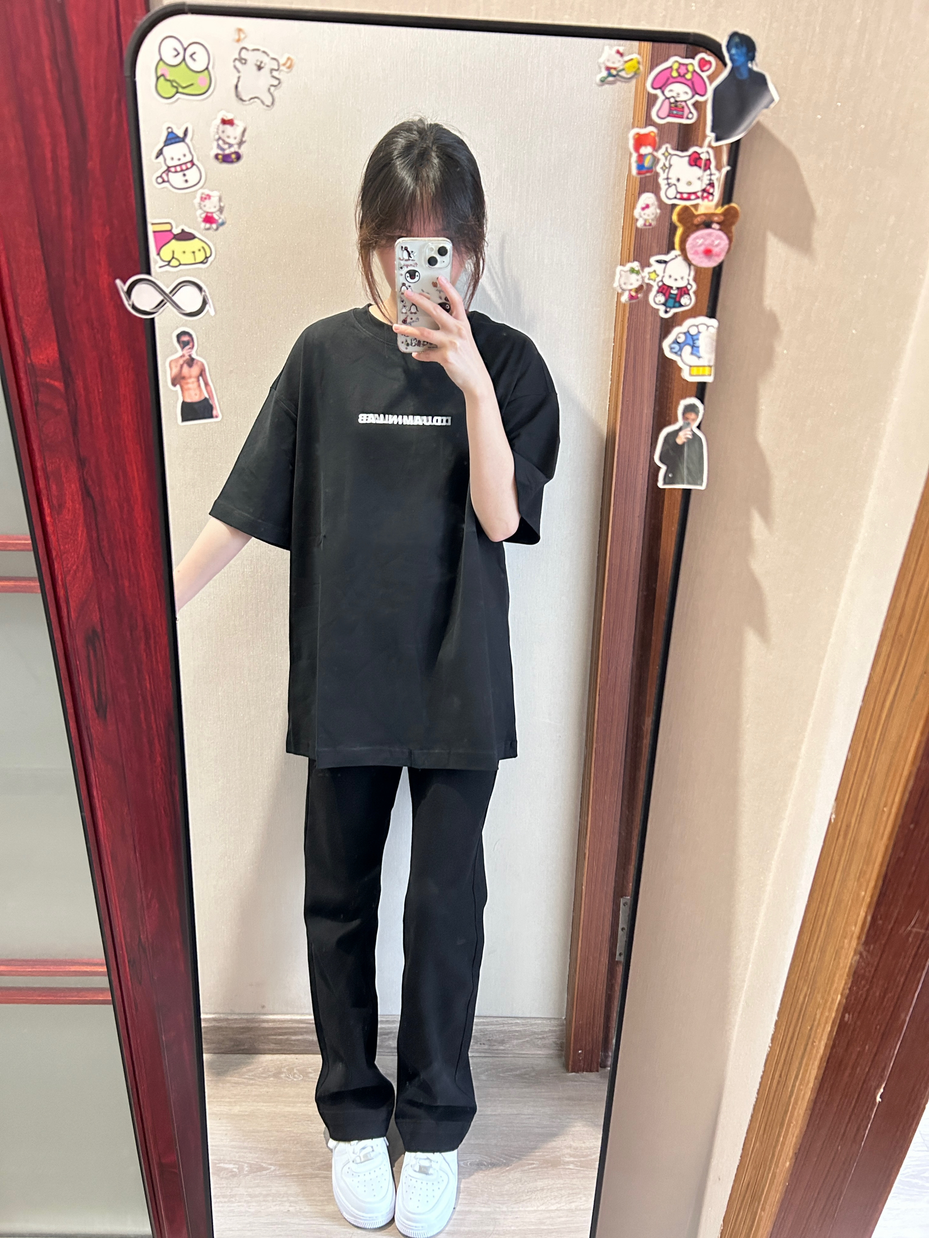 短袖版型很好很显瘦!裤子百搭一身黑我真的爱了!无性别穿搭yyds!
