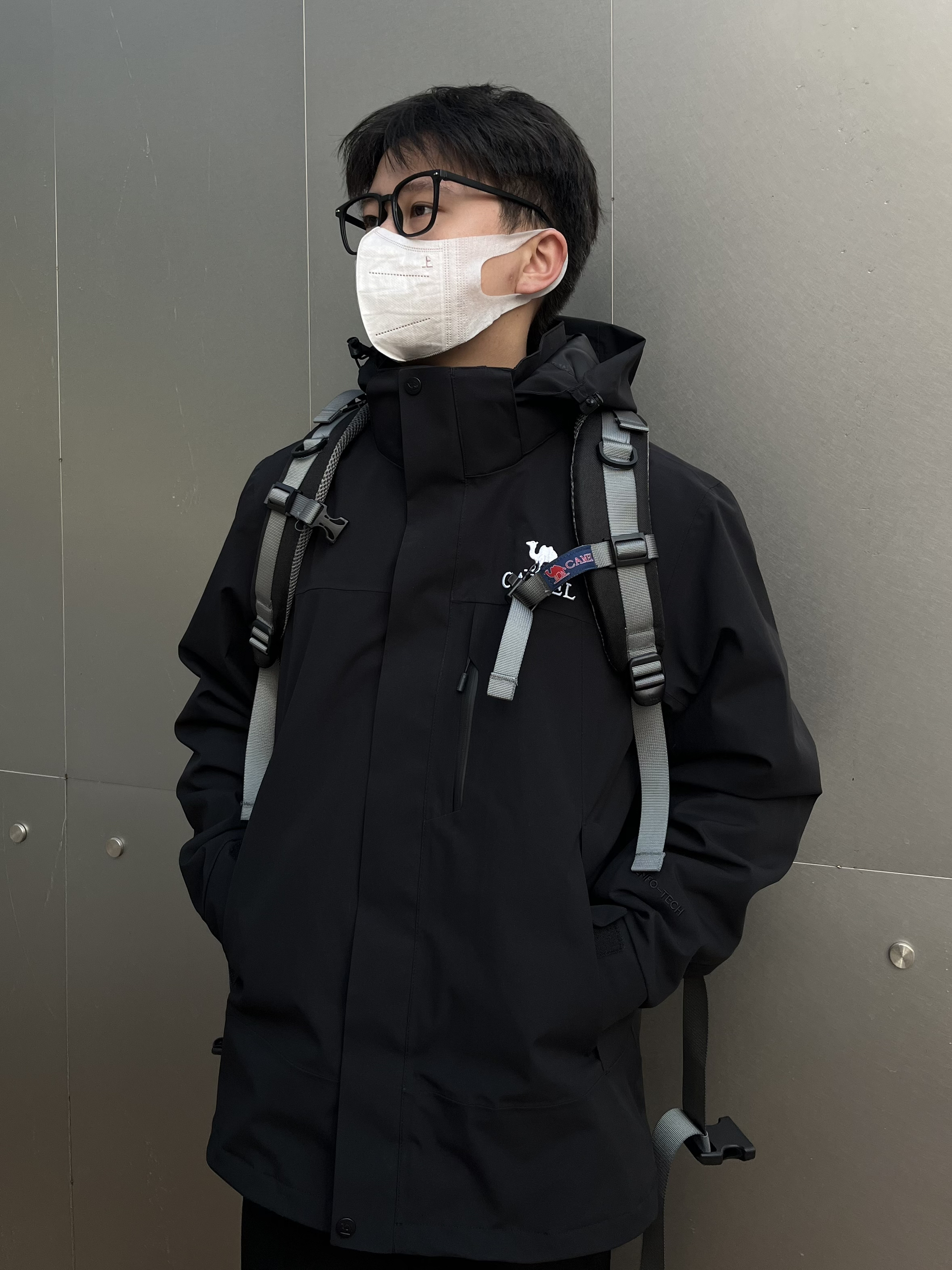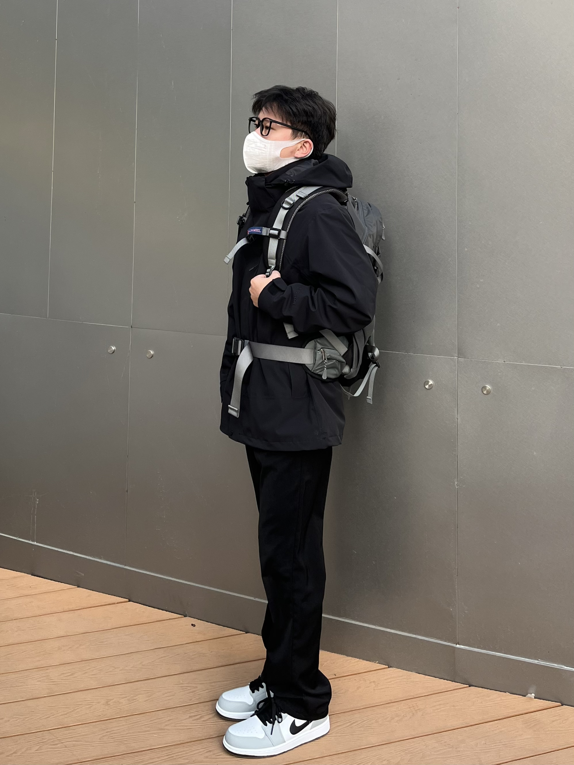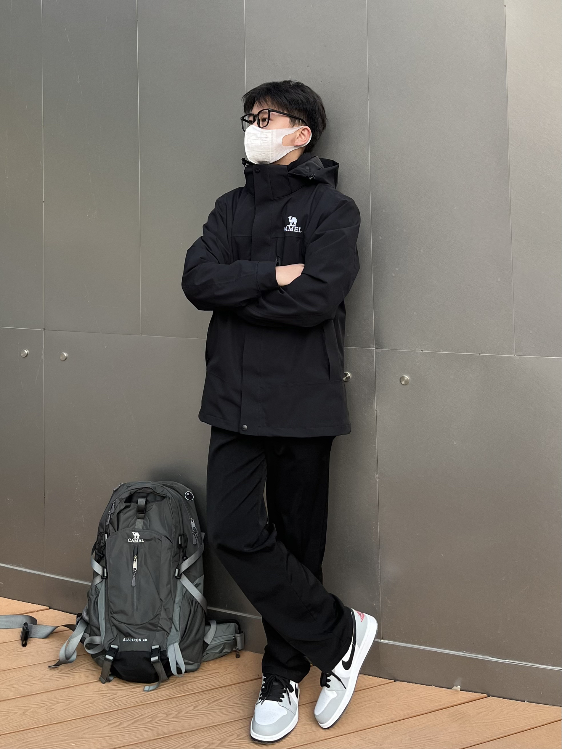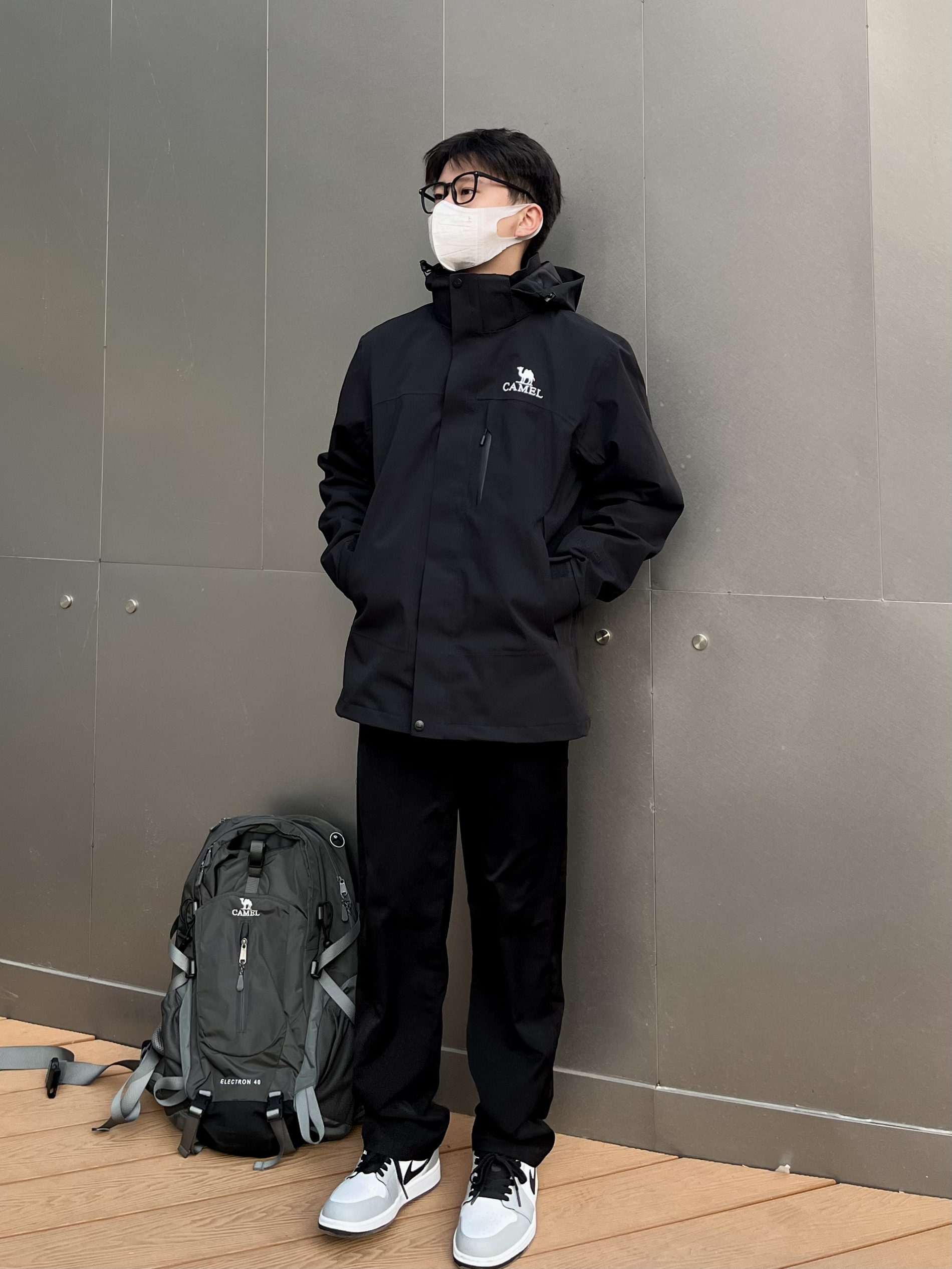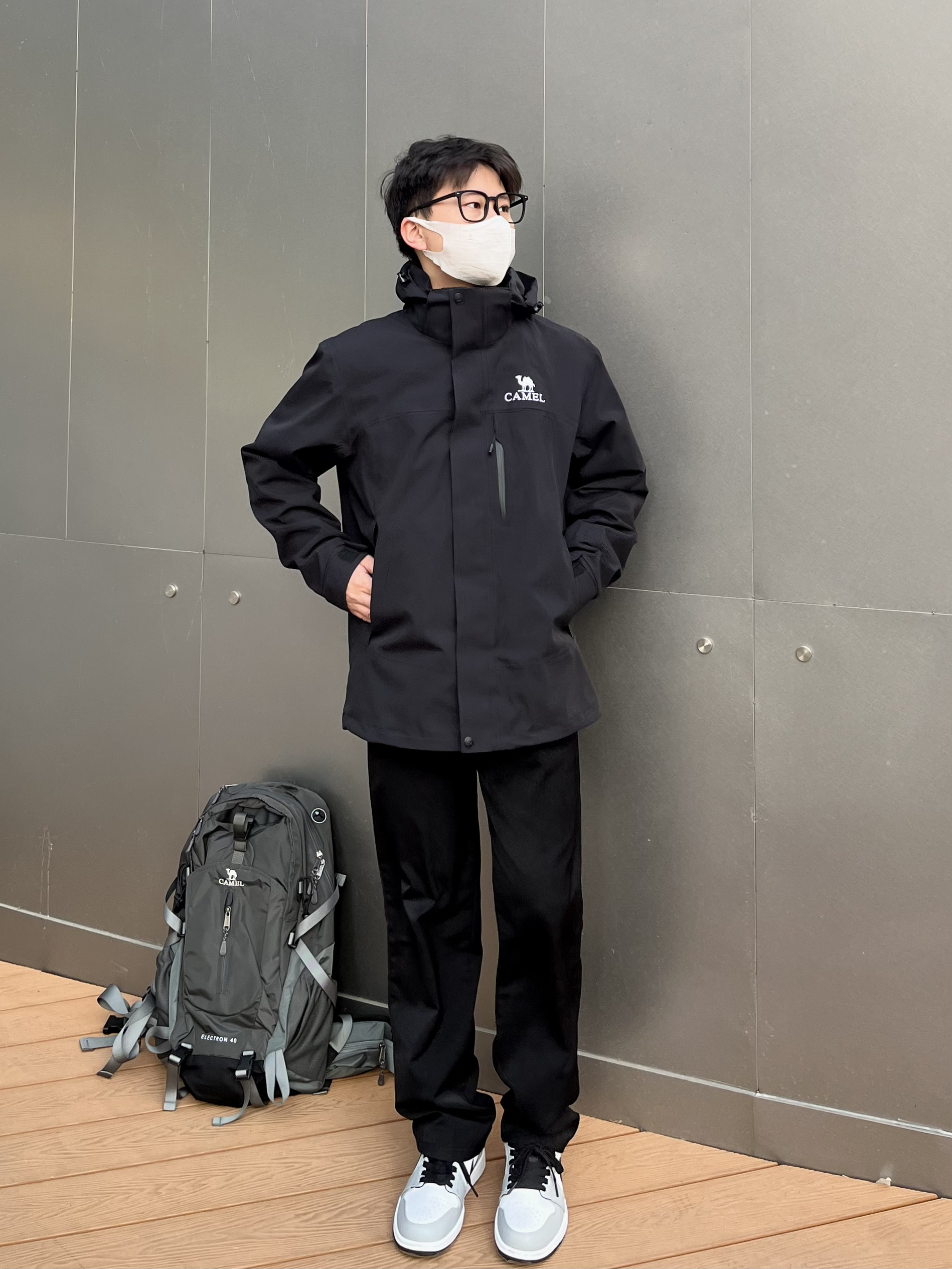 不得不说骆驼的三合一冲锋衣很有高级感✔️ 黑色简约耐看又百搭 宽松版型显瘦显高💯 外壳防风防水面料轻松驾驭多种场合⛰️ 可拆卸单穿的抓绒内胆非常保暖 秋天可以单独拎出来穿 去户外少不了的骆驼登山包 真的眼前一亮🐫 工装风颜值满满 多功能收纳功能性十足👍 裤子选择一条休闲卫裤 中缝线设计吸睛亮眼 鞋子选择AJ1的烟灰 很百搭微宽松版型显高