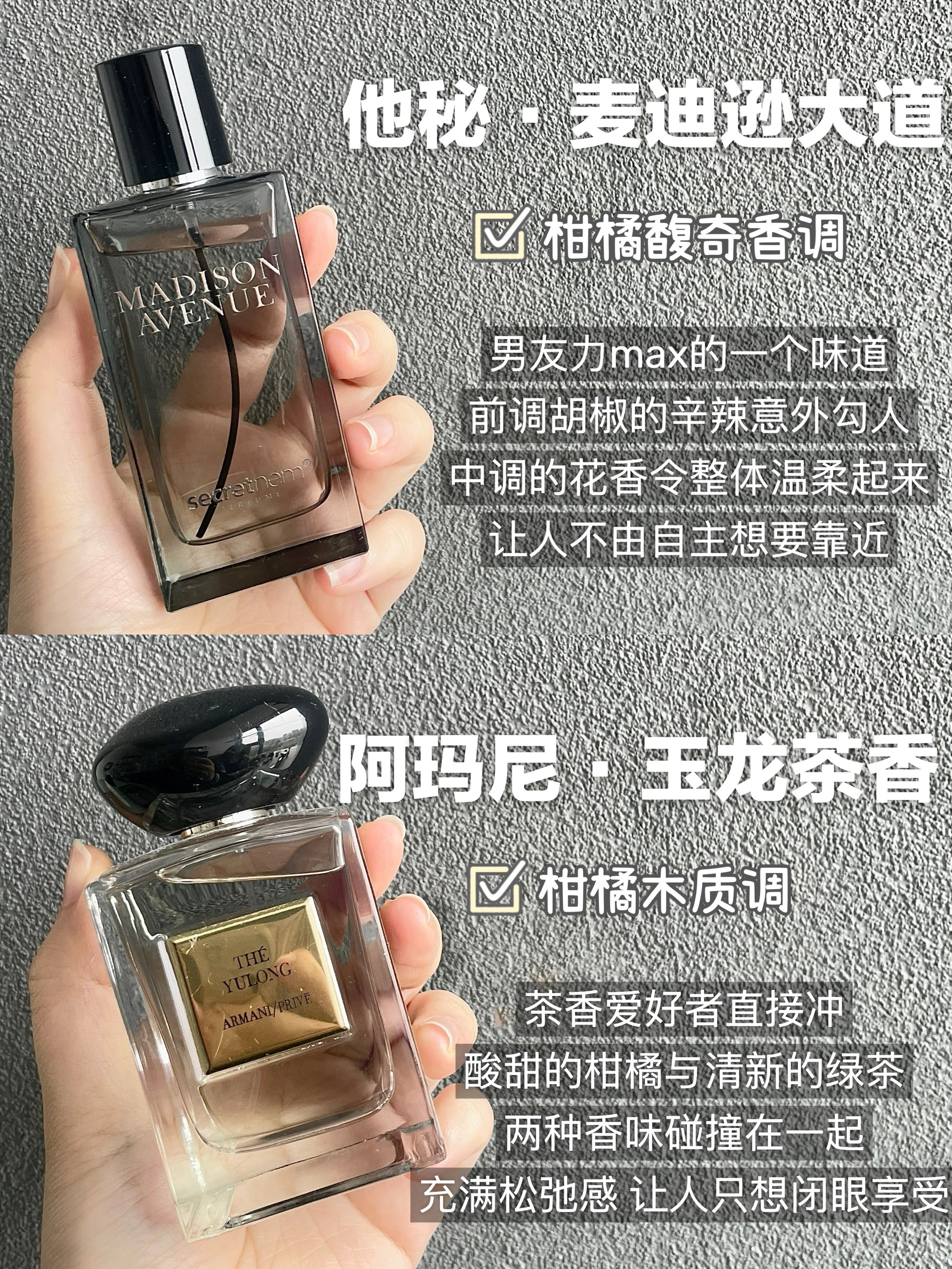 约会前喷点香水真的很有冬天氛围感 让整个人都变得贵气、有格调! 浅浅整理了8支热门男香 平价香水和大牌香水都有 给想要入手的兄弟一些小小的参考~ - 🧊他秘·麦迪逊大道/💰149 前调: 香柠檬 薰衣草 中调: 苦橙 茉莉 海桐 后调:琥珀 当归 - 🧊阿玛尼·玉龙茶香/💰1150 前调: 橘子 小豆蔻 苦橙叶 中调: 茶叶 茉莉 橙花 后调: 香根草 黄葵 鸢尾花 - 🧊蒂普提克·檀道/💰93...