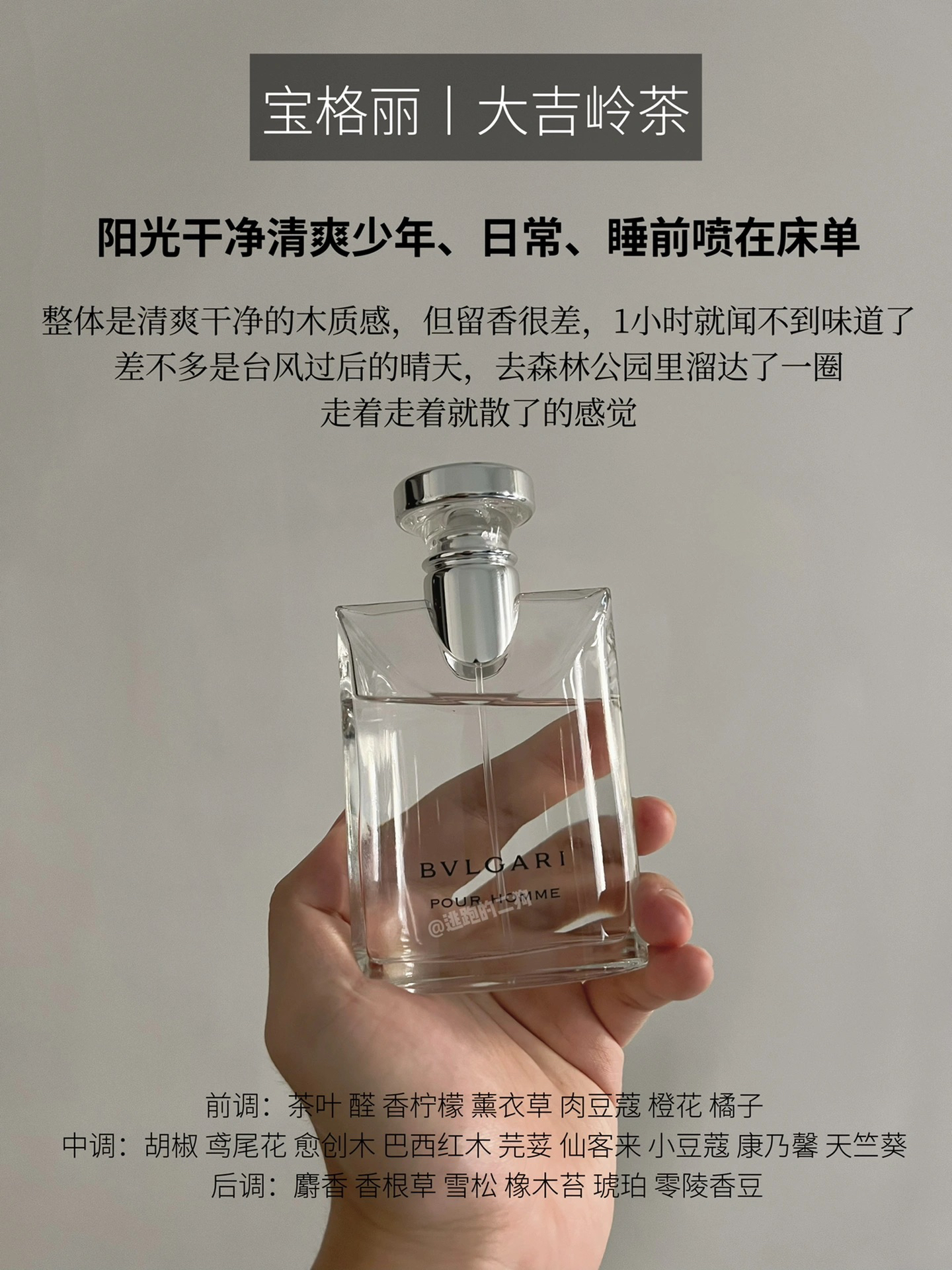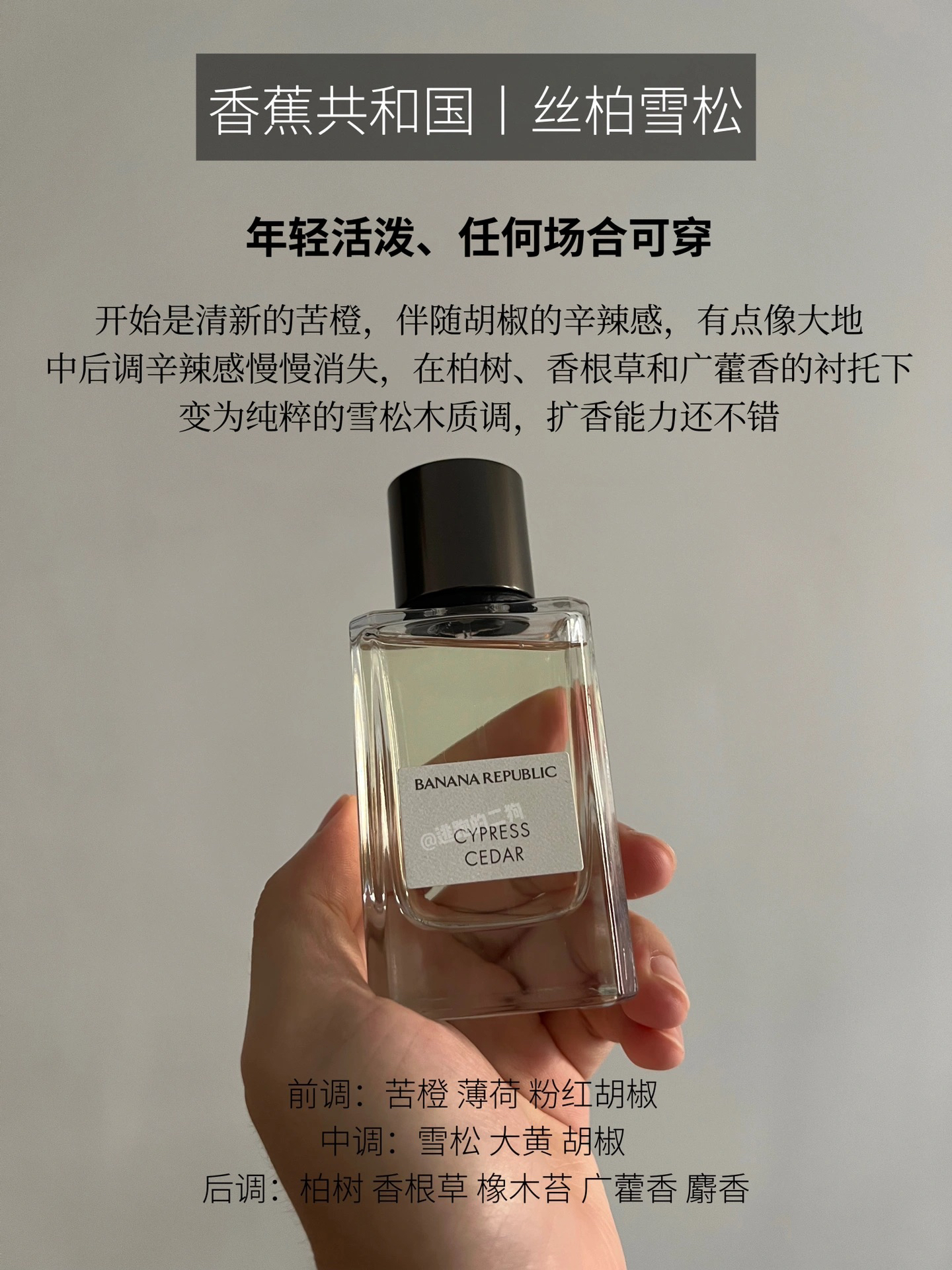 1️⃣ 宝格丽丨大吉岭茶(💰50ml350) ✔️阳光干净清爽少年、日常、睡前喷在床单 整体是清爽干净的木质感,但留香很差,1小时就闻不到味道了,差不多是台风过后的晴天,去森林公园里溜达了一圈,走着走着就散了的感觉 2️⃣ 香蕉共和国丨丝柏雪松(💰75ml360) ✔️年轻活泼、任何场合可穿 开始是清新的苦橙,伴随胡椒的辛辣感,有点像大地,中后调辛辣感慢慢消失,在柏树、香根草和广藿香的衬托下,...
