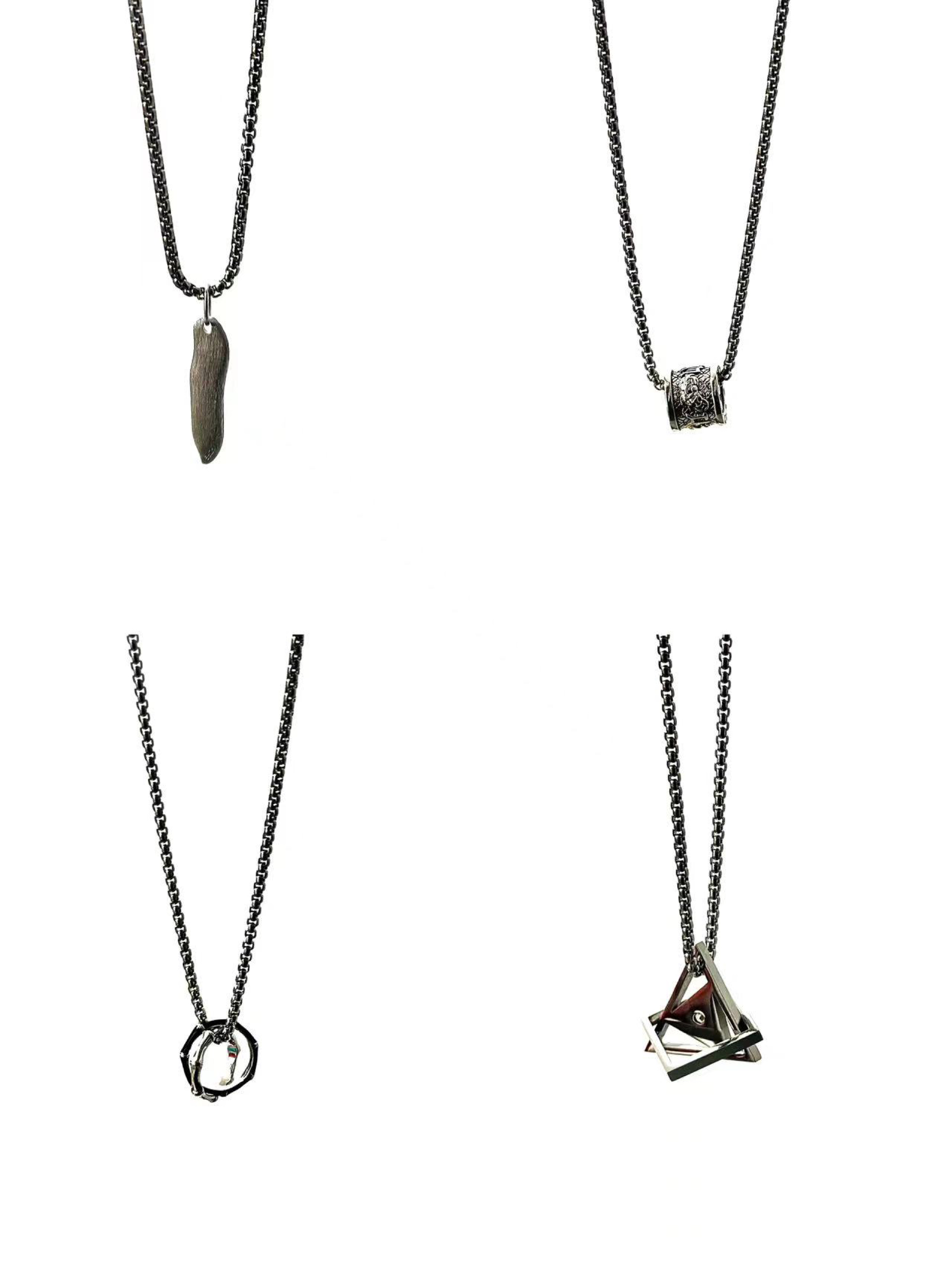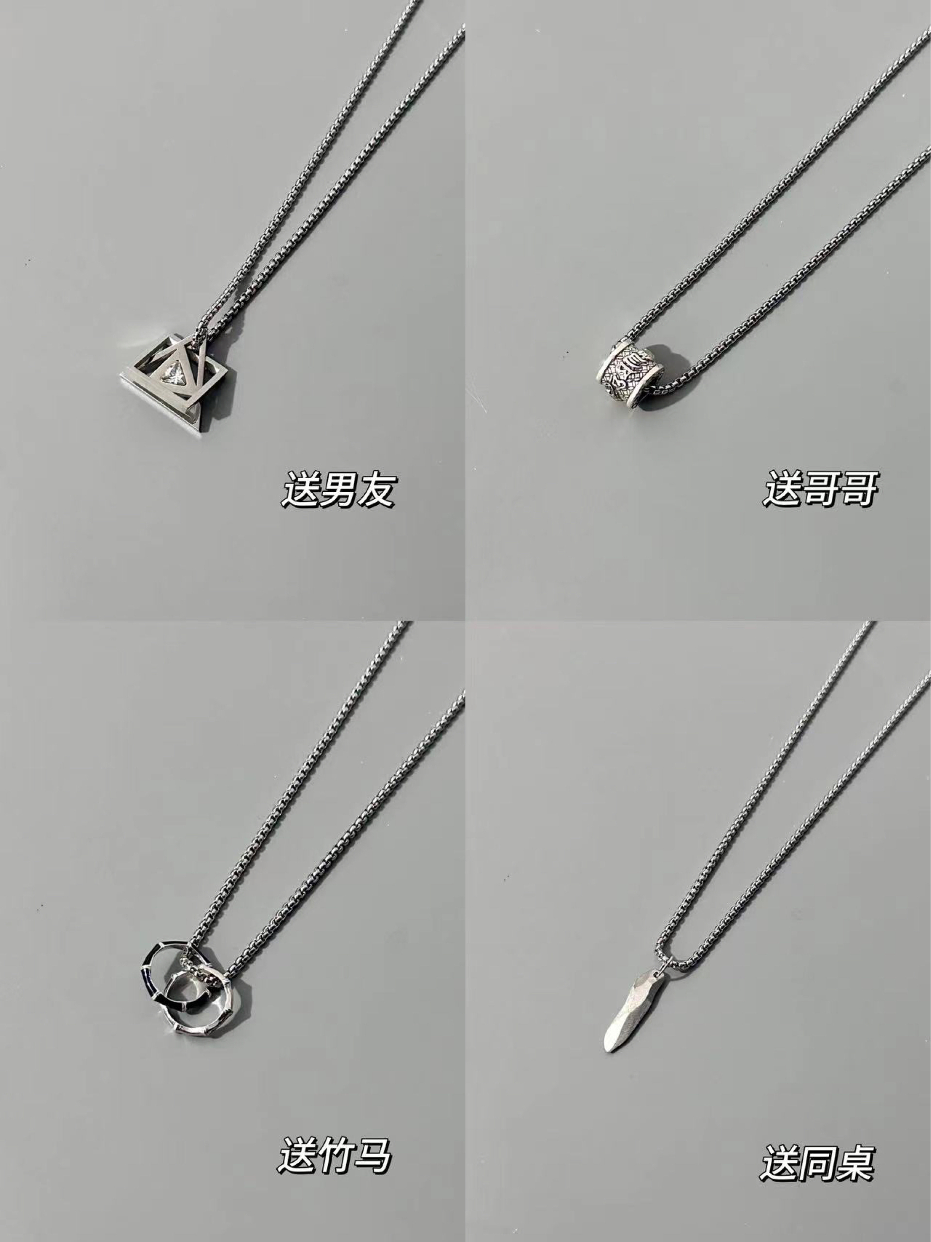好看的配饰真的给穿搭加分 给男朋友准备了这四条项链 不规则幸运石、双环竹节吊坠、几何空间款和貔恘吊坠 简约的链条搭配有质感的挂坠 不管是日常还是聚会戴都可以滴