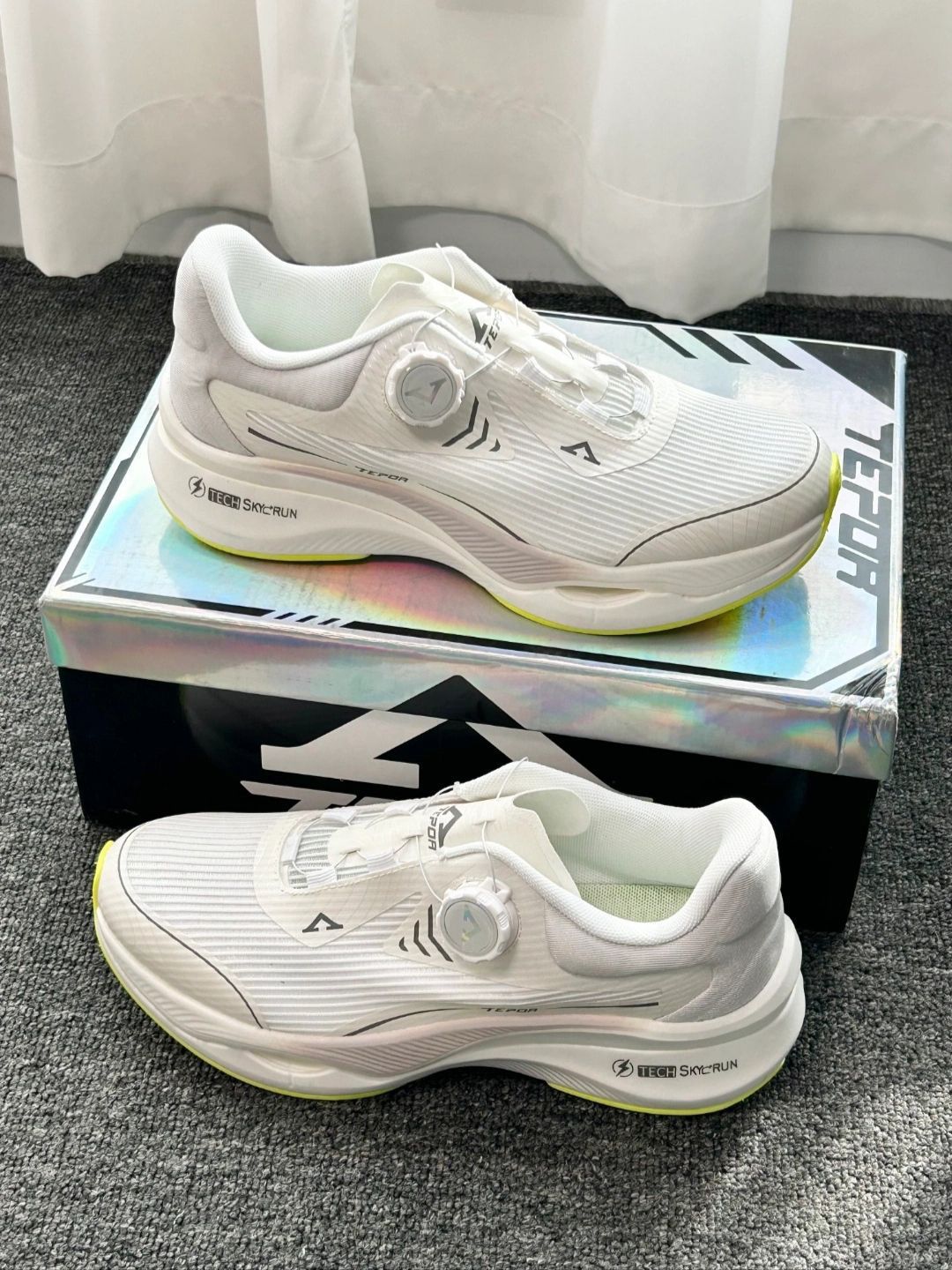 不得不说,现在的国产跑鞋做的是越来越好了 好多鞋可谓是颜值和性能兼备 就拿我最近穿的这双天跑追风来说, 鞋面整体是以白色为主,简约又百搭, 鞋底是双层发泡中底+抗扭片,软弹又舒适,大底配橡胶贴片,防滑又耐磨, 而且鞋带旋钮设计的,松紧都很简单,妥妥的懒人福音啊 最离谱的是,这配置真的只要200多?