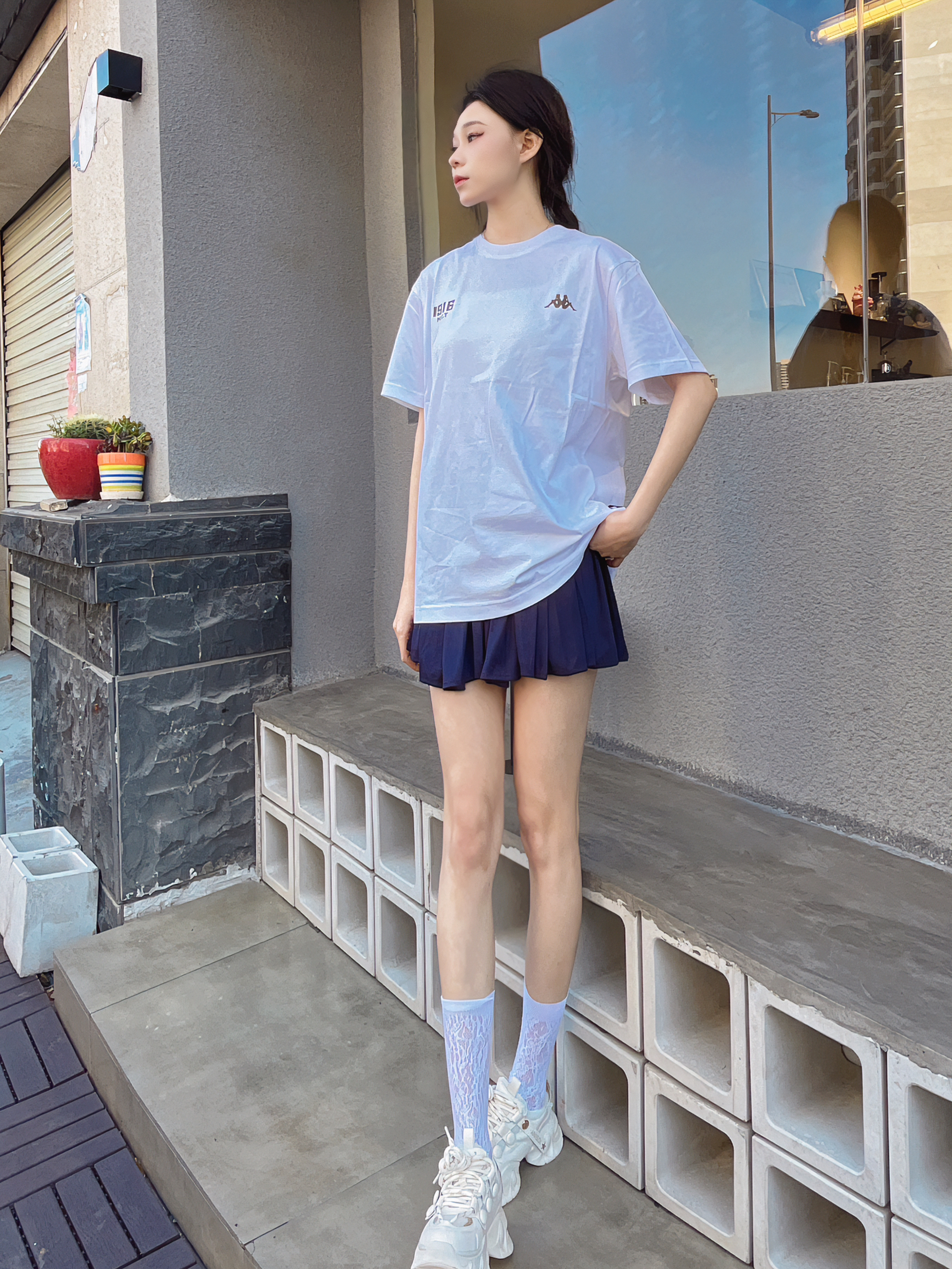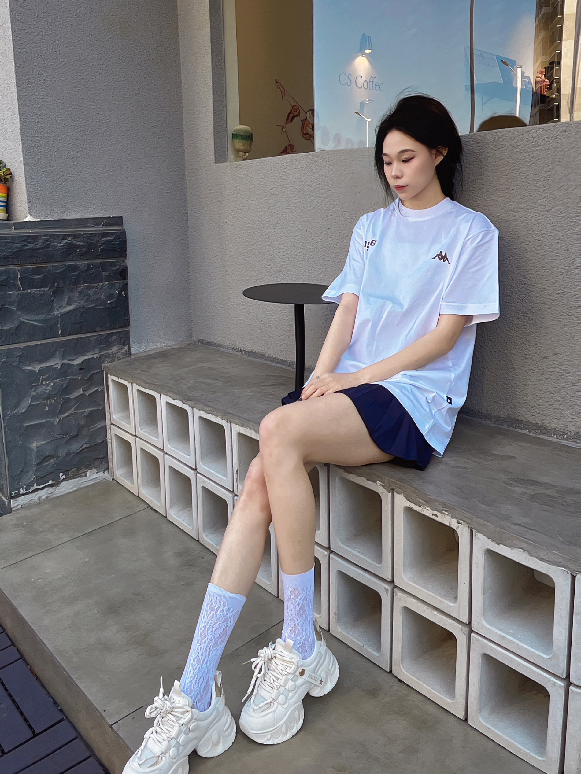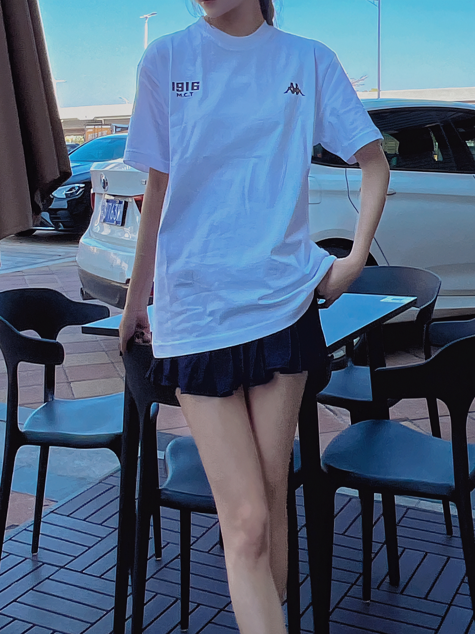 一件白T打开清新春日~🍃 看看今日休闲学院风的 Kappa 短袖 + 短裙~ 1916系列都是宽松版型 适合各类身形的姐妹👭 Chun棉面料 清爽透气不闷汗 白色+深蓝就是显瘦界 yyds 一身清新又元气少女出街!🎀