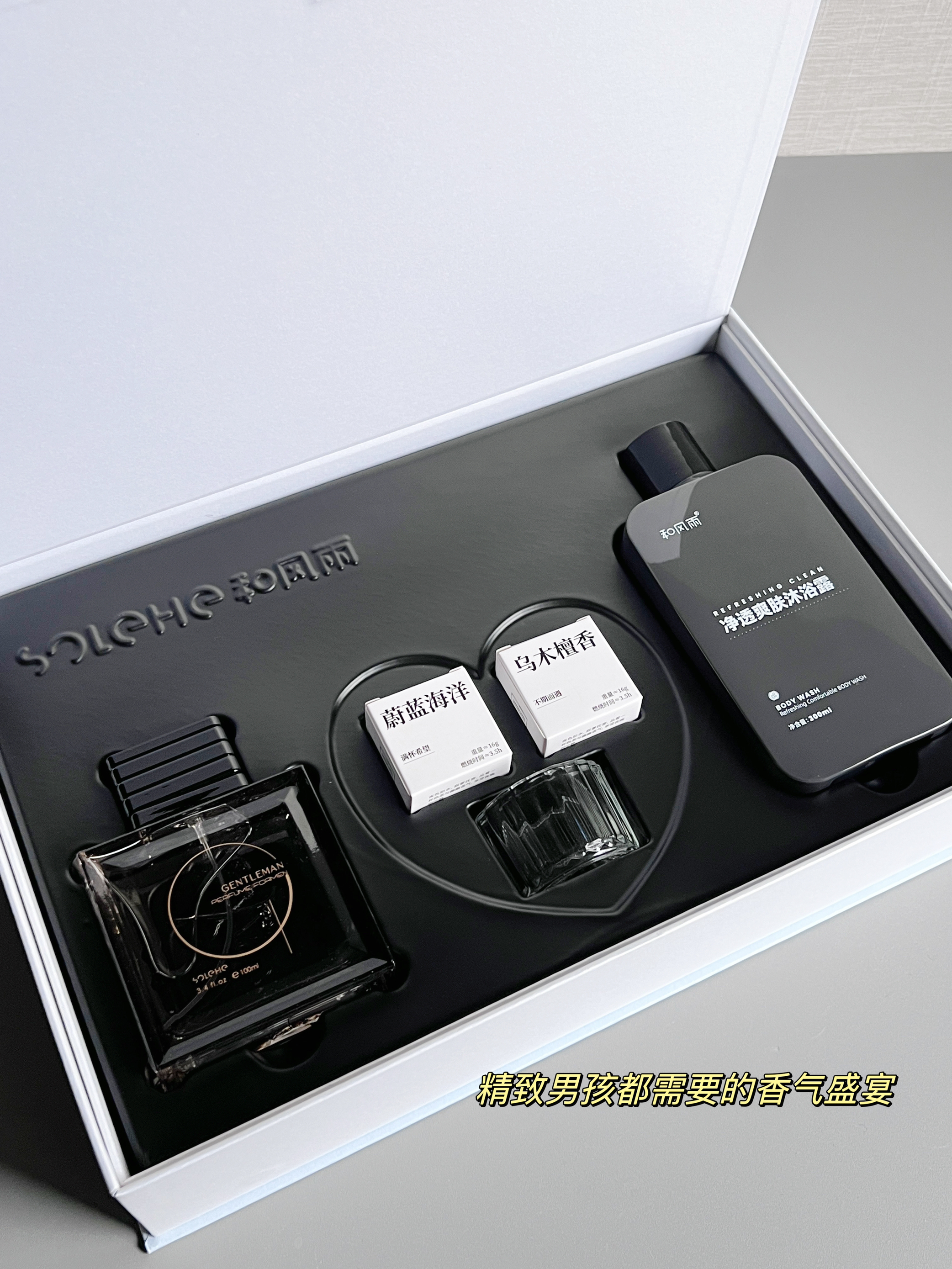 穷鬼要怎么送男朋友礼物啊? 和男朋友过的第一个生日~ 给他准备了一个小惊喜 风和雨的心动信号礼盒尊嘟好好看哟 就是一整个香水弥漫套盒嘿嘿,有喜欢的香水和沐浴露还有好可爱的香薰蜡烛~ 给他绅士香水,木质调的一款沉稳气息,大吉岭茶的清冽加上尾调的麝香,一整个man住了 同款的沐浴露,让我的男孩子身上满满我喜欢的味道~ 还有小小的香薰蜡烛也泰可爱噜~不仅味道好闻,点燃还有光圈~好好看 男朋友收到礼物开心...