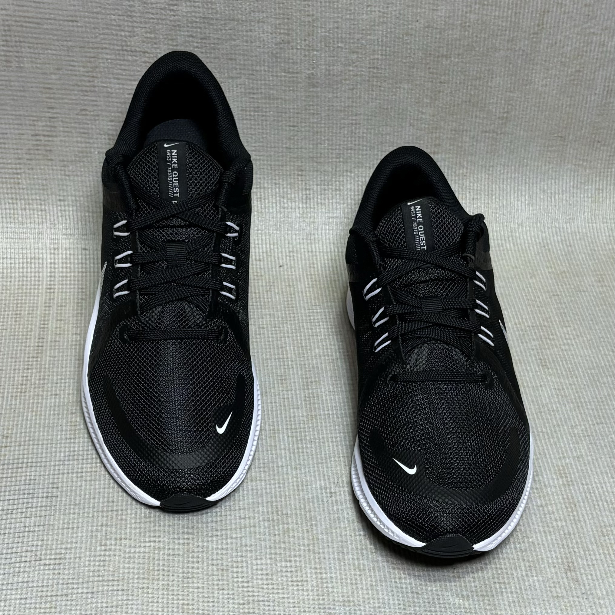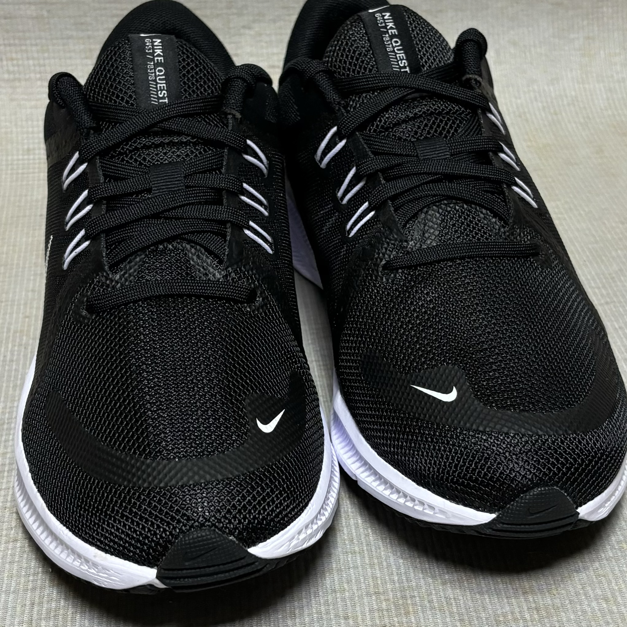 本篇笔记关联了Nike Quest 4 跑鞋 轻便透气缓震耐磨舒适回弹复古织物包裹性耐力跑缓冲支撑 黑色/白色等商品,为用户提供真实的使用体验和购买参考。