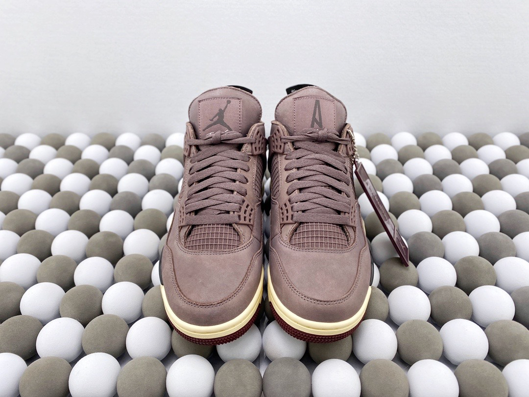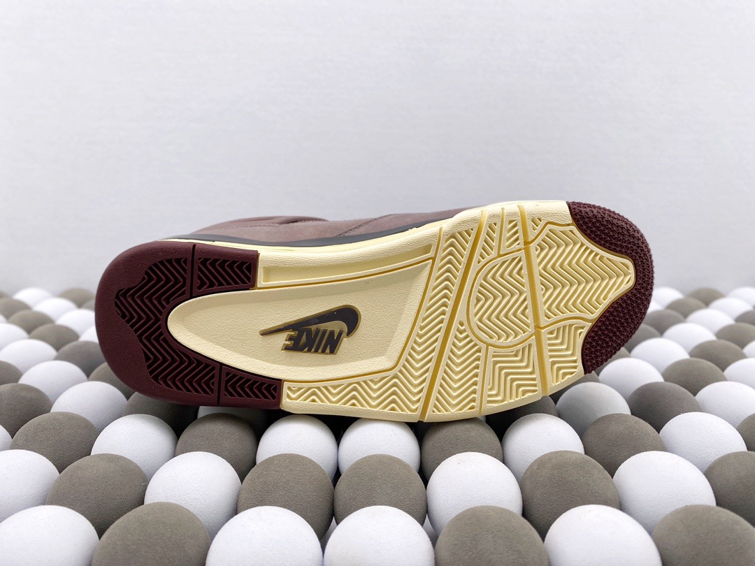 AMa Manie're x Air Jordan 4 “Violet Ore” aj4 酒红 ☝️ 整双鞋采用牛皮革材质,手感非常的柔软,内衬在普通AJ4基础上作了改进,取消了毛巾内衬,改成了丝绸般柔软的内衬,颜值拉满!做旧日的中底,不用担心日后氧化的焦虑!颜值就不更不用说了,非常喜欢这种咖色系的鞋,虽然是酒红色,但也接近于咖色好搭配!尤其搭配工装风格的裤子