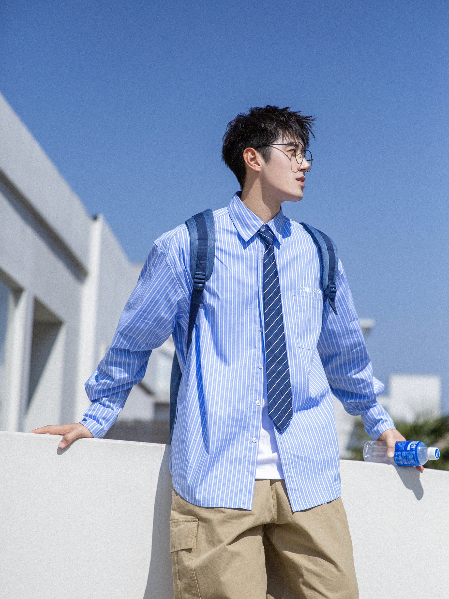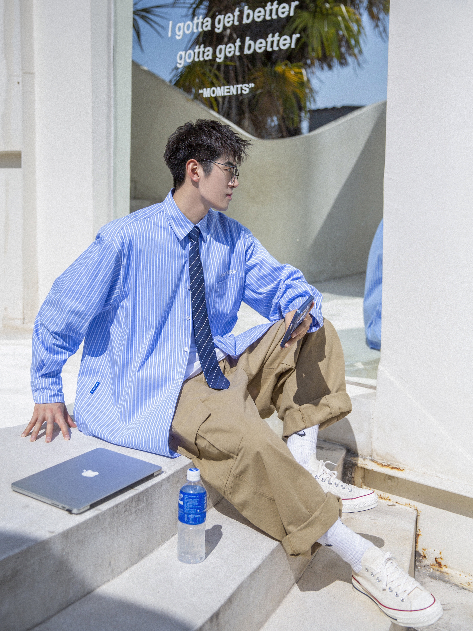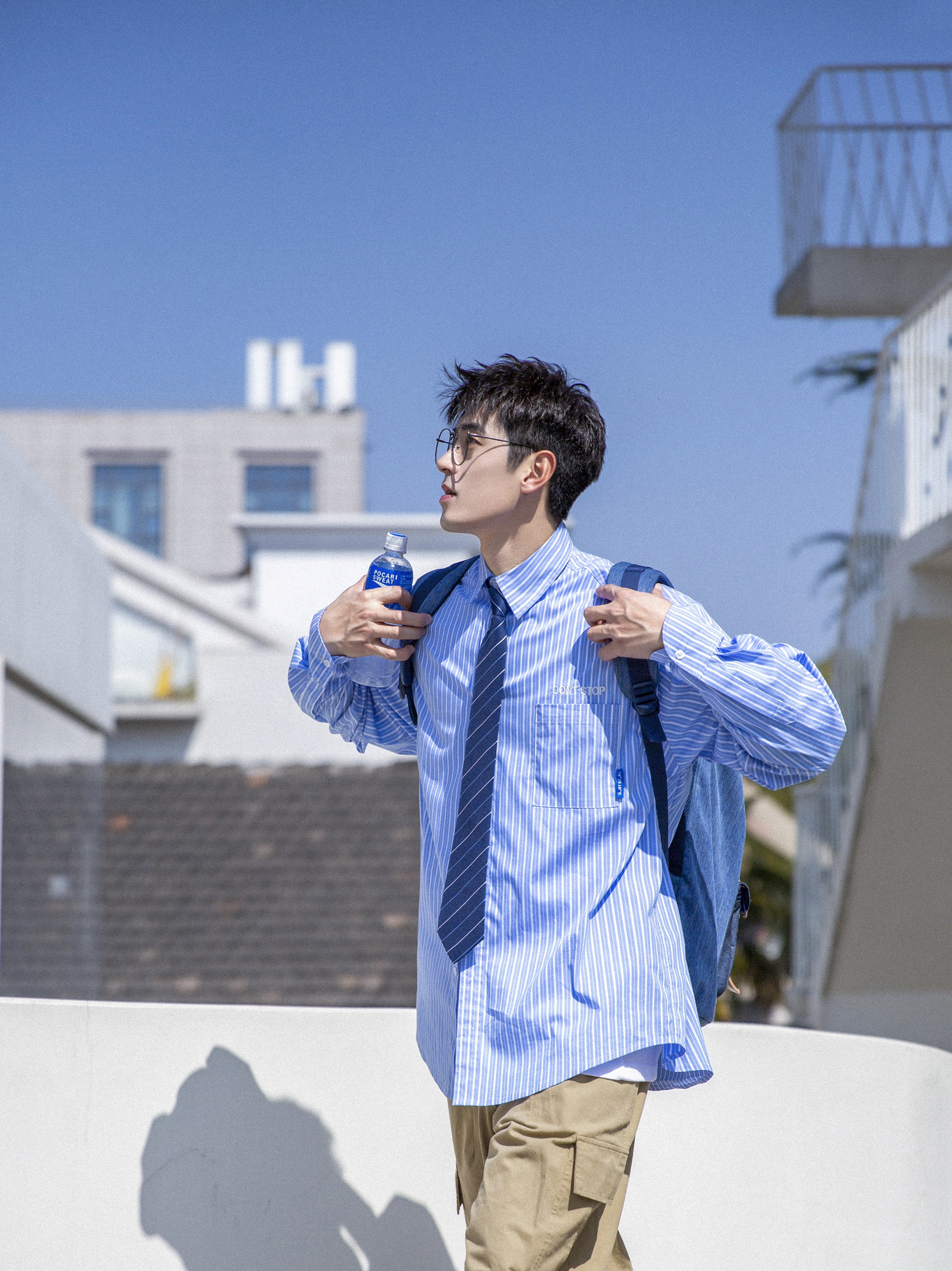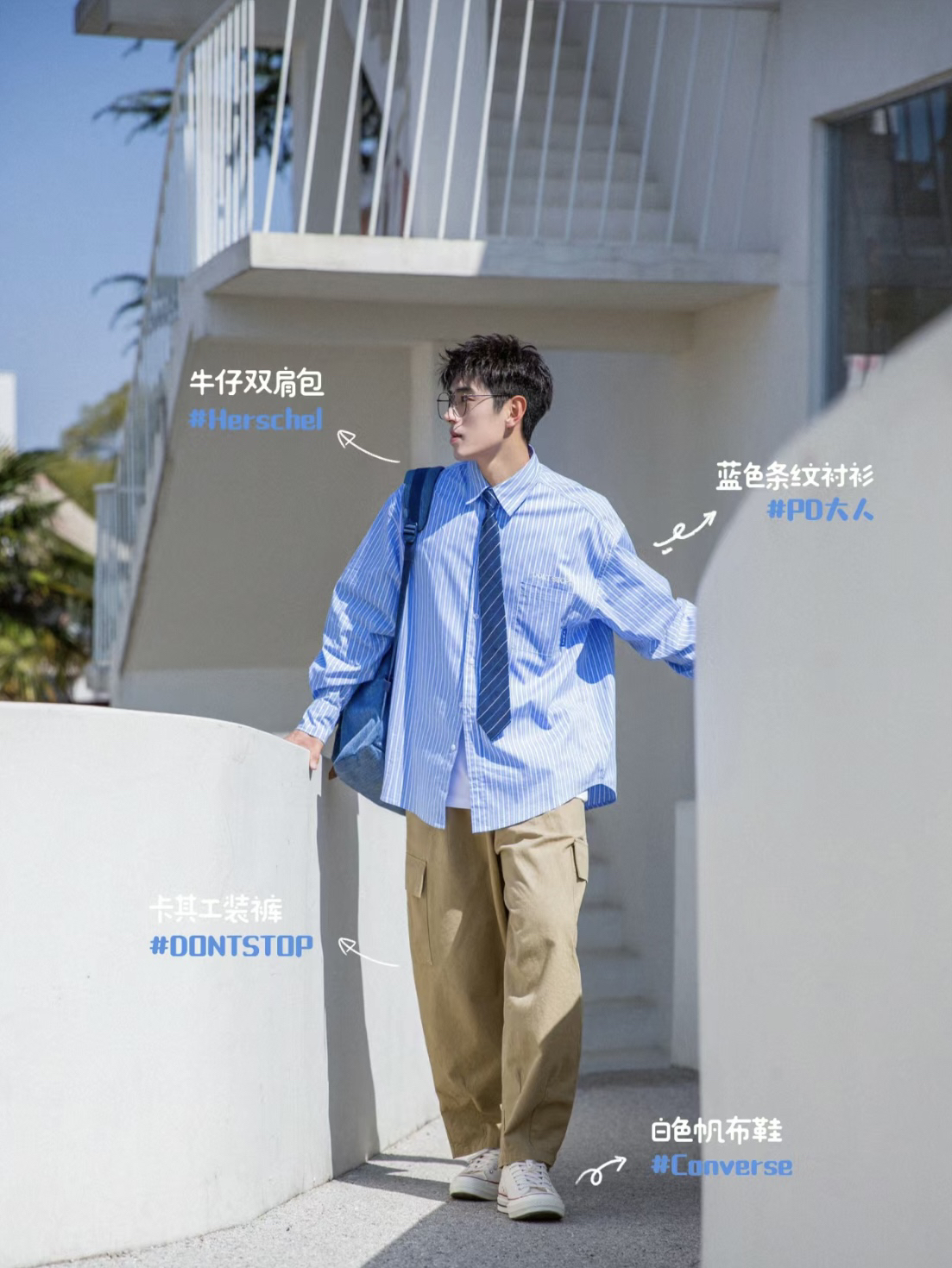 🔹春天!又到了穿“衬衫”的季节!男生没衬衫怎么型!所以,今天分享一套“男生春季穿搭”—“蓝色系”少年感穿搭!👔✨…… — 🔹相信我!女生都是喜欢“干干净净”的男生!一套“清爽舒适”的干净穿搭!真的很加分!今天这套“男生基本穿搭公式”=“蓝色条纹衬衫”+“卡其工装裤”+“白色帆布鞋”!真的就是“一学就会”的盐系男友风穿搭!谁穿谁好看系列!🌀✨…… —