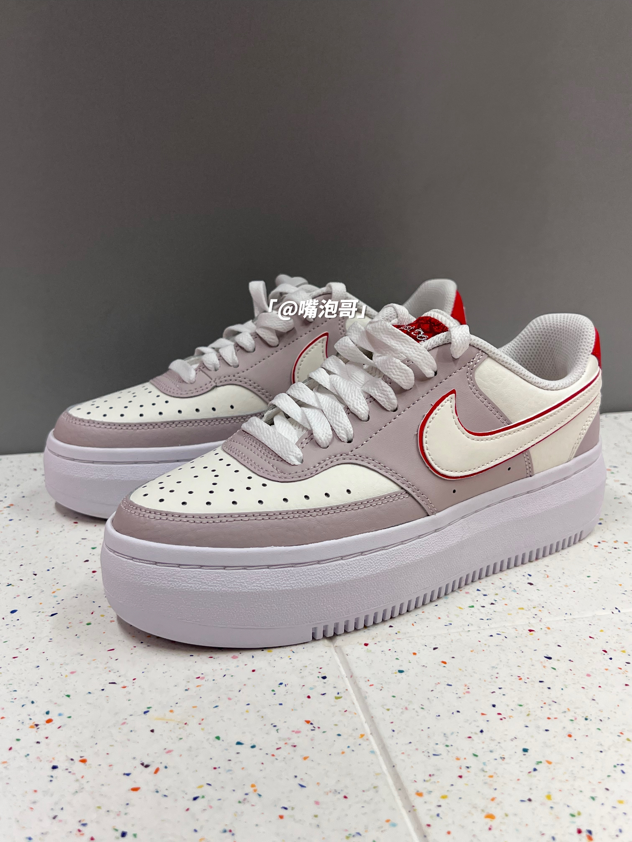 本篇笔记关联了Nike Court Vision 1 Alta 板鞋 缓震舒适轻便耐磨厚底增高 女款/米色/白色/红色 等商品,为用户提供真实的使用体验和购买参考。