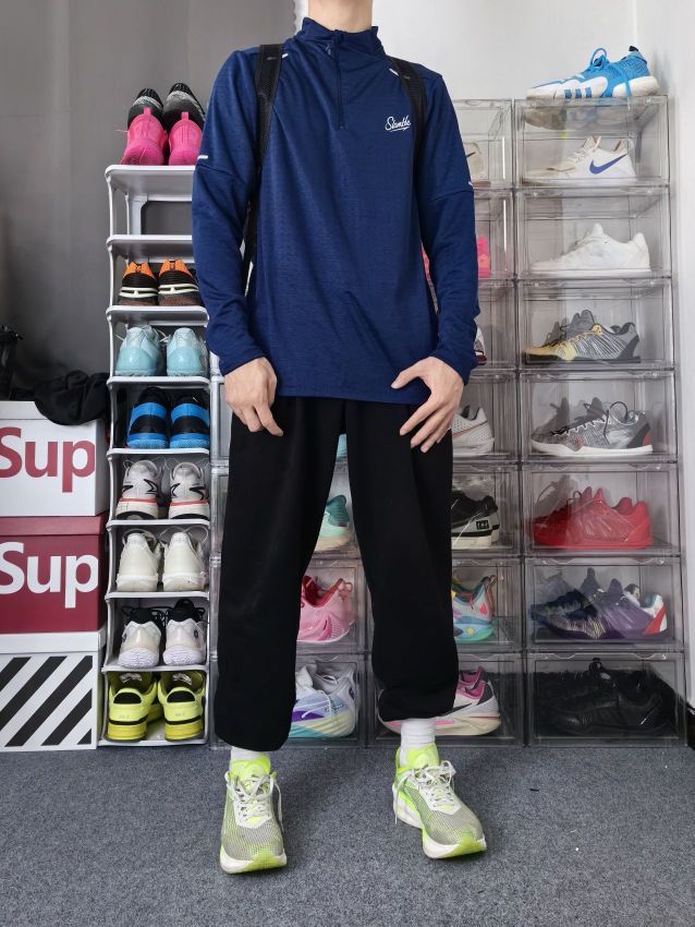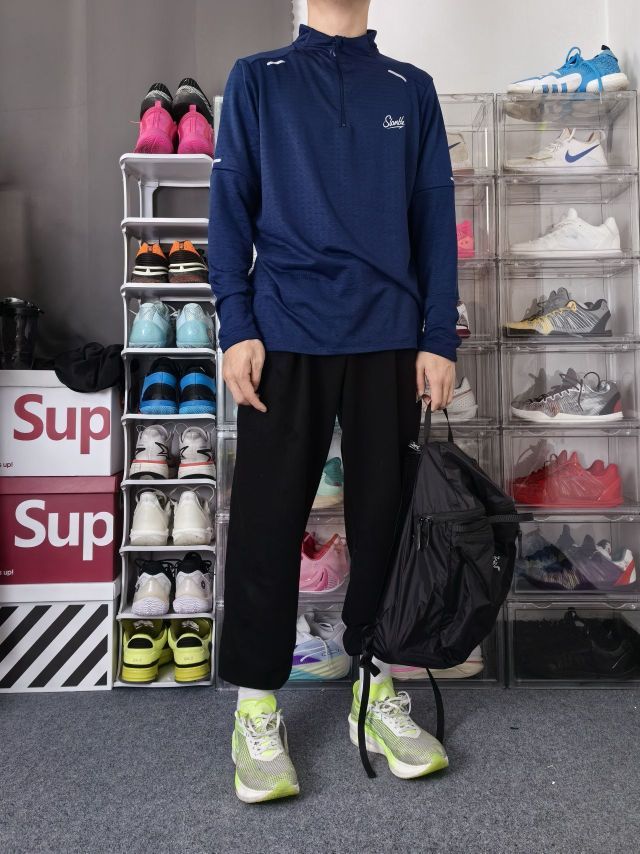 因为上班的原因,日常跑步骑行都是选在早餐和夜间,但是温度都会较低一点,一件保暖的运动长袖就能够解决这些问题。 这是一件来自slamble 的纯色反观长袖,衣服是厚实的面料,但是透气网孔能够快速排出汗液,衣服领口是靠拉链锁定,穿脱更加方便!夜间跑步时,衣服带有的反关条,能够谨慎后方来车! 我173 65kg 选L,合身