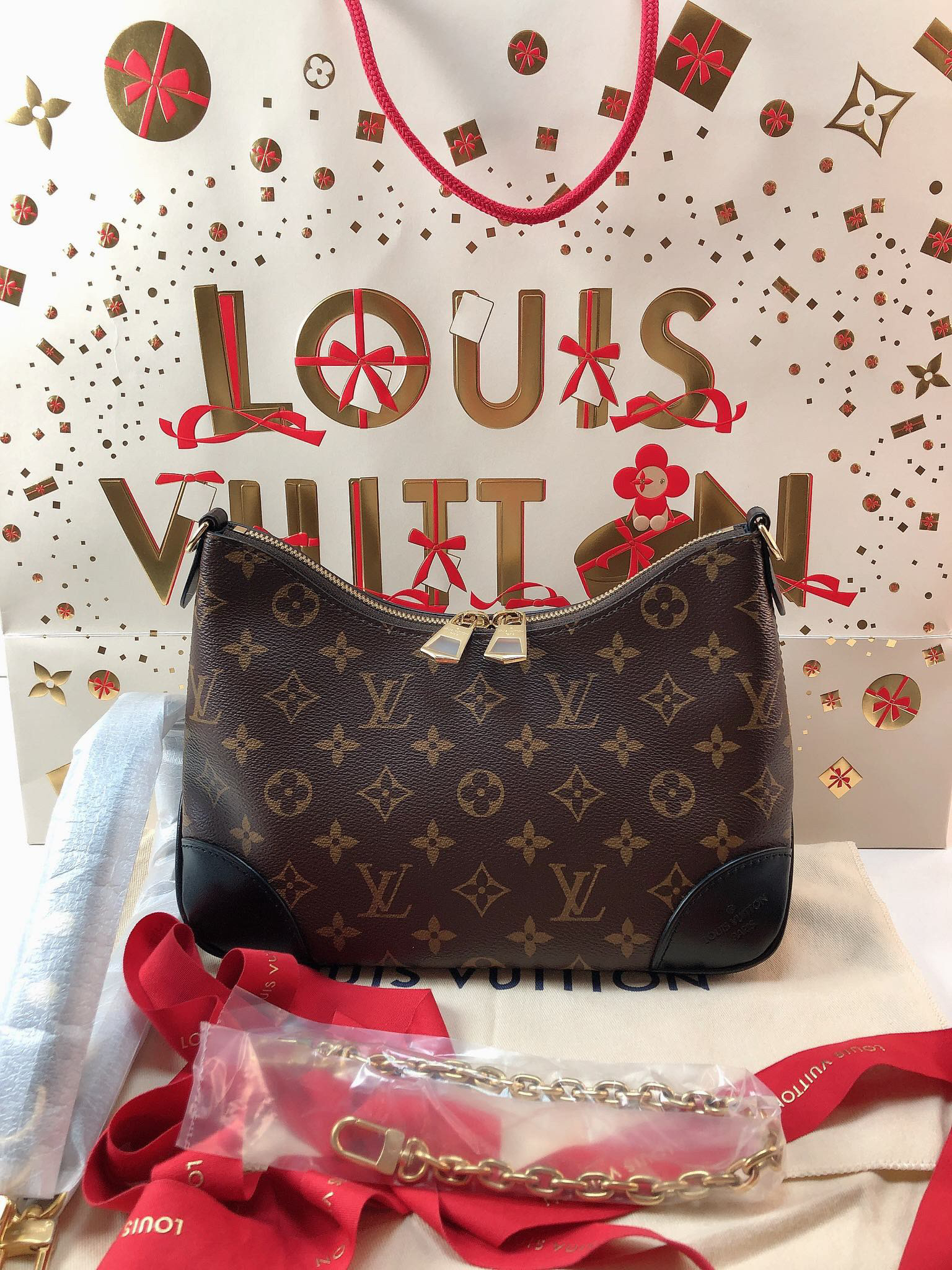本篇笔记关联了Louis Vuitton Boulogne 涂层老花帆布拼牛皮革黄牛角饰边可拆肩带链条单肩牛角包斜挎包 黑色等商品,为用户提供真实的使用体验和购买参考。