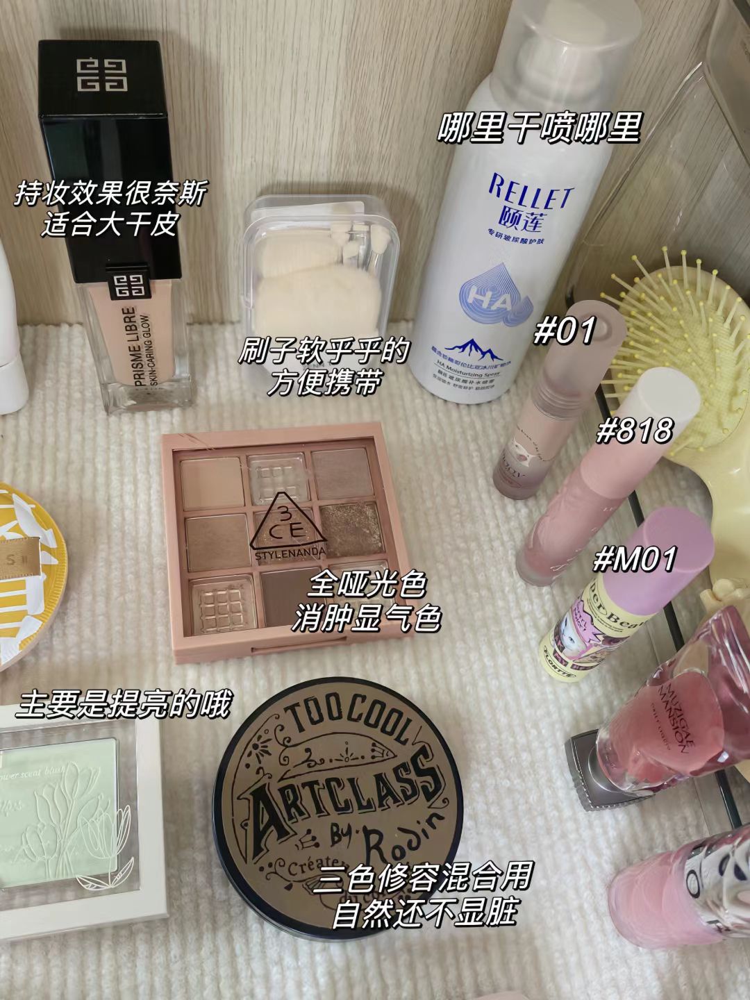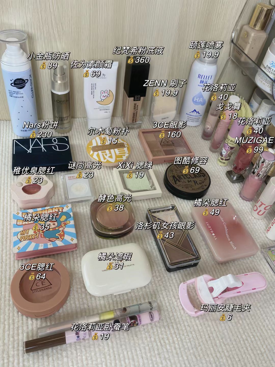 最近挑选出这些都是平价又好用的,个个都是我的心头爱~ 纪梵希粉底液 3ce眼影 颐莲喷雾 尔木萄粉扑 涂酷修容 洛杉矶女孩眼影 into you 唇泥 酵色腮红 橘朵遮瑕 花落利亚卧蚕笔