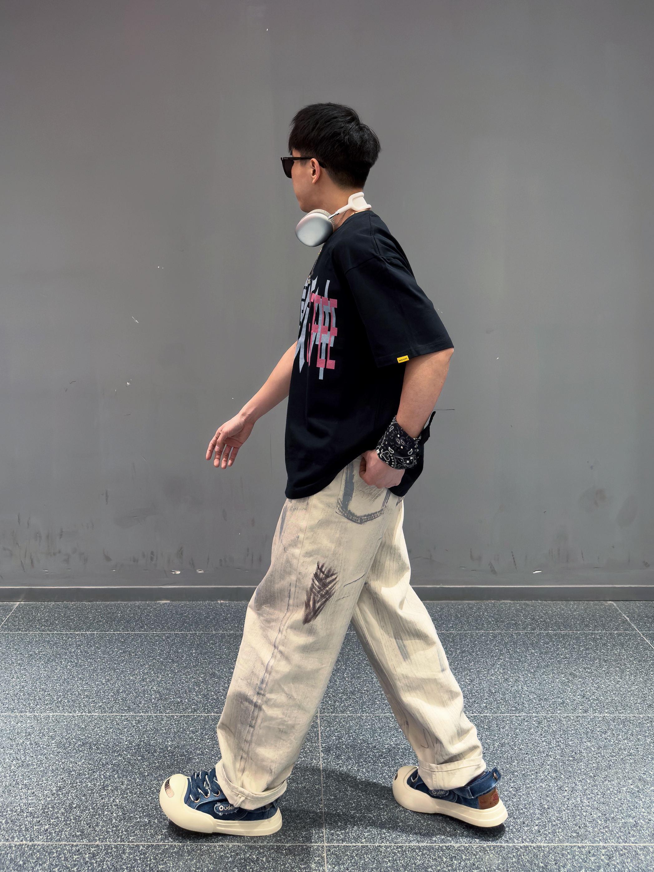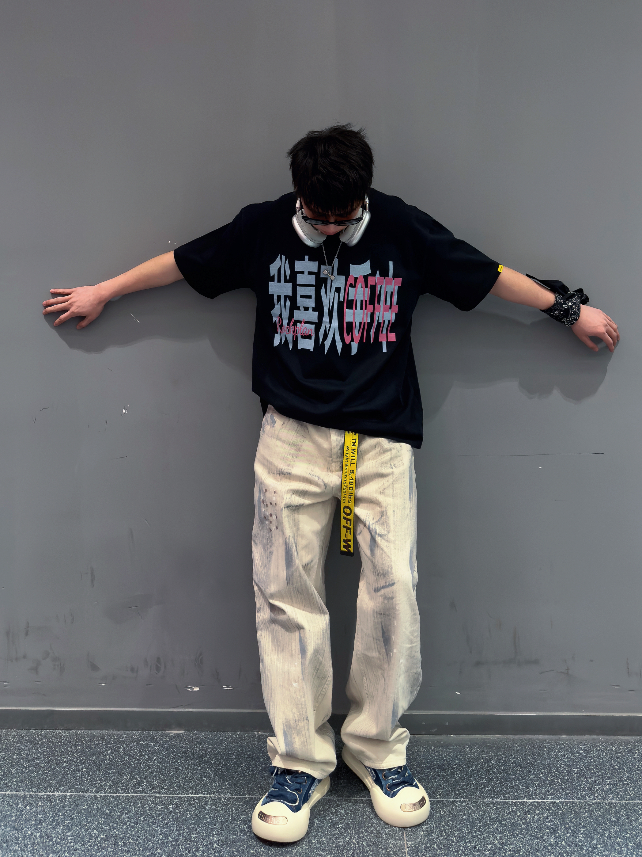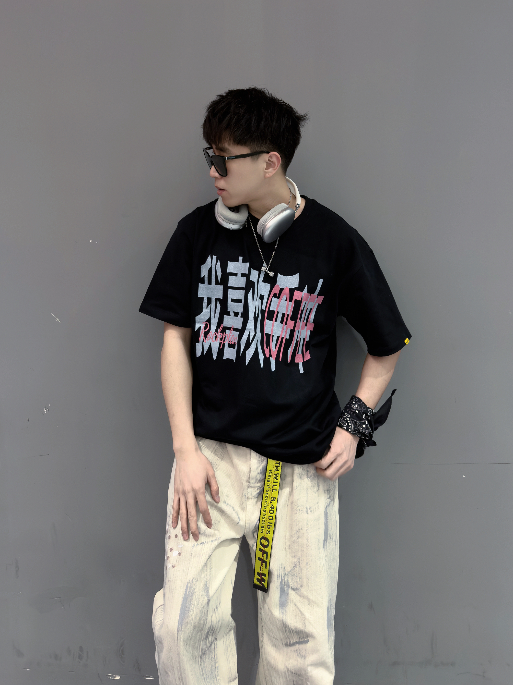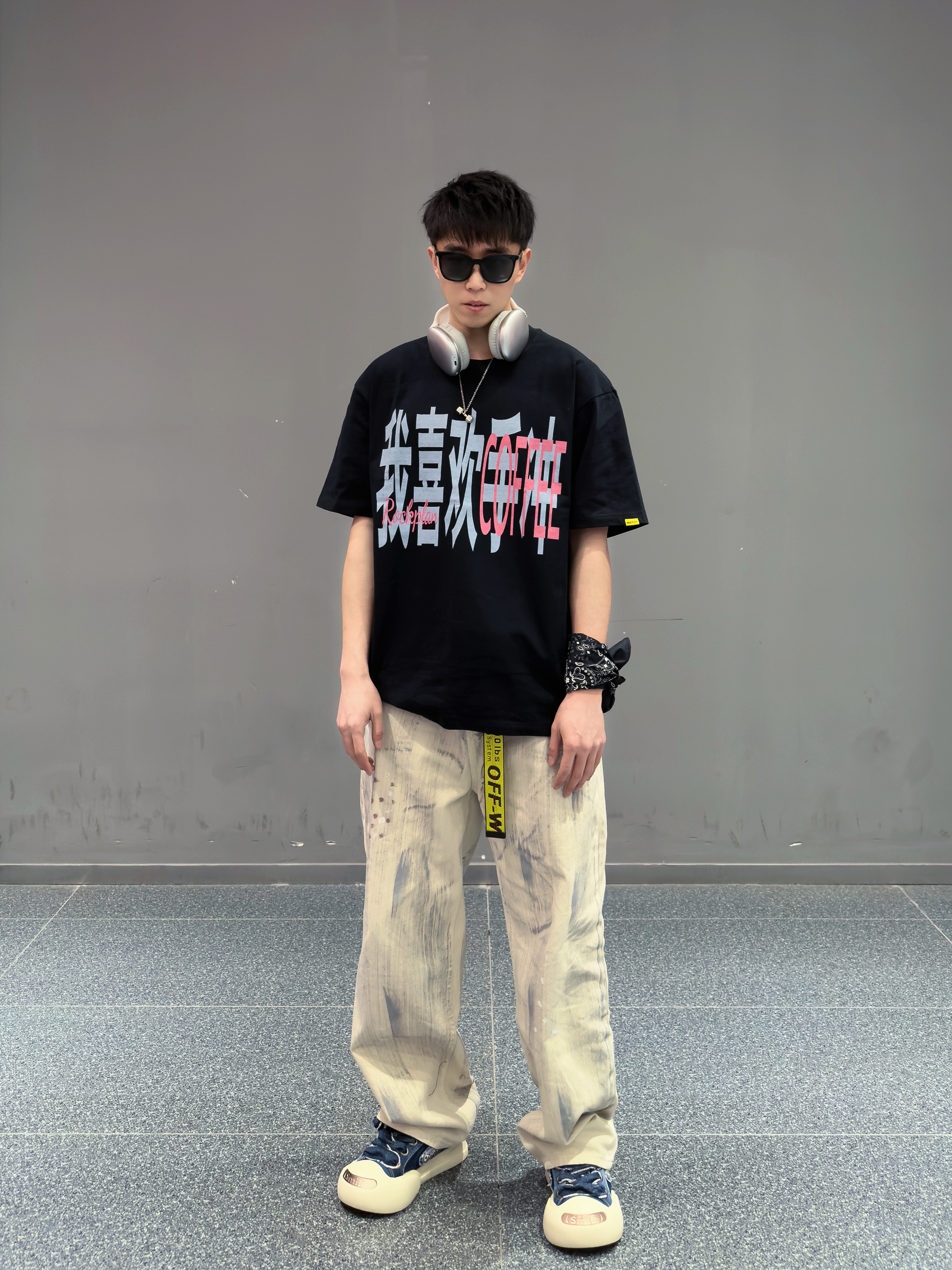 聪明的人已经开始着手准备T恤了 🌟 外文slogan看不懂 那就来件中文标语T 搭配泥染牛仔裤 个性又时尚 踩一双厚底笑脸大头鞋👟主打一个又帅又可爱 最后来点方巾 项链等配饰做点缀 ✔️ 潮流又自由的夏日美式街头感穿搭get ✅ — 👕:摇滚计划 👖:泥染牛仔裤 👟:Ouder Smiler