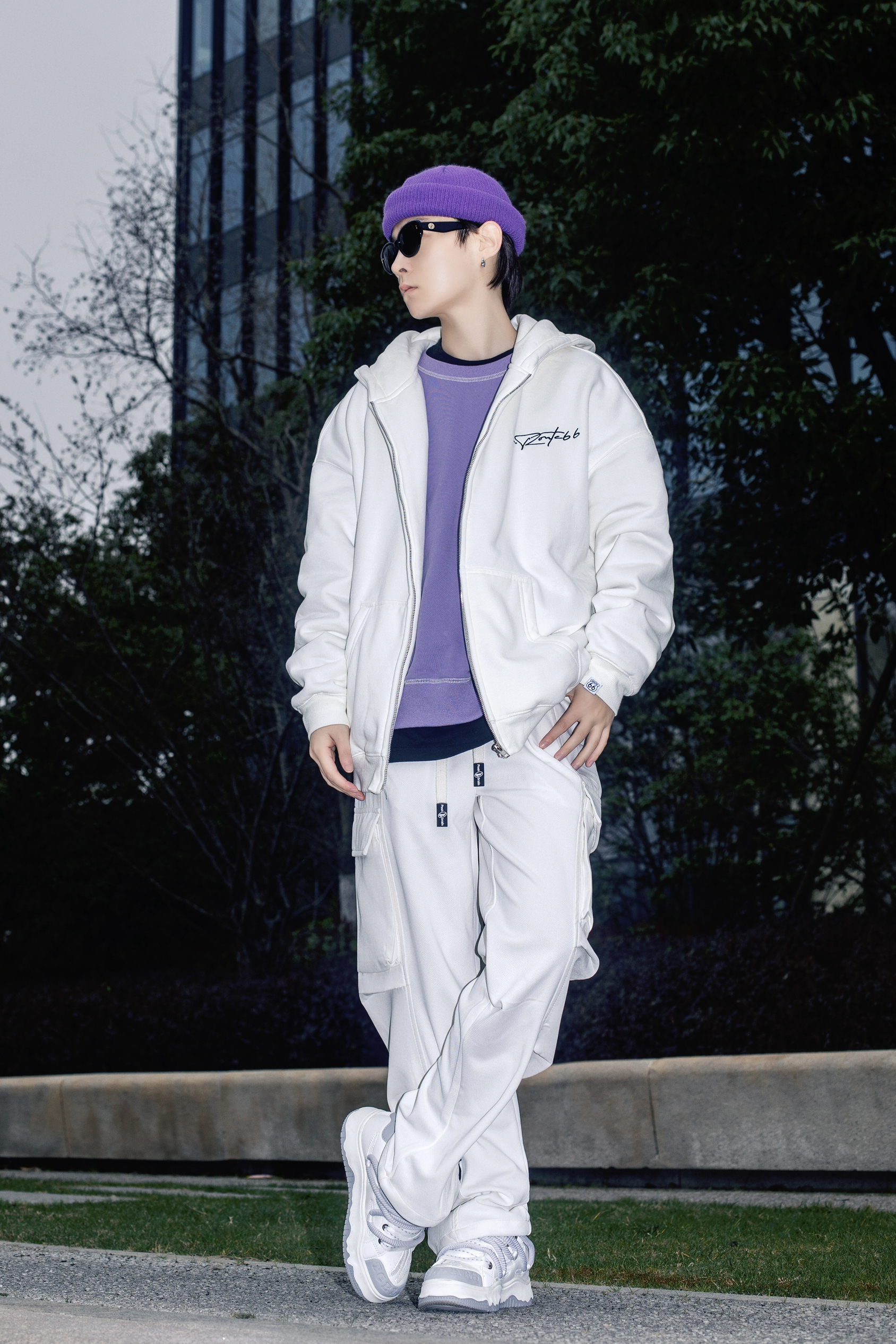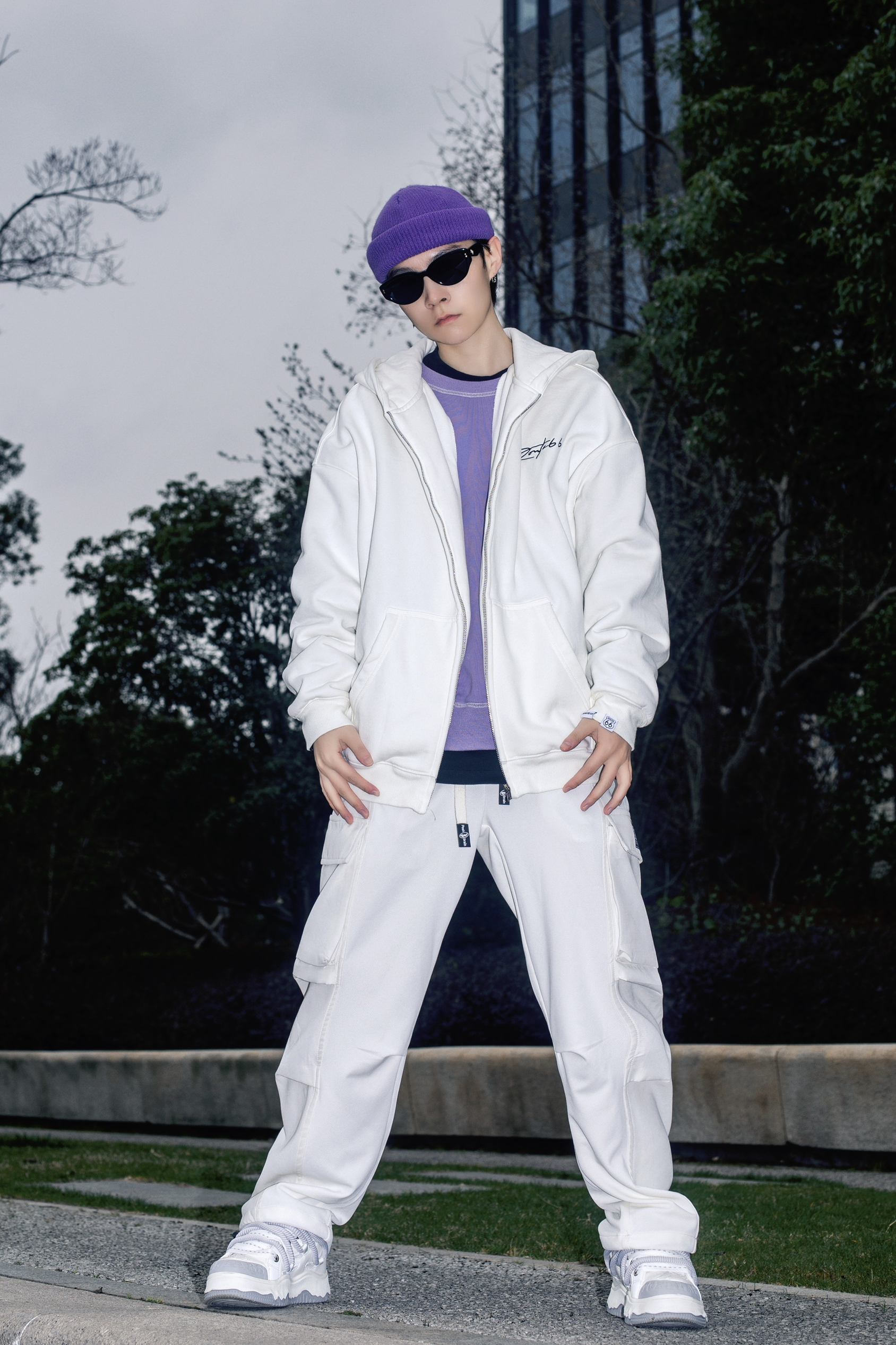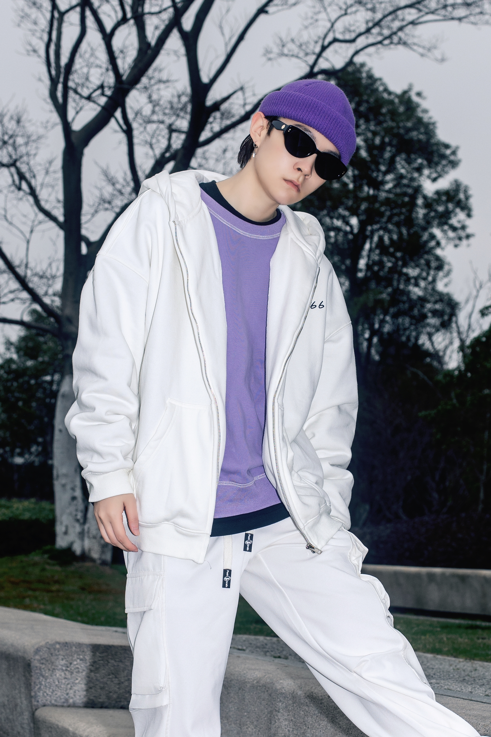 卫衣带来的松弛感很难让人比较心动 分享一套春日卫衣色彩叠穿 穿搭指南: 上身一件长款黑色T恤打底 套一件紫色圆领卫衣 叠穿的方式让简单的T恤有了层次感 外搭一件route66白色开衫卫衣 宽松oversize版型自带休闲慵懒氛围 前后字母印花够酷够街头 白色多工装裤和休闲板鞋跟上衣呼应 紫色冷帽点缀一下 春天穿这样去春游 舒适又时髦