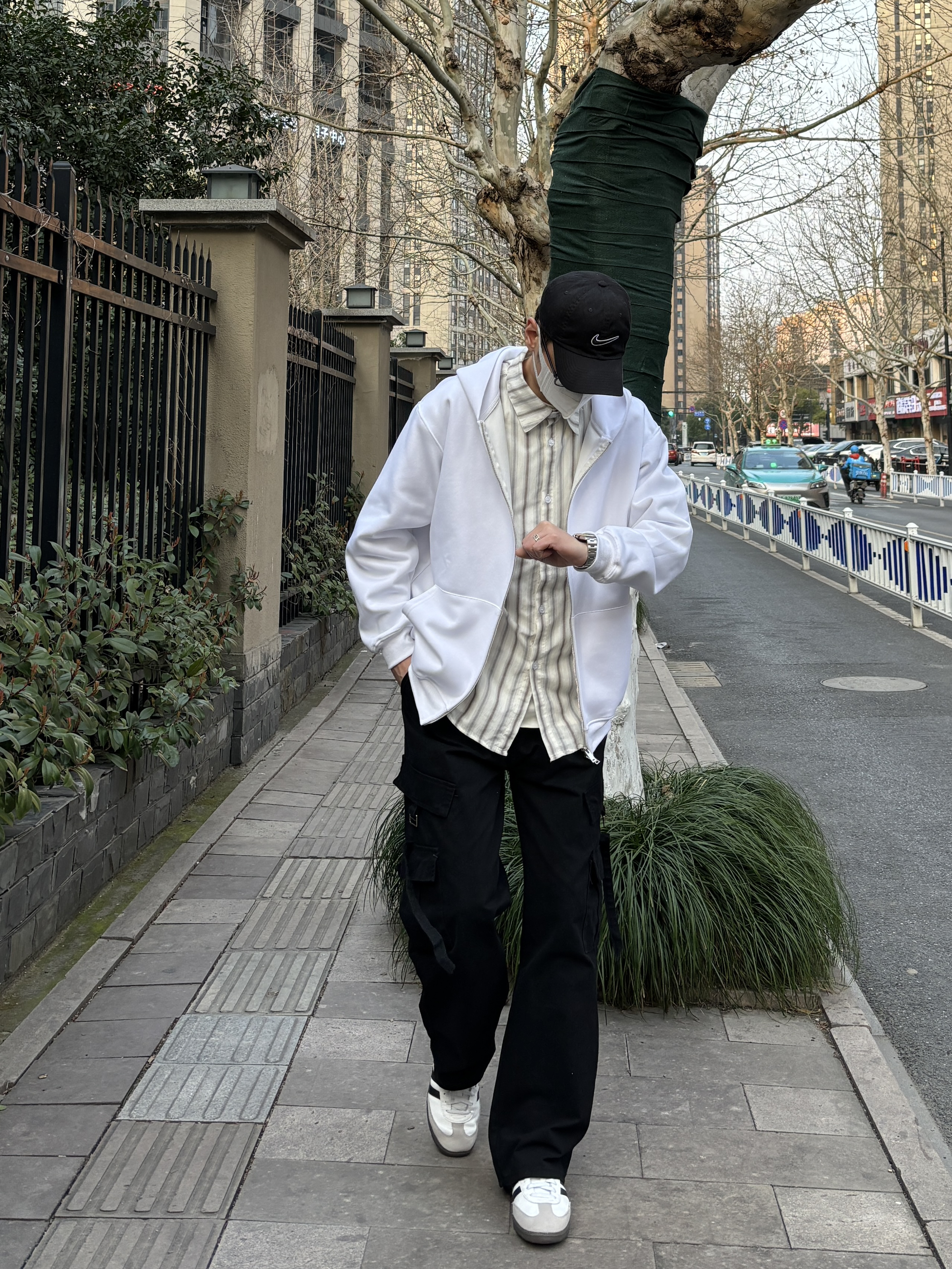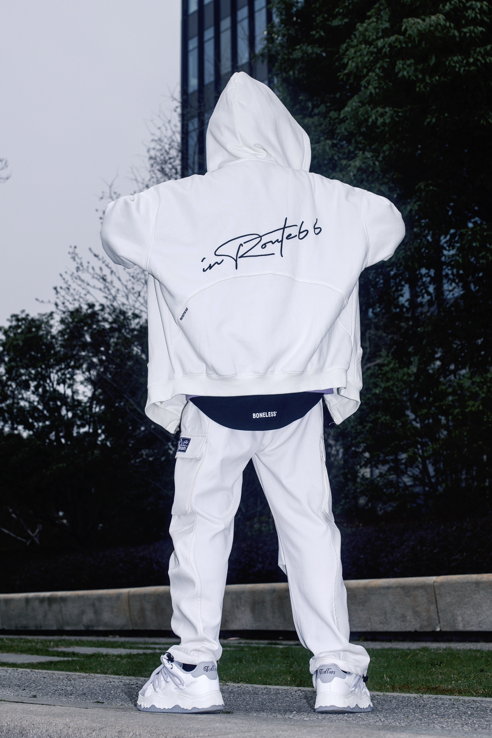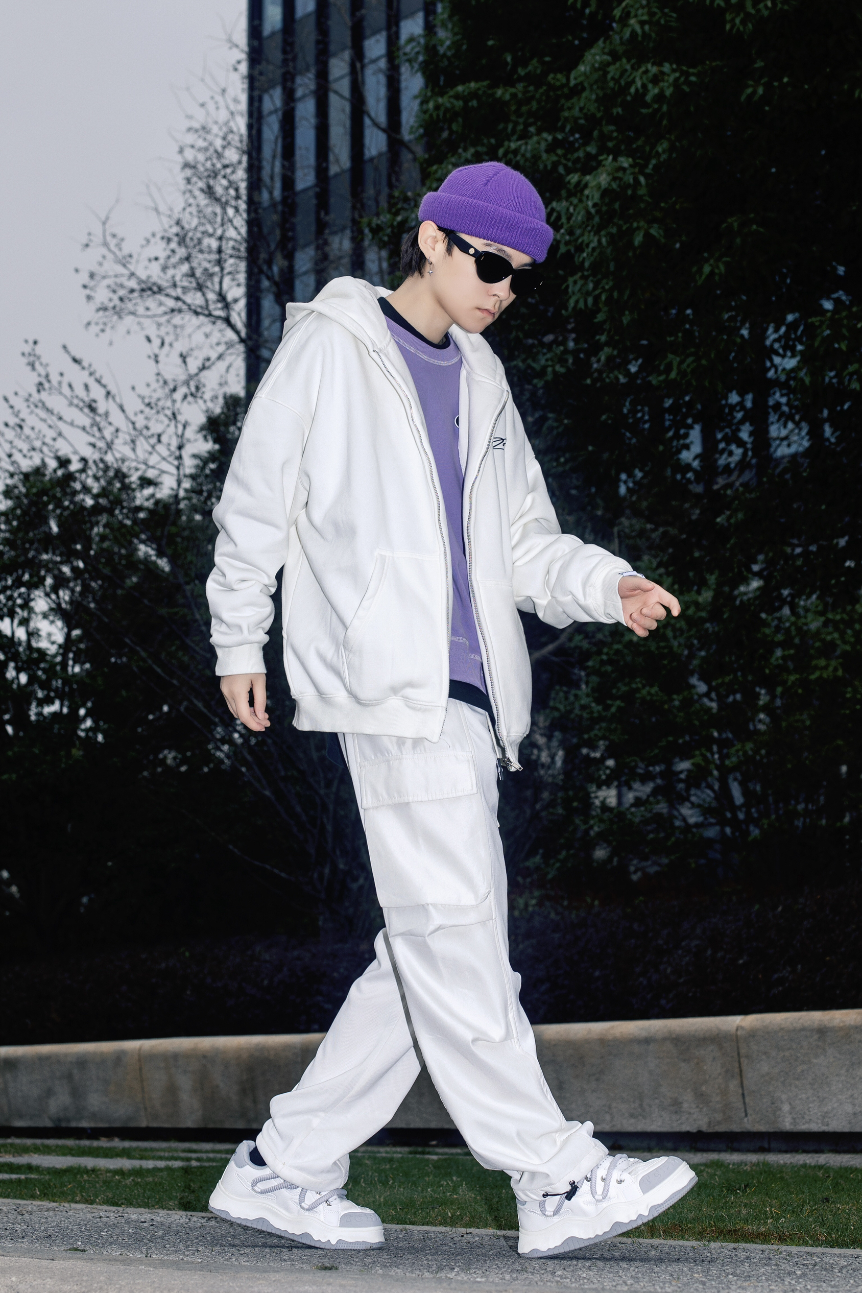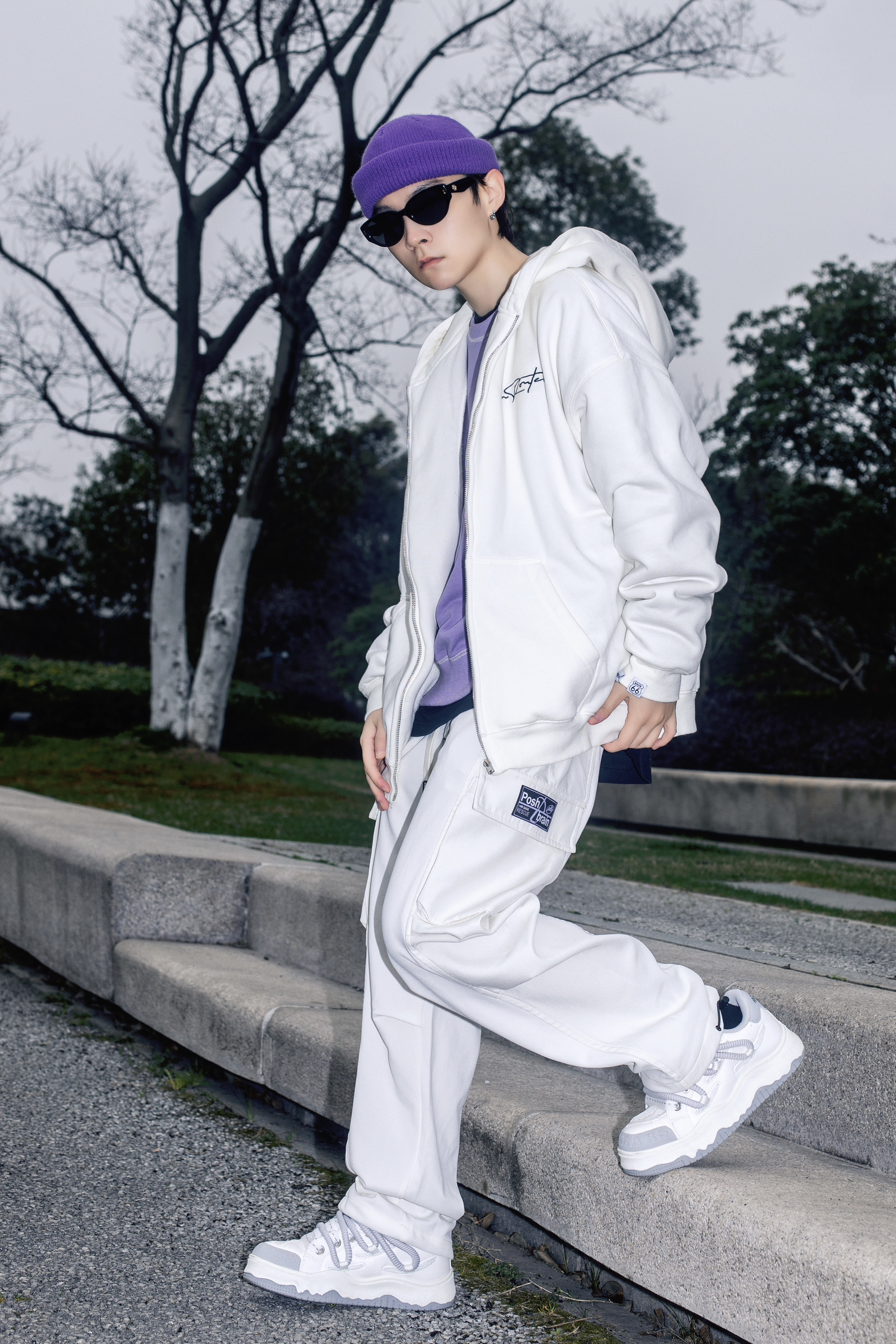 卫衣带来的松弛感很难让人比较心动 分享一套春日卫衣色彩叠穿 穿搭指南: 上身一件长款黑色T恤打底 套一件紫色圆领卫衣 叠穿的方式让简单的T恤有了层次感 外搭一件route66白色开衫卫衣 宽松oversize版型自带休闲慵懒氛围 前后字母印花够酷够街头 白色多工装裤和休闲板鞋跟上衣呼应 紫色冷帽点缀一下 春天穿这样去春游 舒适又时髦