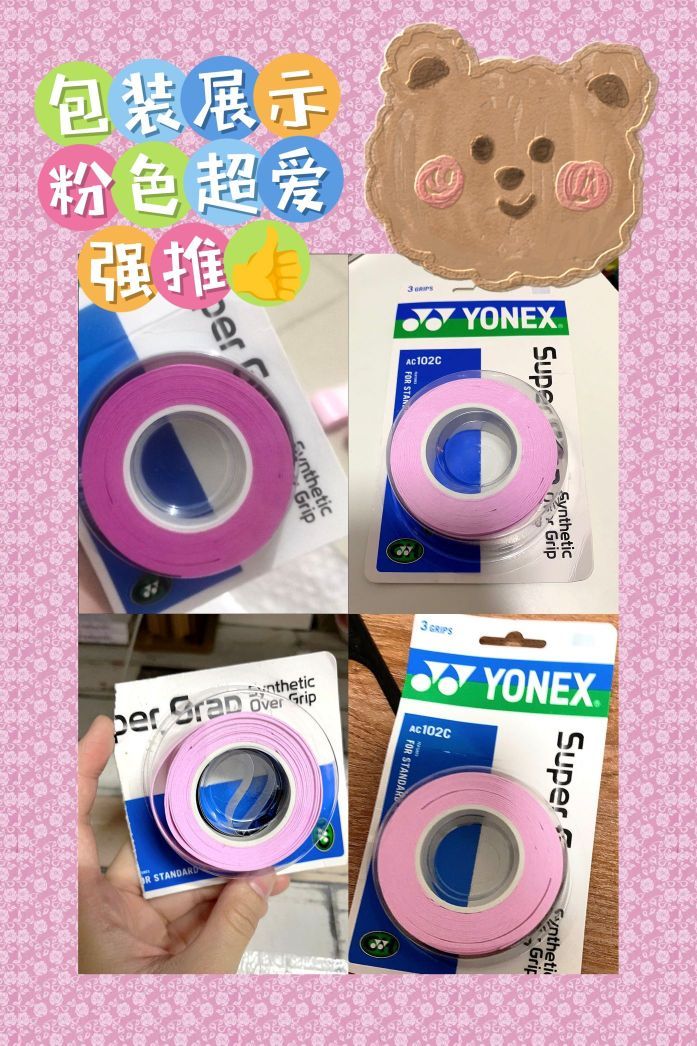 YONEX 尤尼克斯手胶属于老品牌了,不但球拍优秀,配件也是比较不错的,这款手胶不仅吸汗耐用,颜值高,和女朋友打羽毛球,亲手给她缠上这款粉粉的手胶不也是一种情趣,而且价格实惠,买的越多越实惠,这类型消耗品应该常备才能保持极高的手感对于羽毛球这项运动也会带来极高评价!