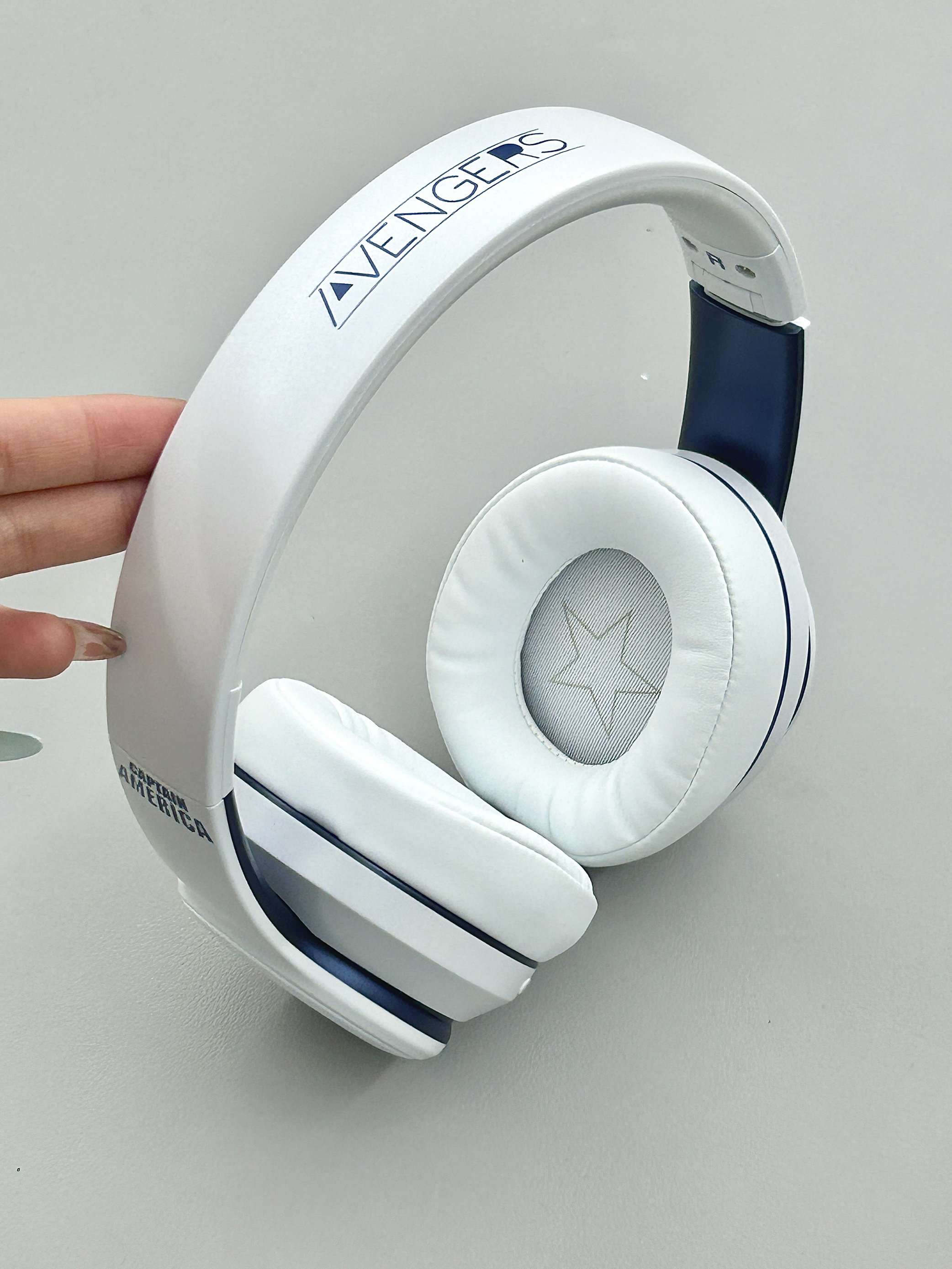 是漫威的蓝牙耳机 这个配色比较好搭配 连接蓝牙比较快 平时外出带着听音乐挺好滴 送男生尊的合适哦~