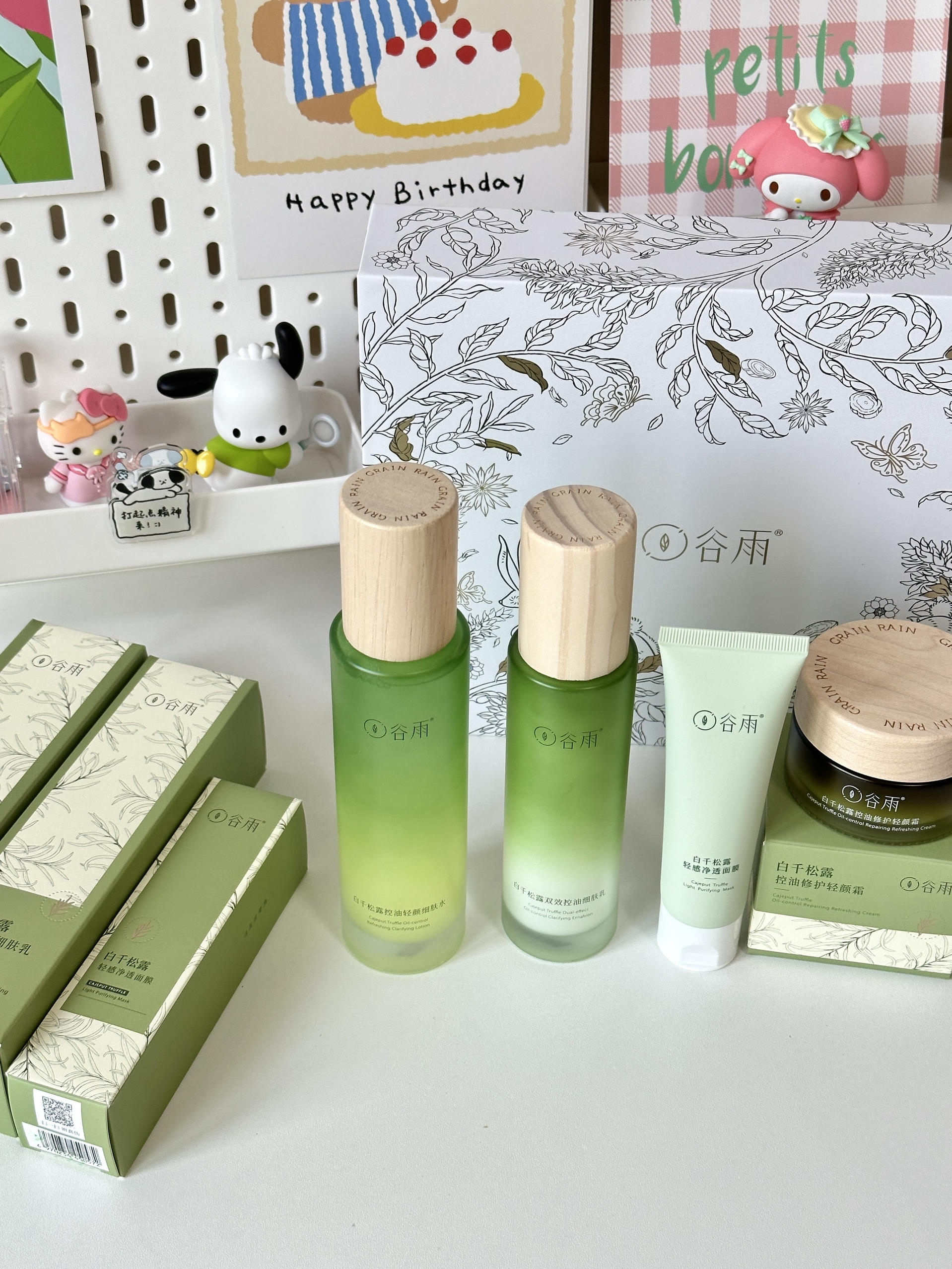 本篇笔记关联了谷雨 白千松露轻颜护肤套装【水+乳】祛痘淡印平衡水油收毛孔舒缓泛红改善闭口油痘肌 平衡水120ml+细肤乳100ml、谷雨 白千松露控油修护轻颜霜 改善泛红 50g等商品,为用户提供真实的使用体验和购买参考。
