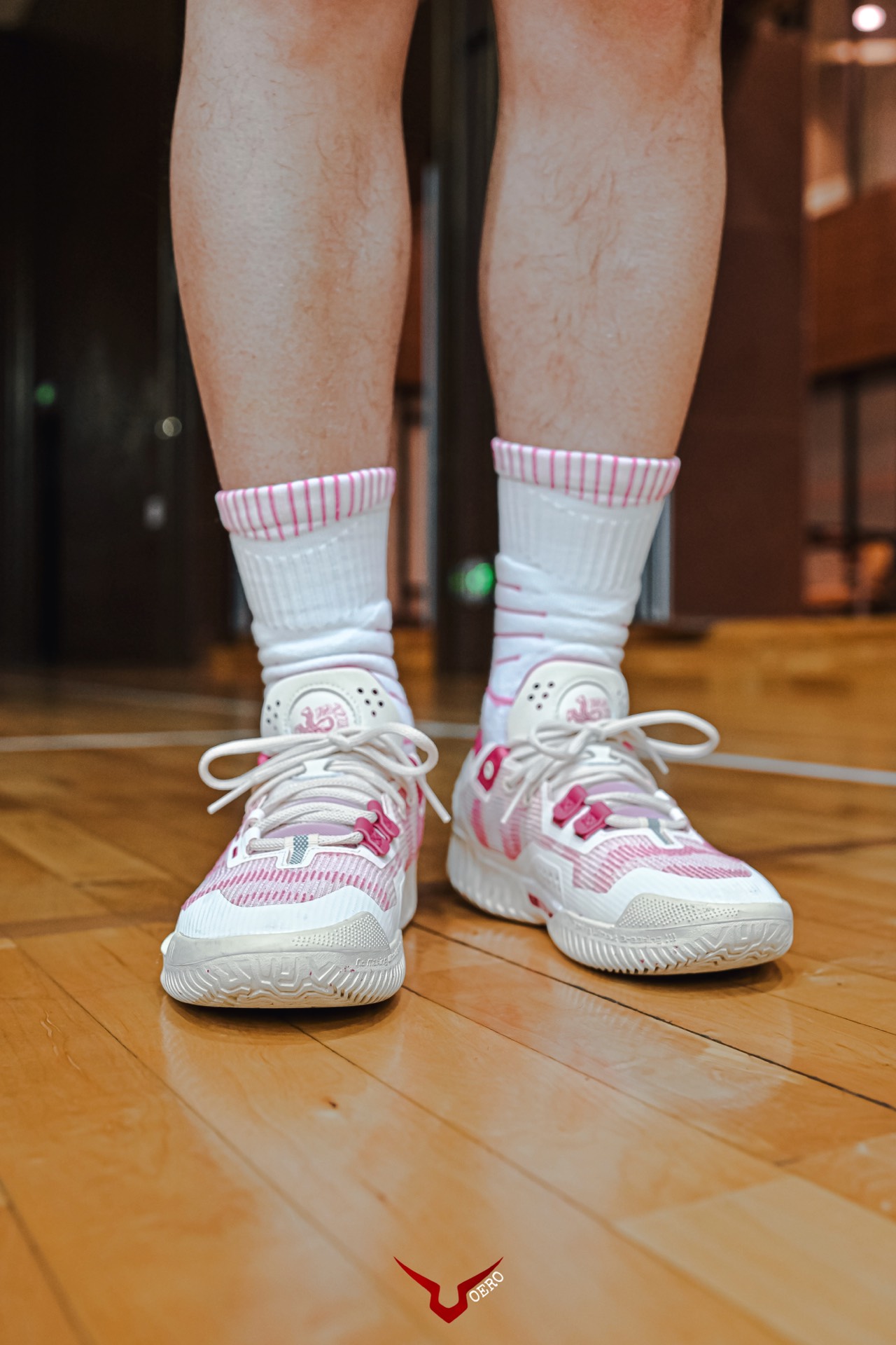 🤏🏻唯一我遇到的小问题是使用织带穿入方式,有时候会有一些夹足弓外侧,不过打一会儿这个感觉会消失。由于是超低帮的设计在低帮出有一层内里和鞋跟是分开的两层,穿脱时请理顺穿着,如果不理顺或者习惯不用手直接脚用力蹬进去的选手很容易讲软质的那层带进鞋内,肯定不舒服。相信我,你还会脱了重新穿的。