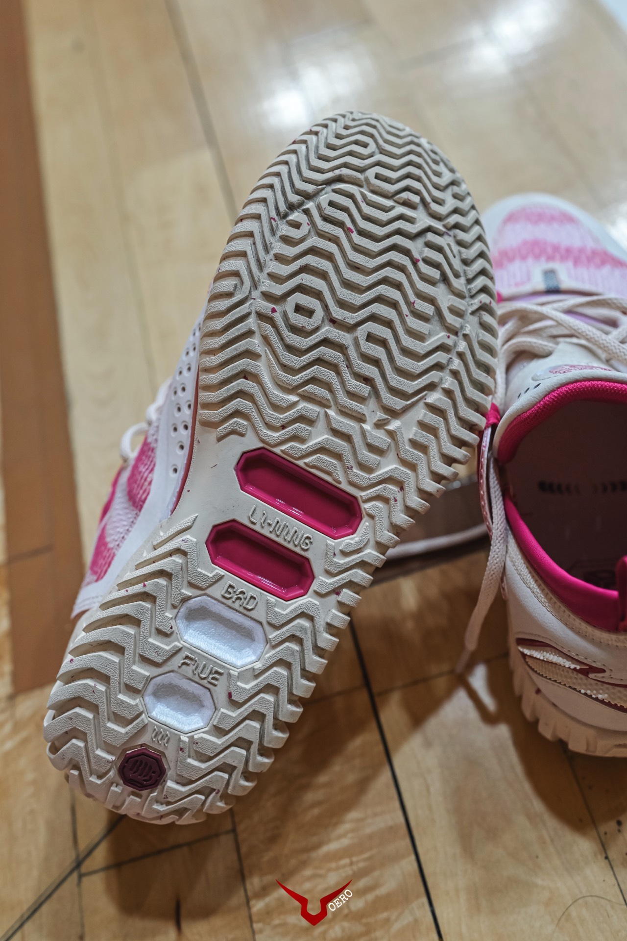 👍实战几场下来,一切感受建立在以上两点都满足的情况下。包裹十分贴合整个脚面。支撑锁定也很到位,由于鞋底不板,不会掉跟。缓震属于韧中微弹,重心相对低前掌场地感佳。抓地太稳了,男孩子的快乐声持续不断,抓地从不担心。助力你背打发力,启动快速响应不拖沓。鞋带最后一个孔位还有两种穿法,喜欢表态包裹的可以选择从最后一排两侧的织带中穿入,织带延伸至足底交叉绑缚你的脚和鞋面,形成另一种形态的包裹。如果不喜欢这种方式还可以从常规最后一个金属鞋带孔穿入。鞋带摩擦力很大不担心运动中松开。耐磨对于室内木地板来说可以说根本看不出磨损,室外我相信就算有磨损也是耐磨第一梯队的存在。