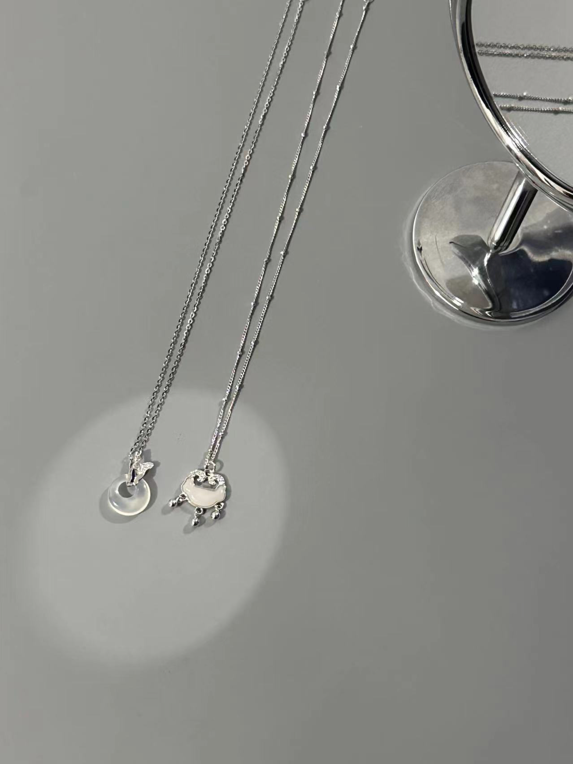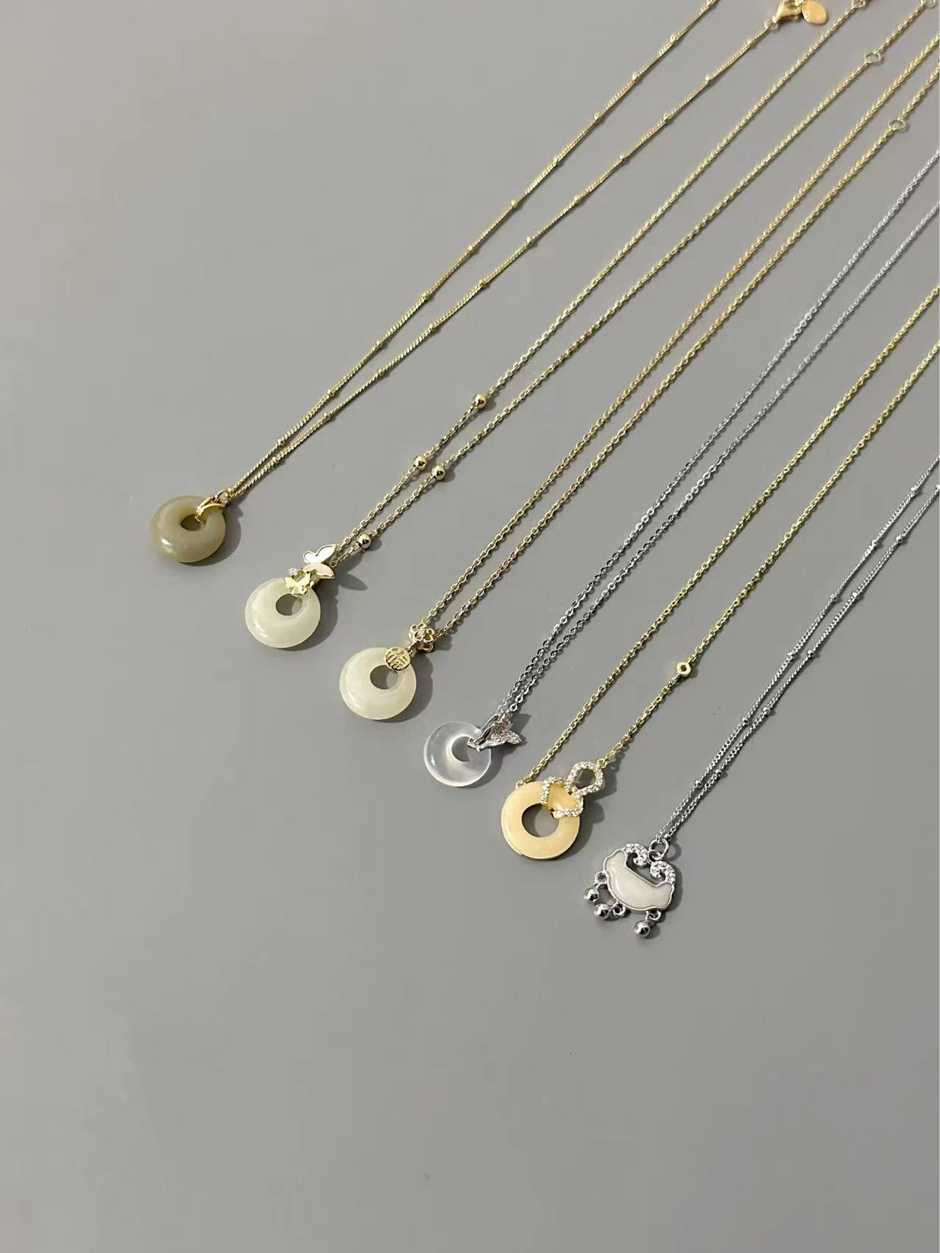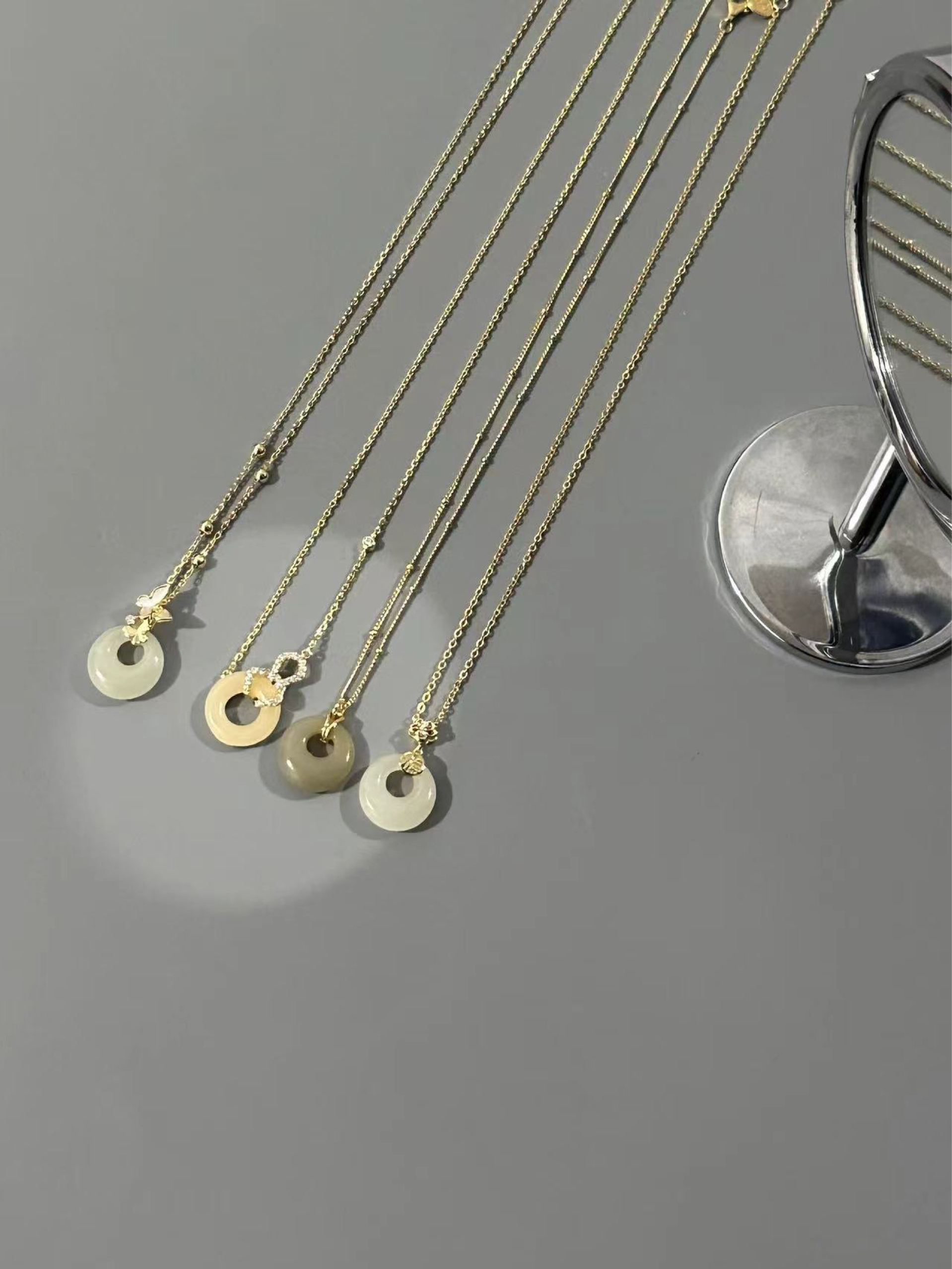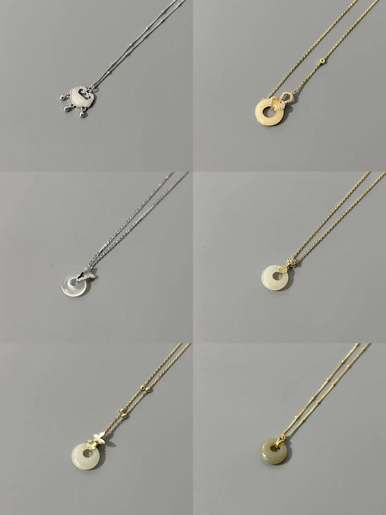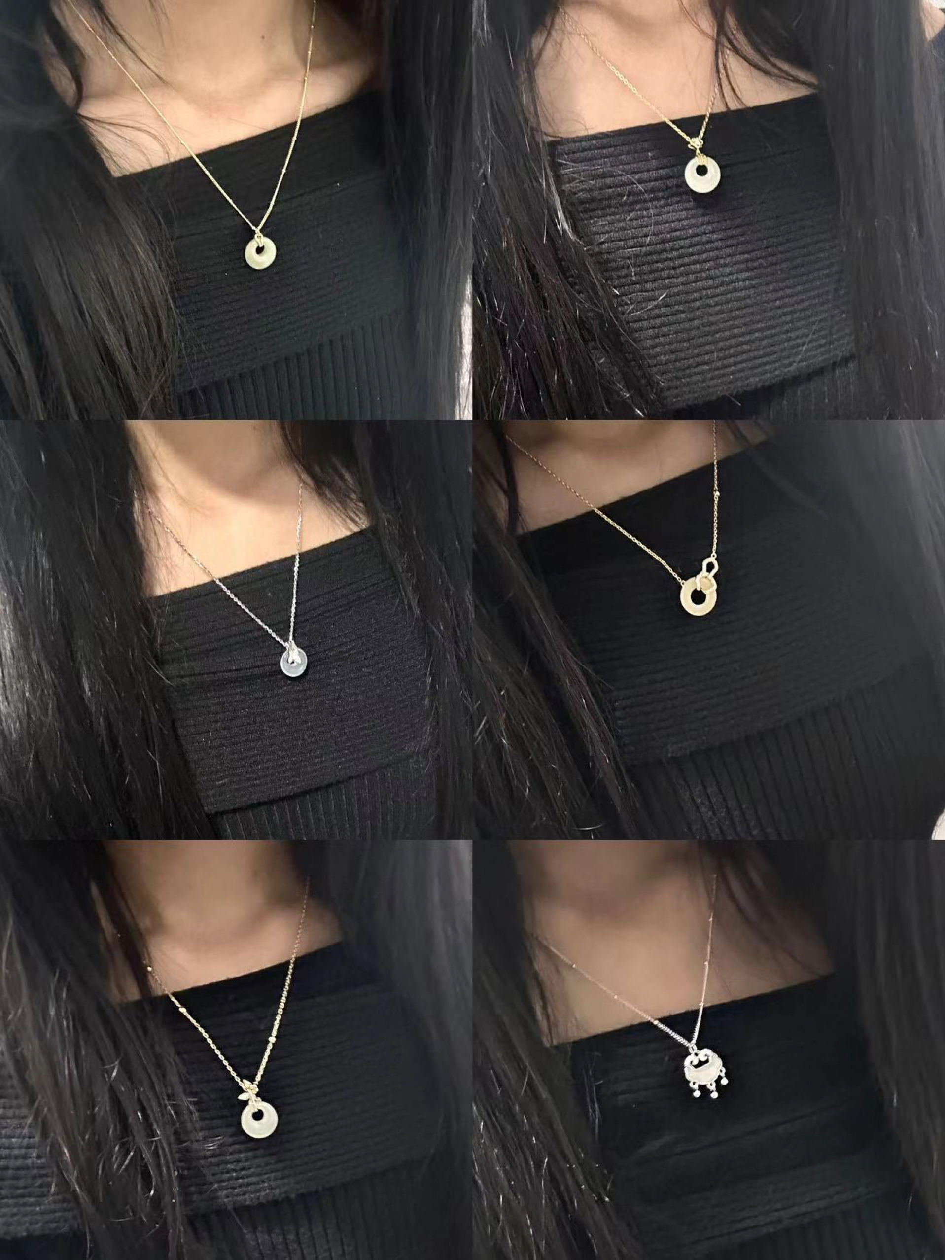 整体简约的设计搭配玉石材质 有质感还百搭 每一款都有不同的感觉 金色链条款比较适合聚会,银色链条比较百搭 不管是夏天搭配裙子还是日常通勤戴都不错