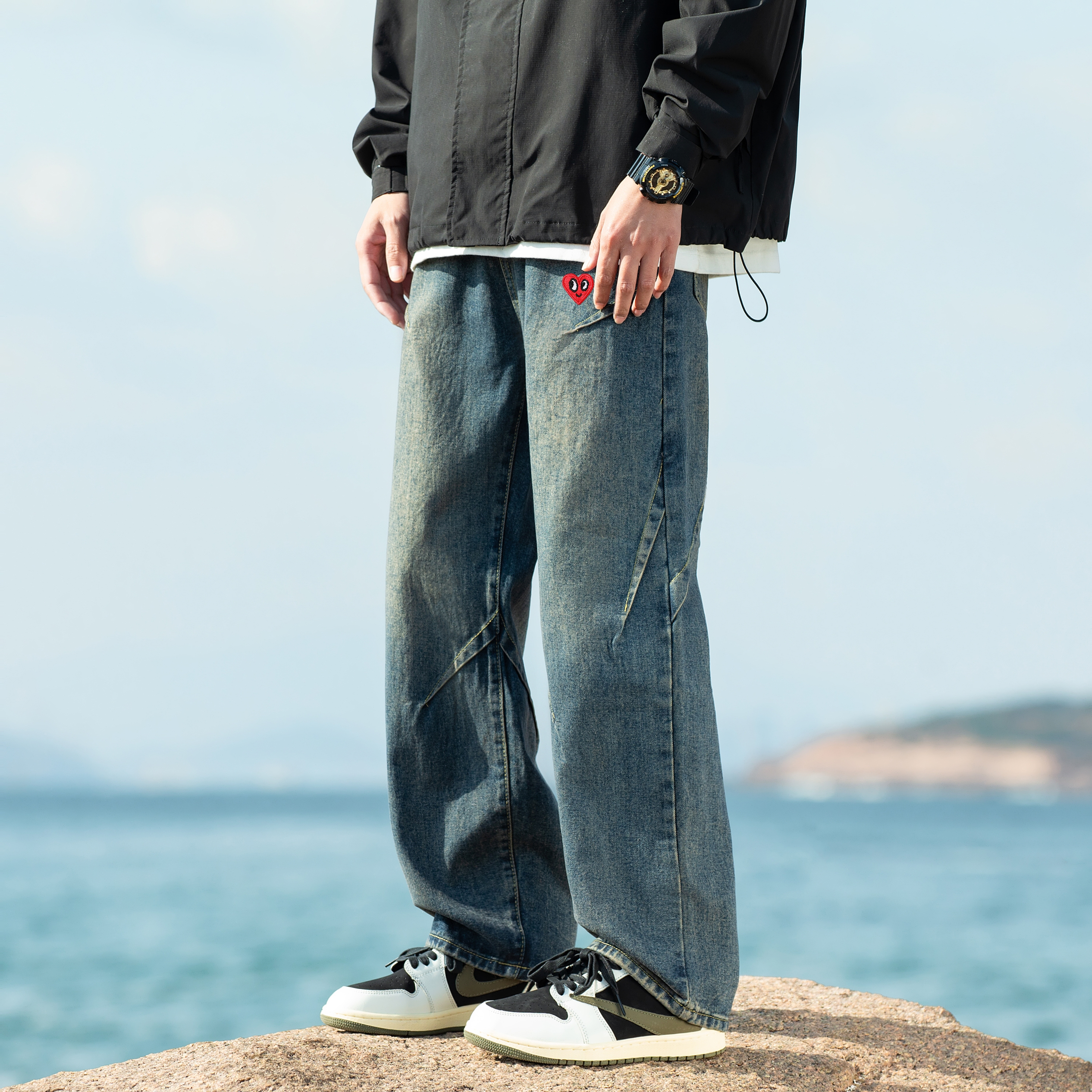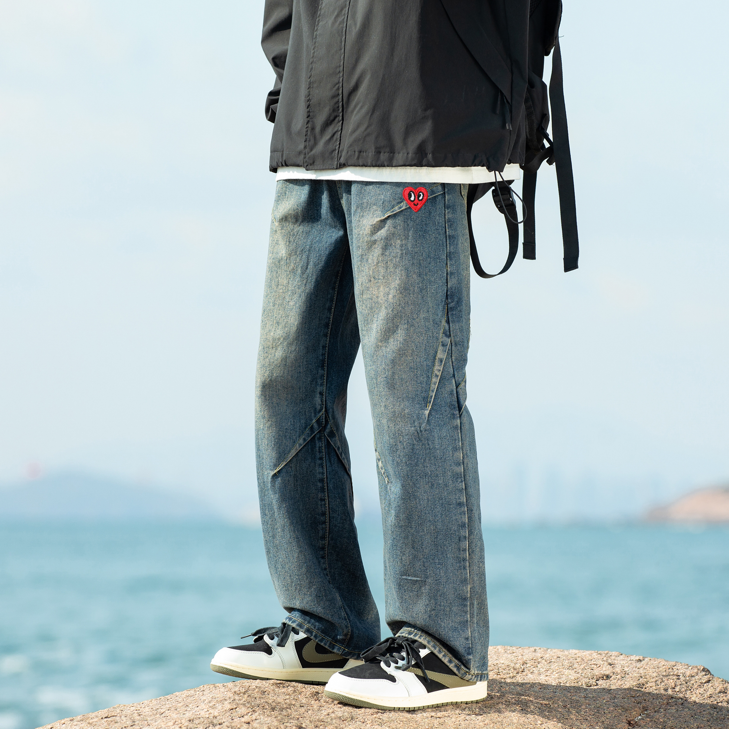 卫衣搭配牛仔裤,是最近入春的最爱了,这条复古牛仔裤很时髦,直筒的版型修饰腿型,褶皱的感觉又不失设计,整体不仅好搭配,又满满街头休闲感