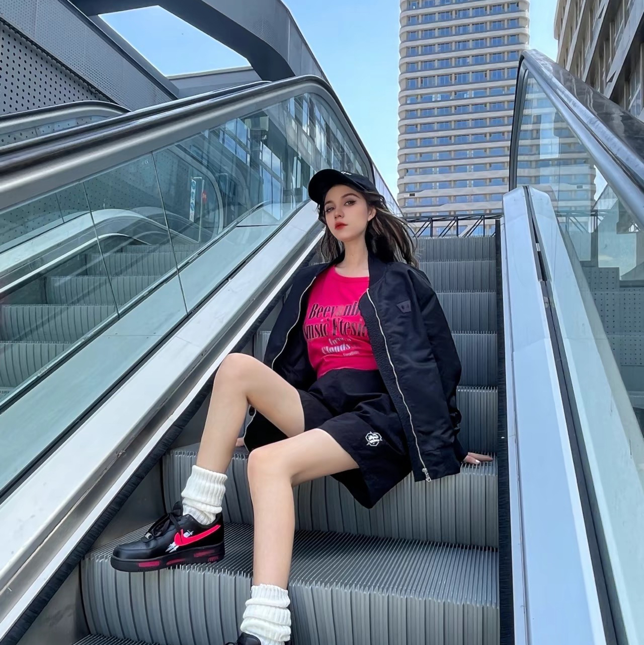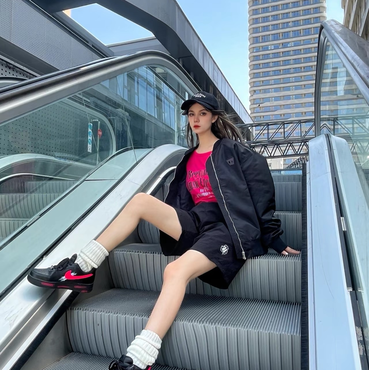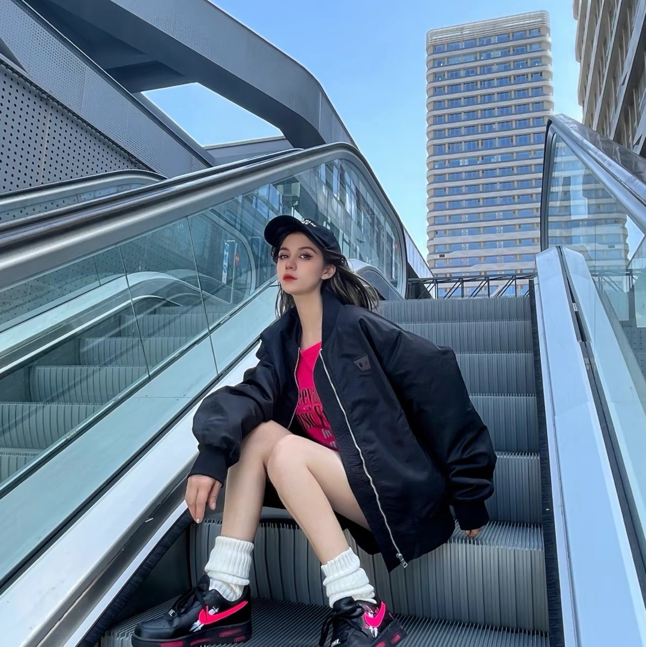 最近天气忽冷忽热 今天是美式简约风😊 上长下短的搭配真的很酷 入了一件老薛家的夹克外套🧥 质感不错 显瘦高级 百搭又好看 黑色棒球服简约风格 胸前是个小logo 💯酷酷哒~而且很显瘦 穿上去很舒服不会很厚重 搭配了黑粉色dunk 就是一整个休闲酷girl🎱