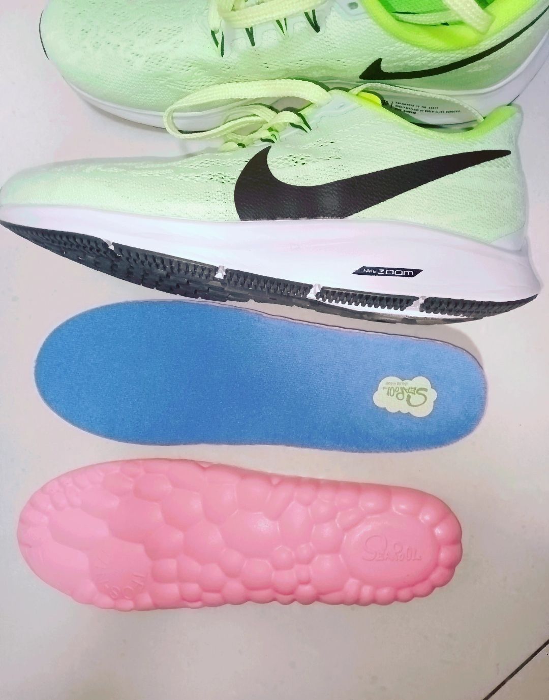 1.脚感 脚感软弹舒适,薄底跑鞋脚感很硬,回弹反馈都很微弱,加上这副鞋垫脚感大大提升,反馈明显。类似硅胶材质,跑了大概10公里,鞋垫没有位移,袜子与鞋垫的摩擦力也很大。加上足弓支撑,中底配置提升很多。 2.颜值 蓝粉配色非常亮眼,颜值爆表 3.尺码 个人认为尺码标准,按照鞋码选择。如果不放心,可以选大一码,因为这副鞋垫支持裁剪 总结:薄底跑鞋,篮球鞋,板鞋均适用,软弹的脚感,吸睛的颜值,超高的性价...