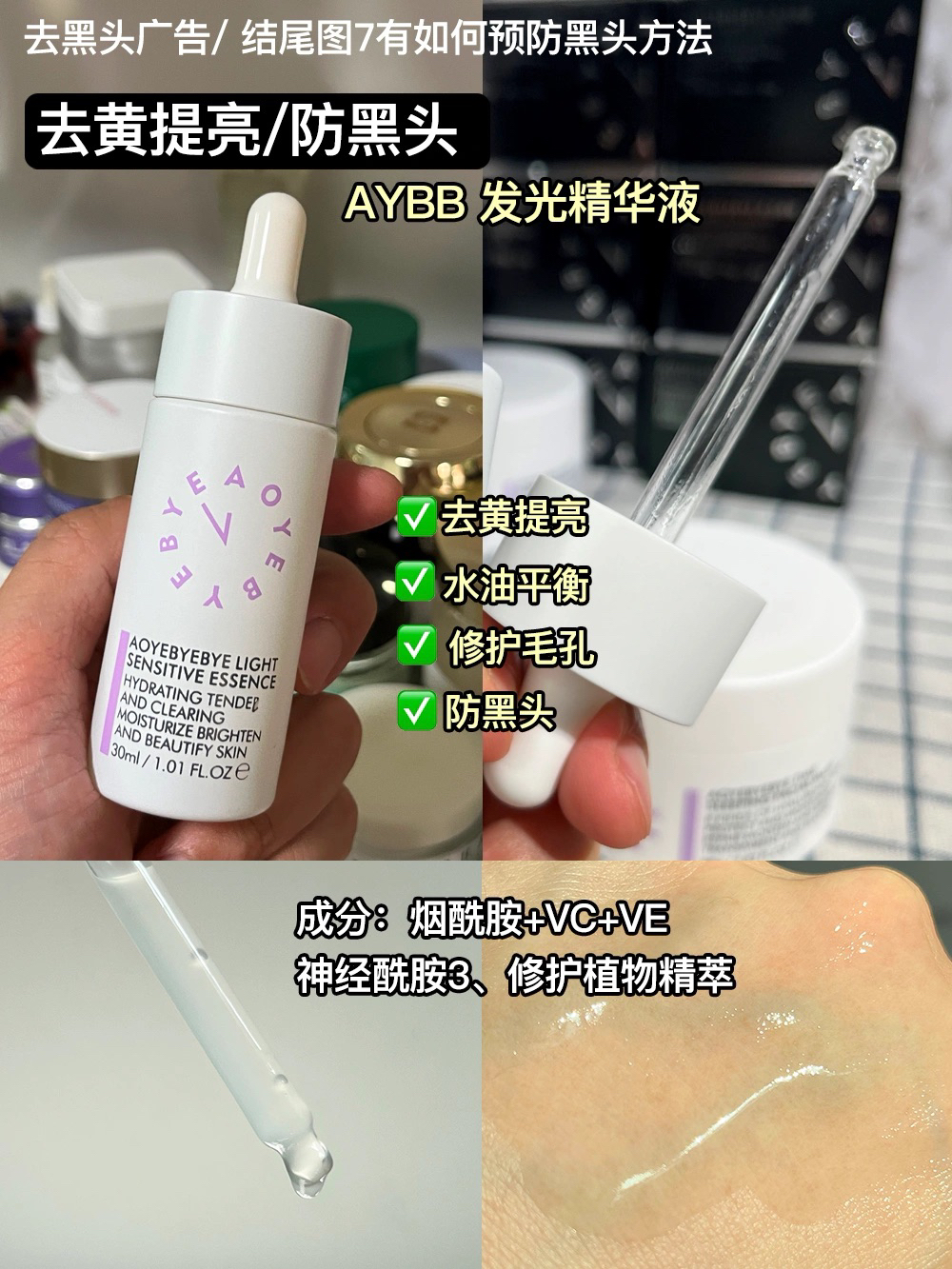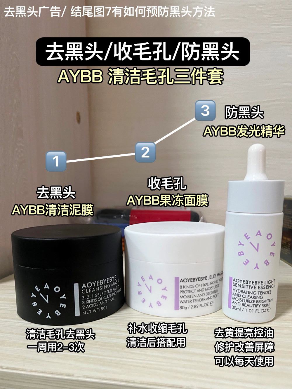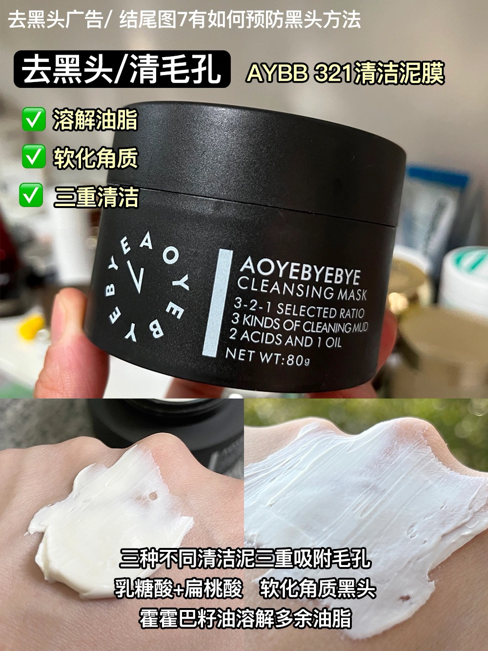 本篇笔记关联了AYBB 油痘肌去黑头护肤三件套 去黑头泥膜80g+缩毛孔面膜80g+提亮淡印精华30ml等商品,为用户提供真实的使用体验和购买参考。