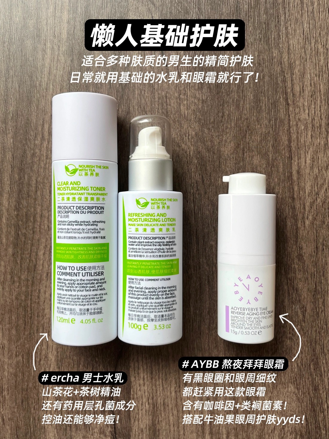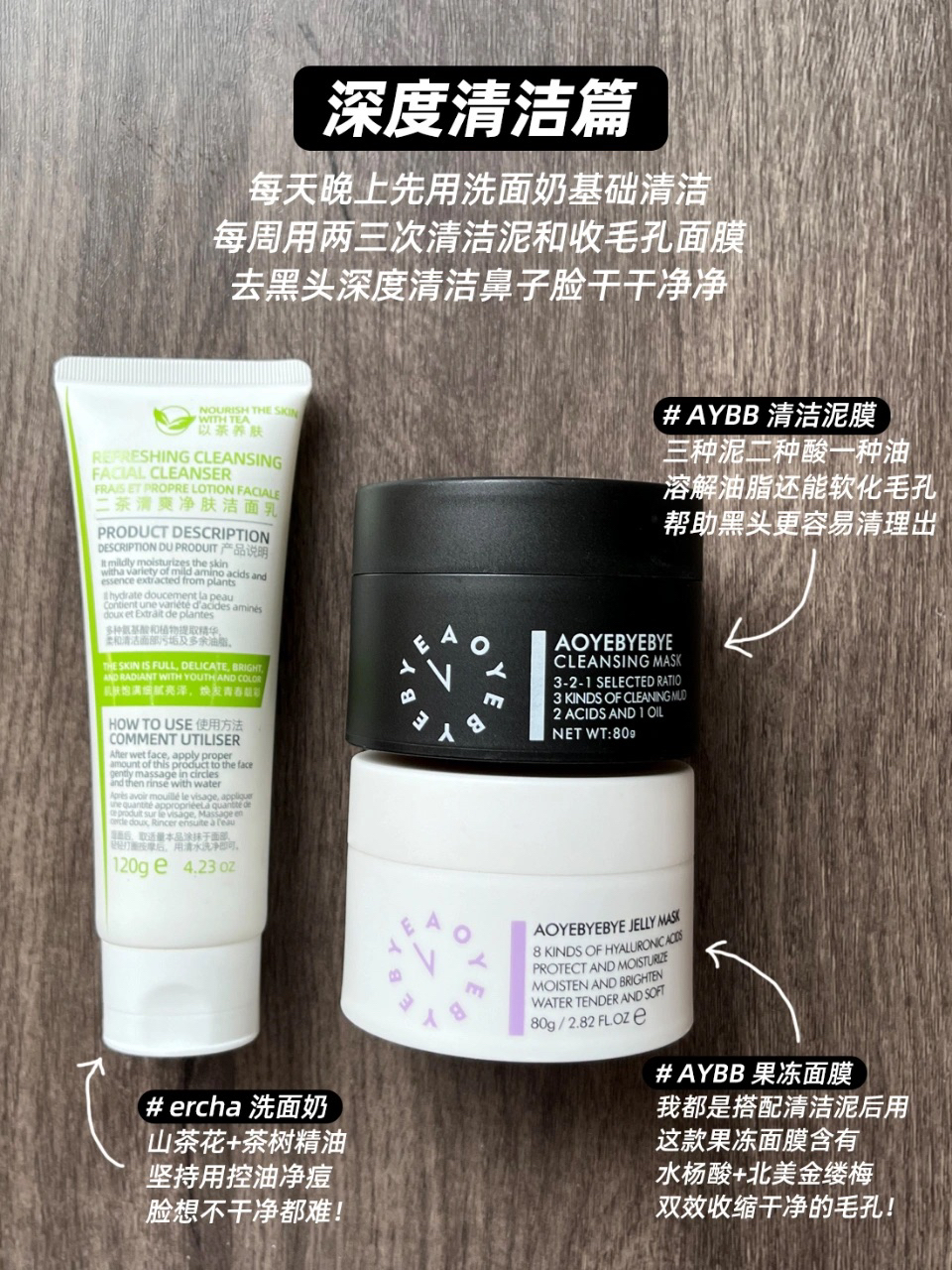 本篇笔记关联了AYBB 油痘肌去黑头护肤三件套 去黑头泥膜80g+缩毛孔面膜80g+提亮淡印精华30ml、AYBB 熬夜拜拜逆龄眼霜 紧致淡纹、ercha/二茶 以茶养肤净痘护肤套装 精华水120ml+爽肤乳100g等商品,为用户提供真实的使用体验和购买参考。