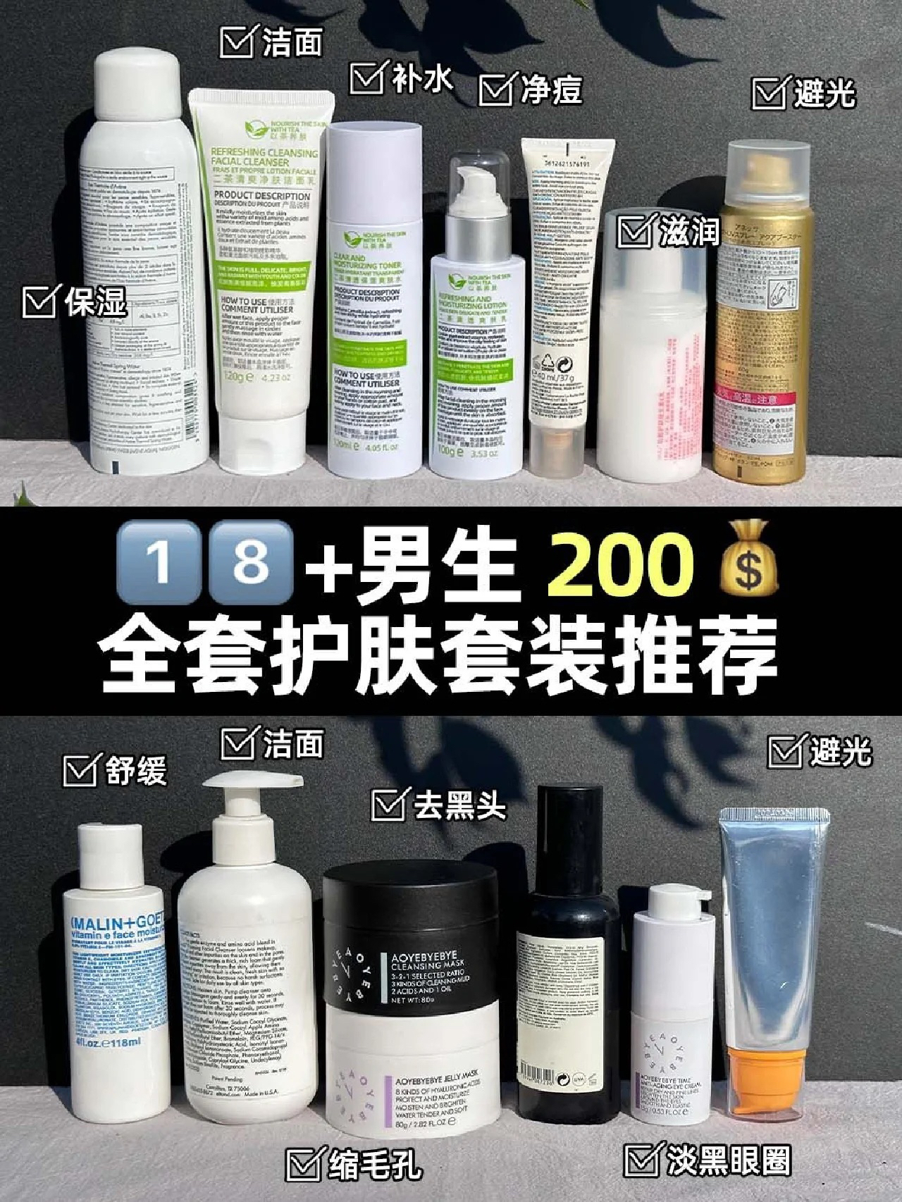 我就是从护肤小白一步一步走过来的,男生从18岁开始就要精简护肤了,而且要坚持不懈勤奋努力才会有好皮肤,才会变帅!下面分享一下今年热门的男士护肤品推荐给还不知道怎么选护肤品的兄弟们! - 【基础护肤怎么用?】 我用【ercha男士水乳】+【AYBB熬夜拜拜眼霜】,用水乳和眼霜就够了,不过这个仅限皮肤本身好的男生,皮肤油和长痘黄黑的请看下面步骤; - 【早C晚A是什么意思?】 早c用【AYBB发光精华...