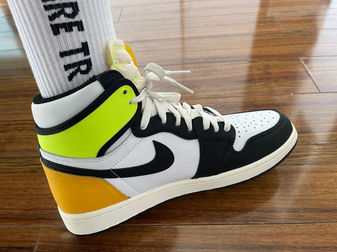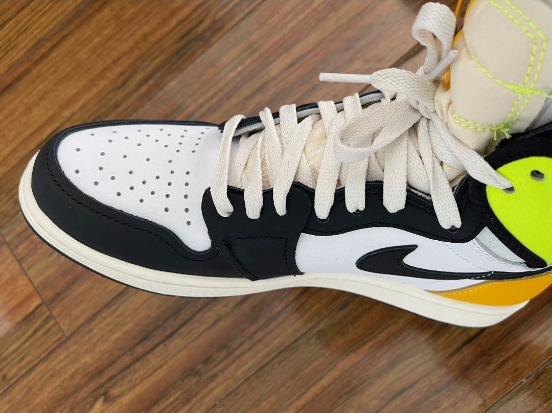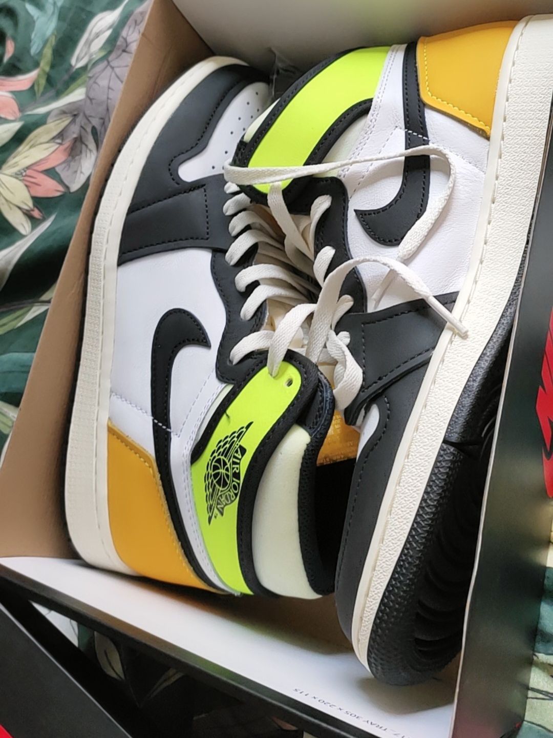 👟球鞋名称:Air Jordan 1 潮流复古 耐磨防滑 缓震透气 时尚休闲 板鞋 Volt Gold 高帮/黄橙脚趾 🔍分享理由:鞋身整体以白色为主,配以黑脚趾的经典设计和黑色 Swoosh,鞋底同样选用黑色。后跟入黄色以及荧光黄色,配色十分抢眼。后跟和鞋帮处分别采用了橙色和亮黄色,视觉冲击力极强。细节方面最大亮点在于鞋舌标签以反转形式呈现,可谓相当少见。并且采用了塑料贴布标签,设计新颖,极为...