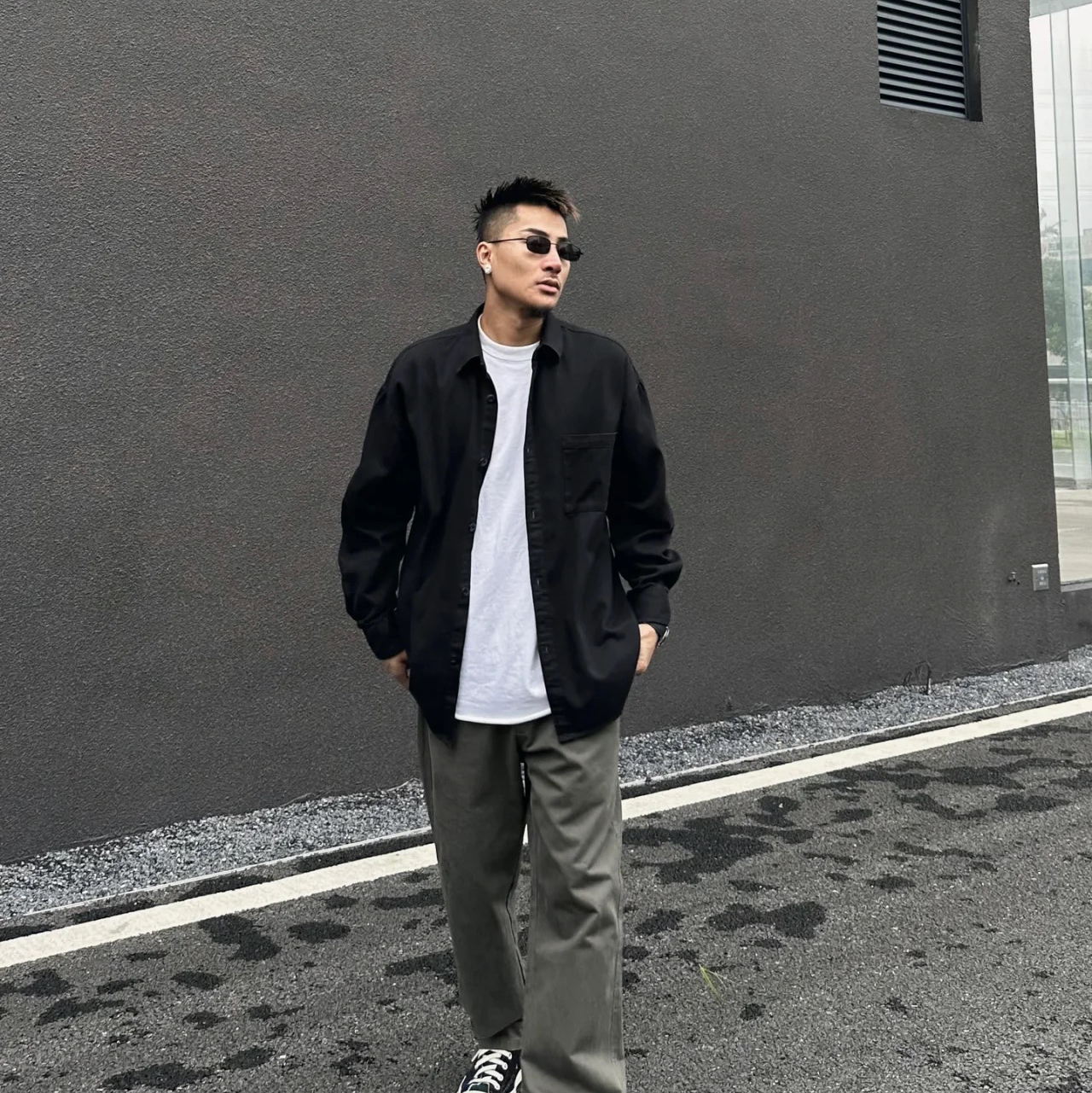黑色▪️我可以穿N个季节 这款黑色衬衫做工hin 棒细节就能看出质感 面料舒适柔软 加上不挑人的oversize版型🏴分分钟营造漫不经心的松弛慵懒 不管是单穿还是当外套都很绝📓 下半身推荐黑色牛仔裤or深色系裤子 我上身的这件基本属于百搭的👀水洗的料子很软穿着蛮舒服的 宽松直筒的版型也比较遮肉肉 腿粗的宝子也可以入~