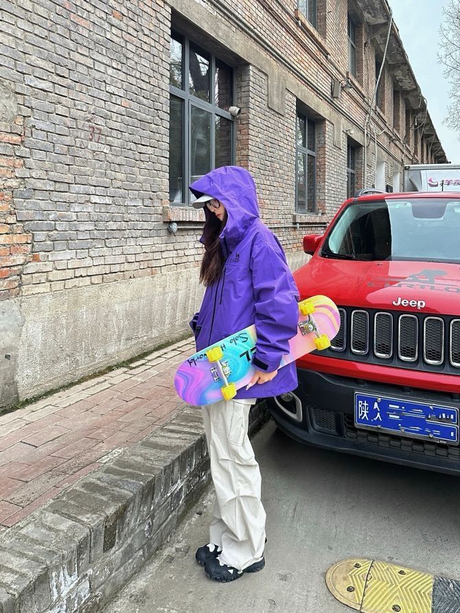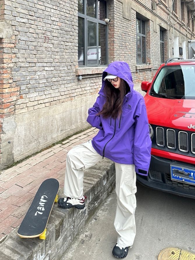 这件骆驼冲锋衣的颜色也太好看了吧 第一眼就是被这个颜色吸引住了,实物和商家图基本没差,实物颜色更亮一点 上身效果超好,紫色显白又有气色!质量也很不错,版型是比较宽松的,尺码偏大,不喜欢宽松的姐妹建议买小一个码数! 价格300出头,性价比绝绝子!
